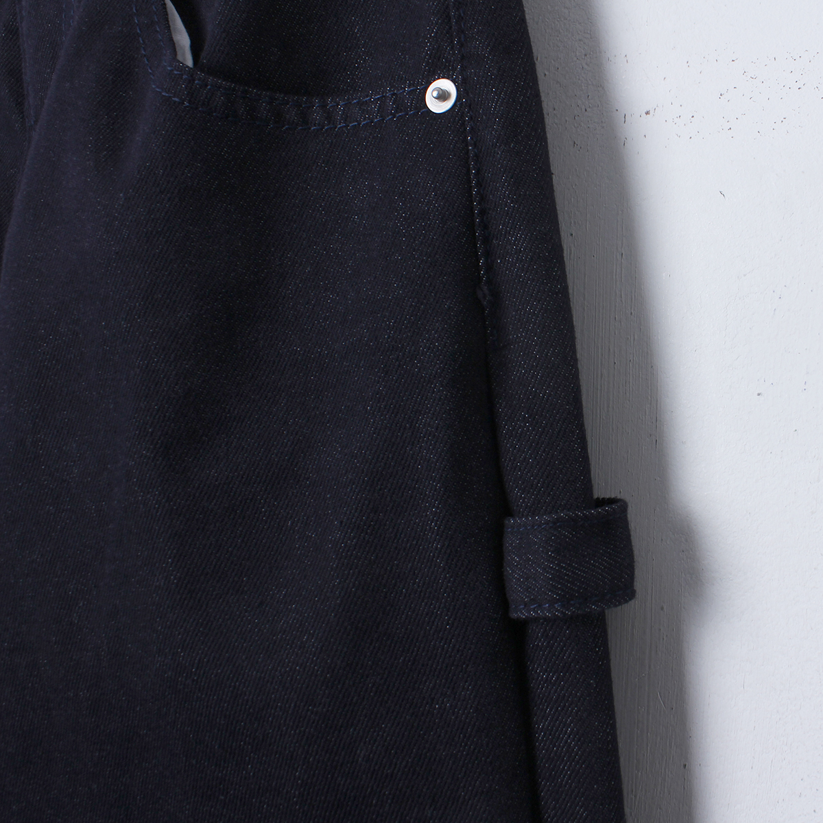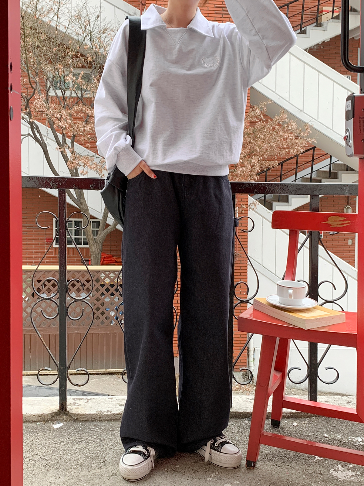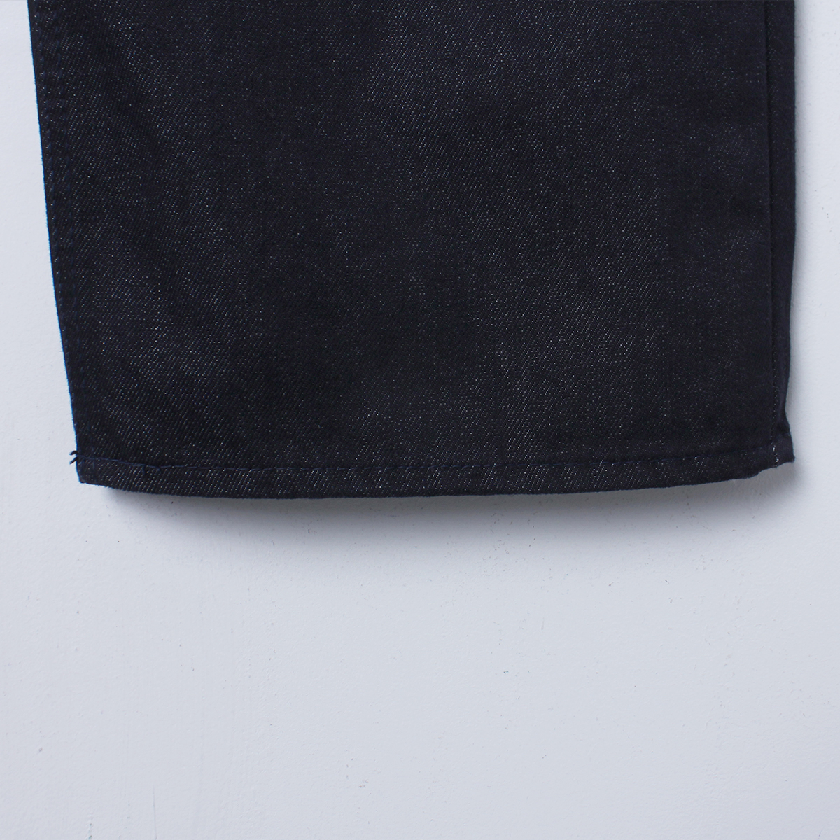 논페이드 소재로 물 빠짐 걱정이 없으며 신축성은 없지만 루즈한 와이드핏으로 편하게 착용이 가능하면서 사이드 부분 스트랩 포인트로 캐주얼하면서 데일리하게 입기 좋은 데님