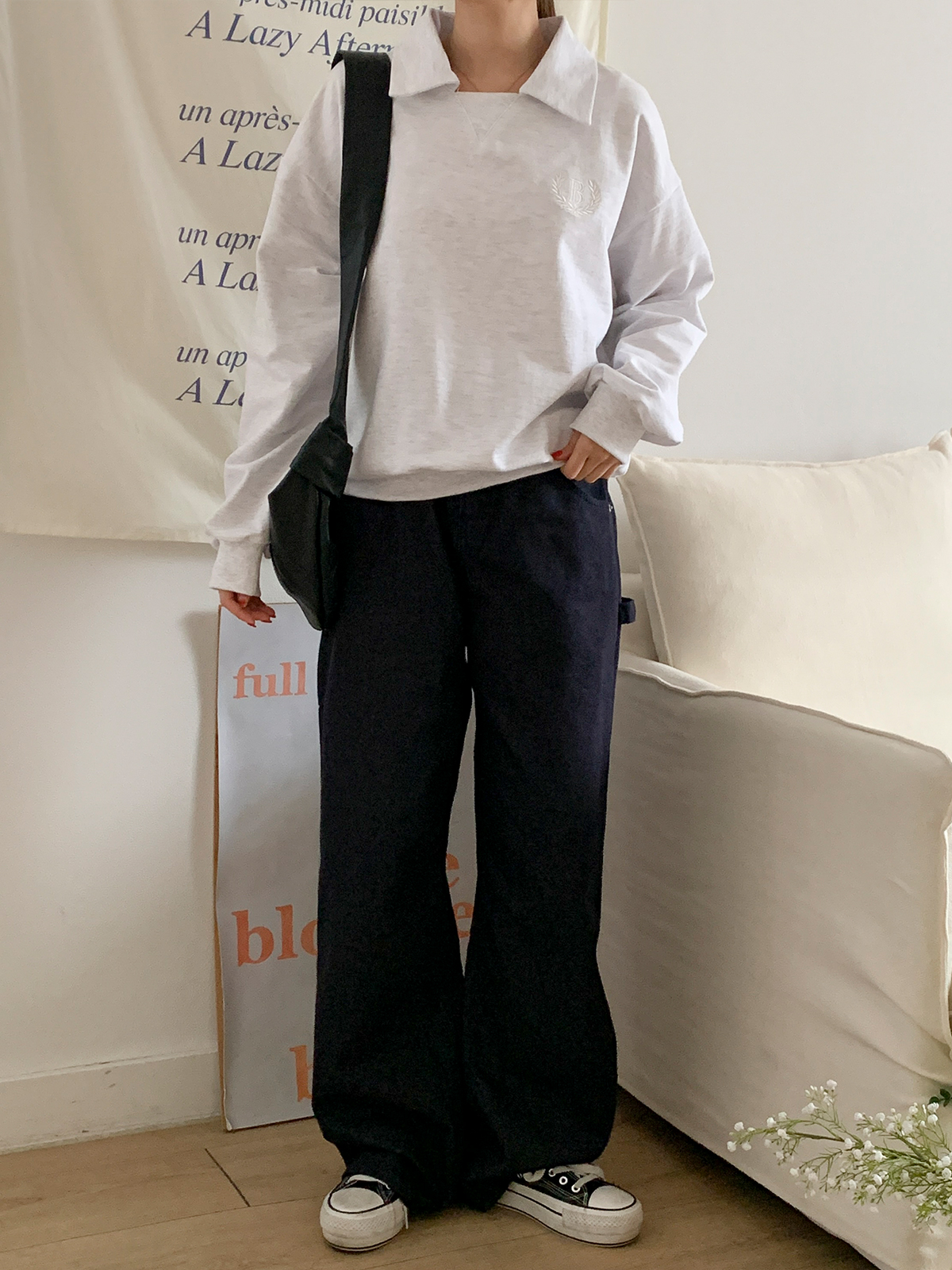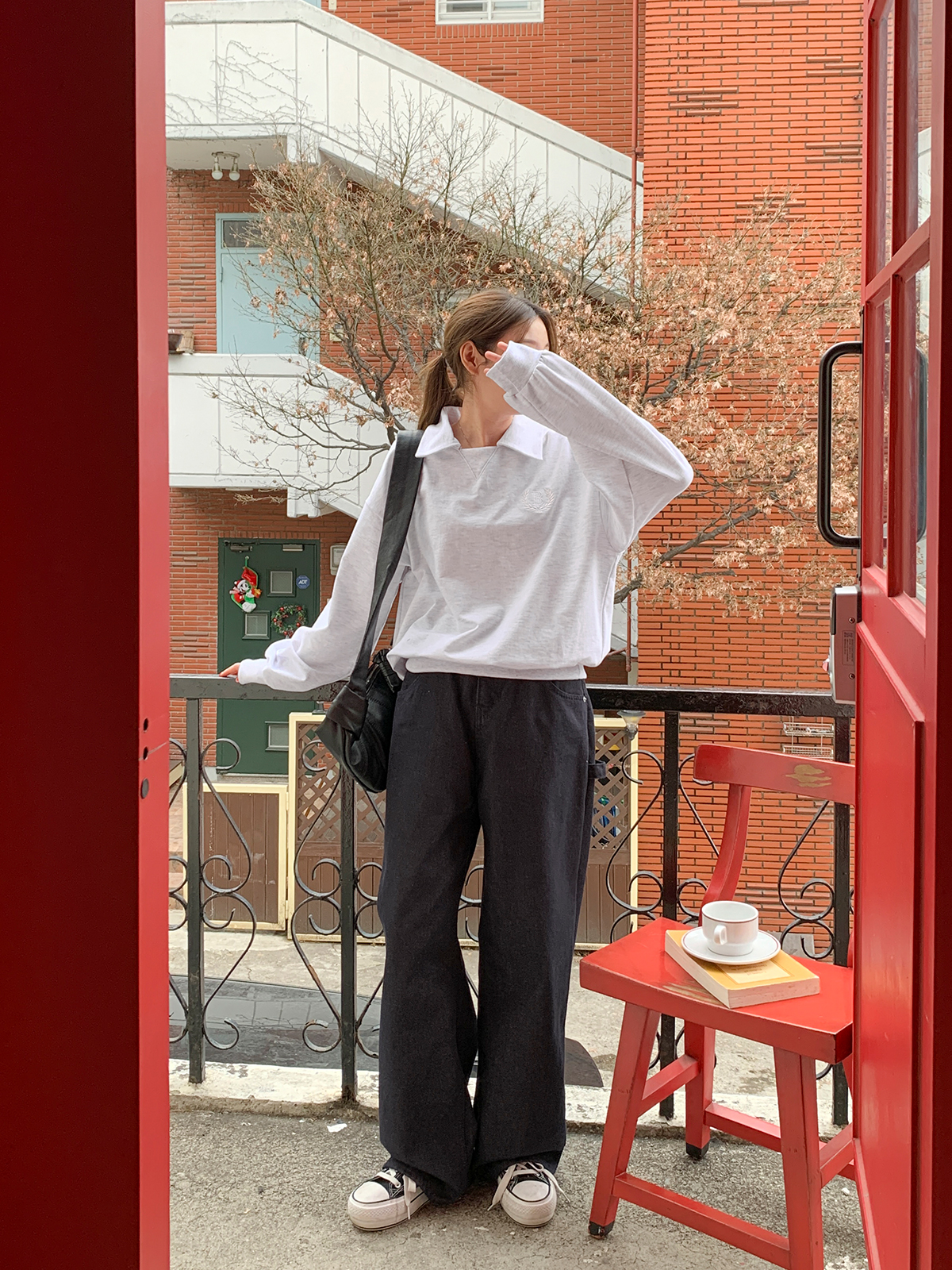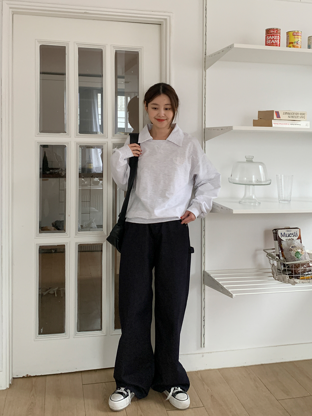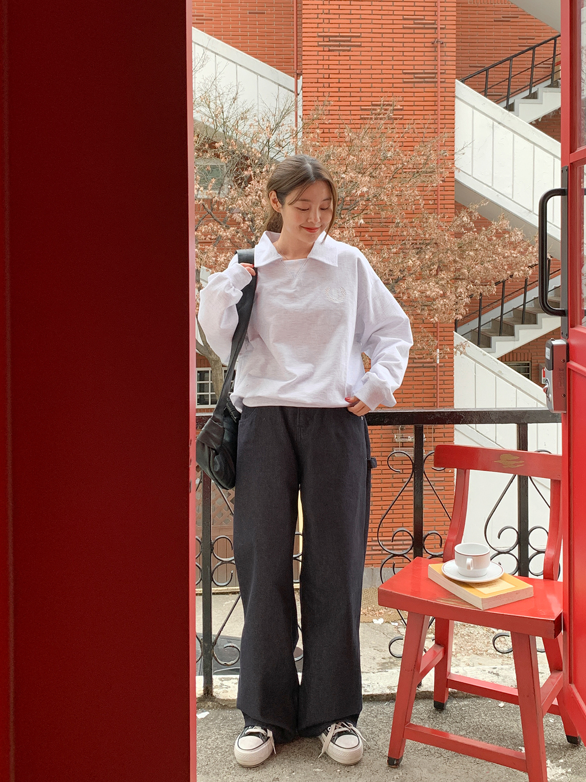 논페이드 소재로 물 빠짐 걱정이 없으며 신축성은 없지만 루즈한 와이드핏으로 편하게 착용이 가능하면서 사이드 부분 스트랩 포인트로 캐주얼하면서 데일리하게 입기 좋은 데님