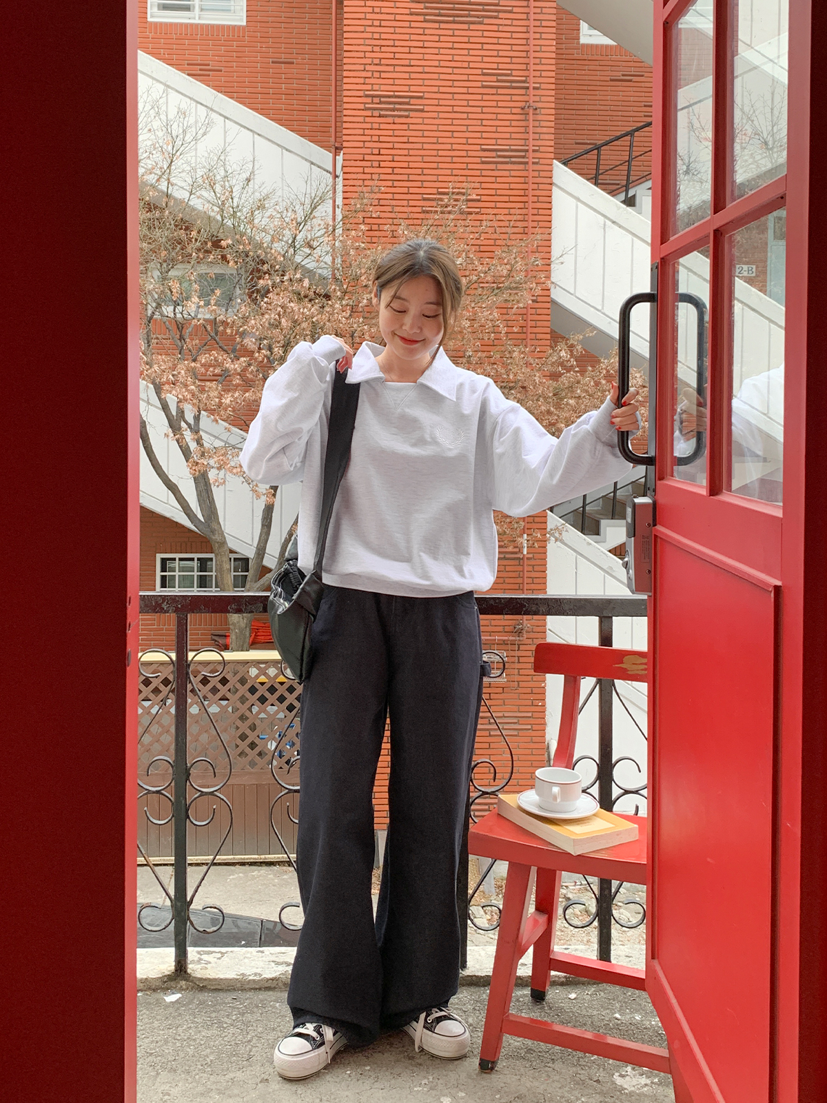 신축성은 없지만 루즈한 와이드핏으로 편하게 착용이 가능하면서