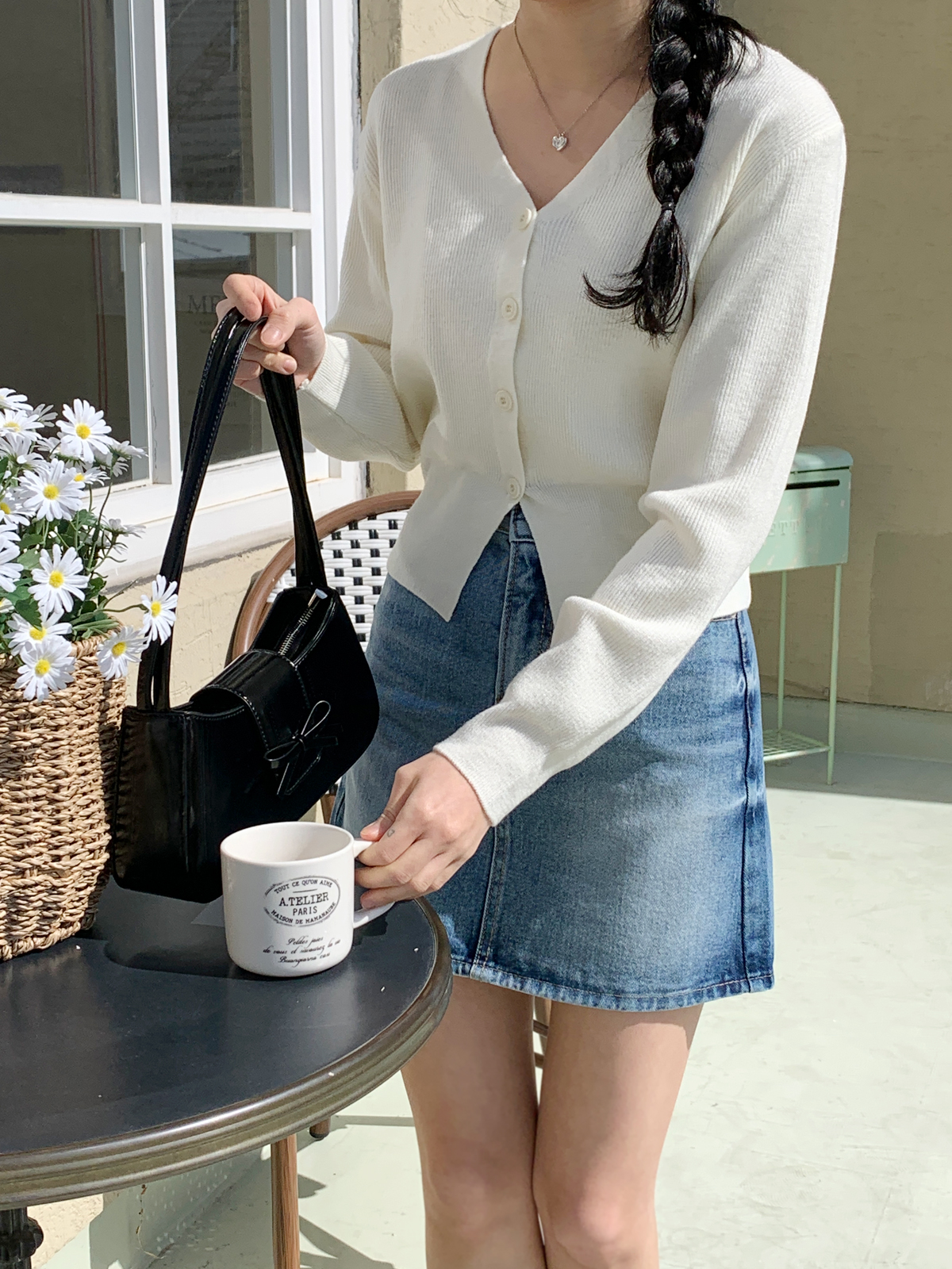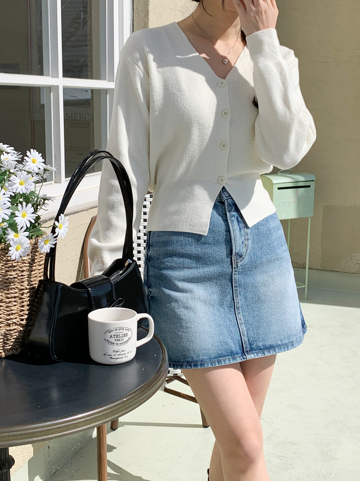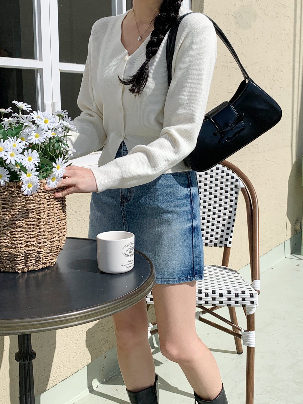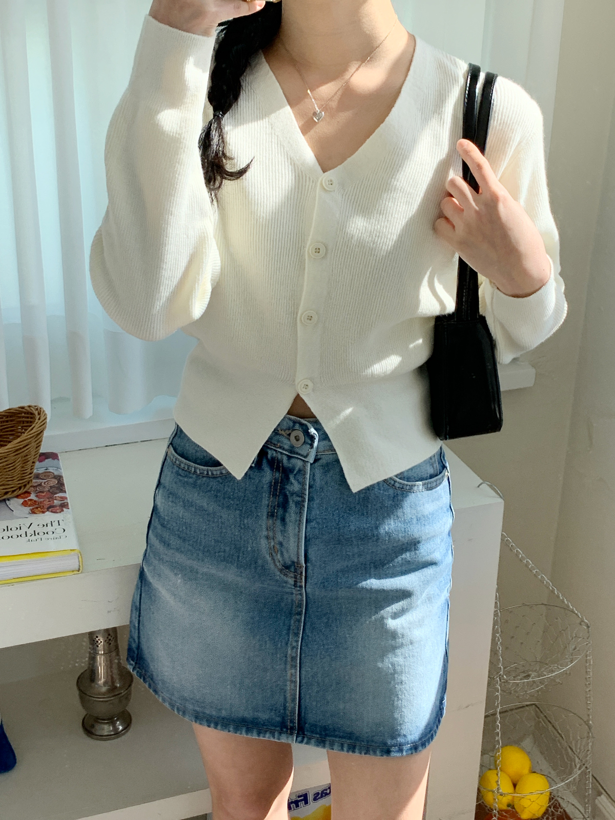 심플하게 앞워싱이 들어간 데님 미니스커트이며,