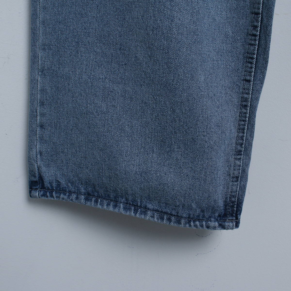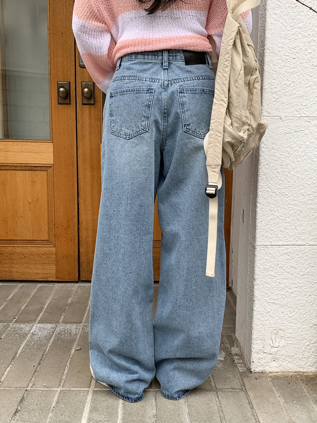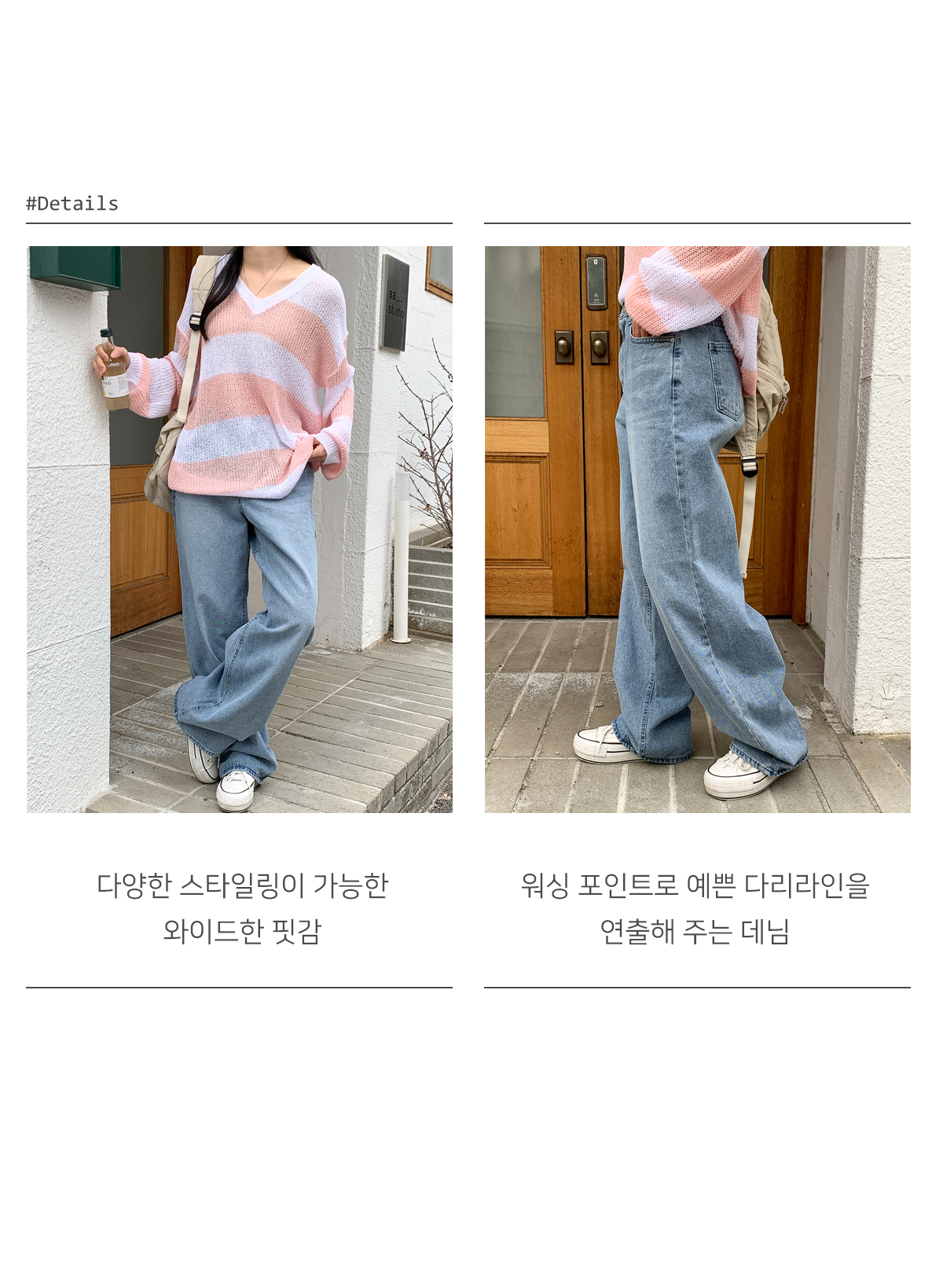 스트레이트 일자핏감으로 깔끔하게 떨어지며, 워싱 포인트가 들어가 예쁜 다리라인을 연출해주는 데님팬츠