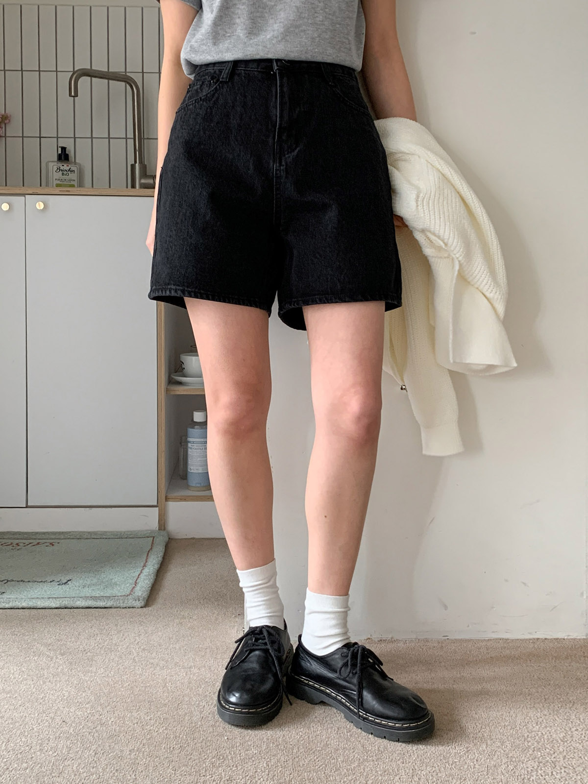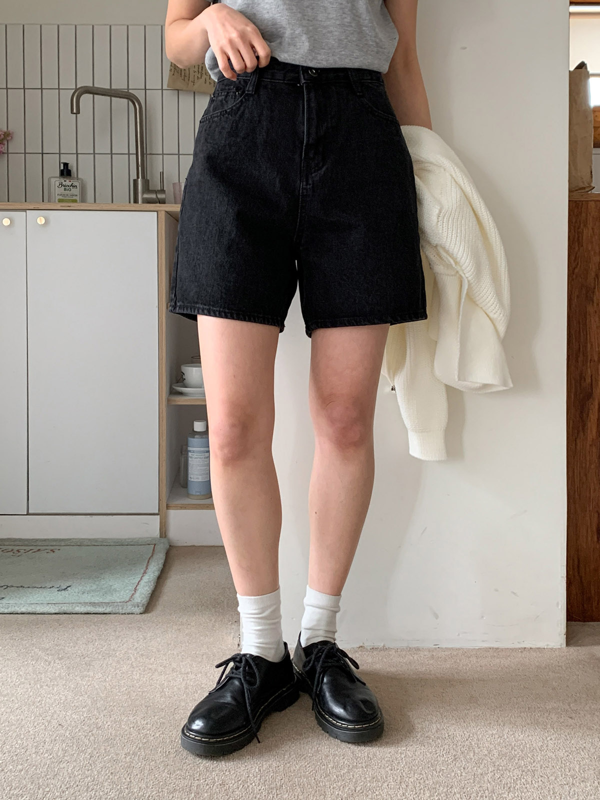 봄 여름 둘 다 즐기기 좋은 A라인 흑청 반바지 추천드려요 ♥(〃´૩`〃)♥