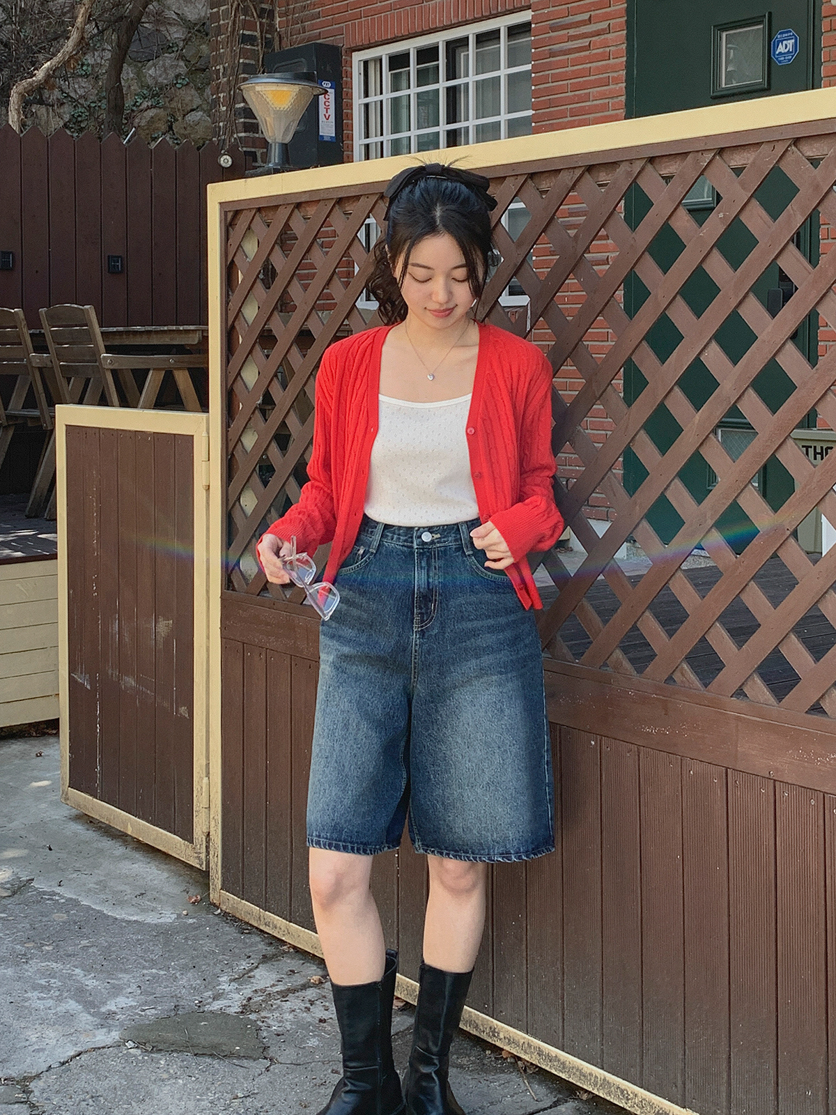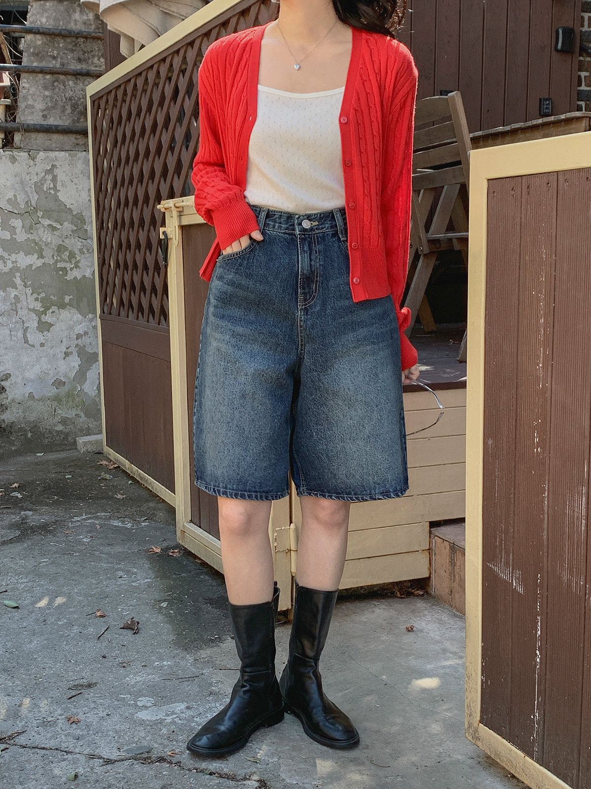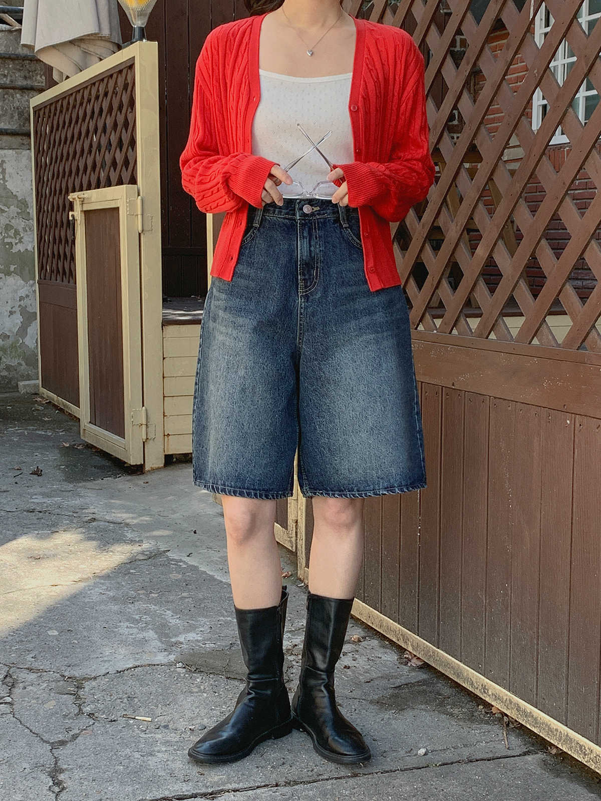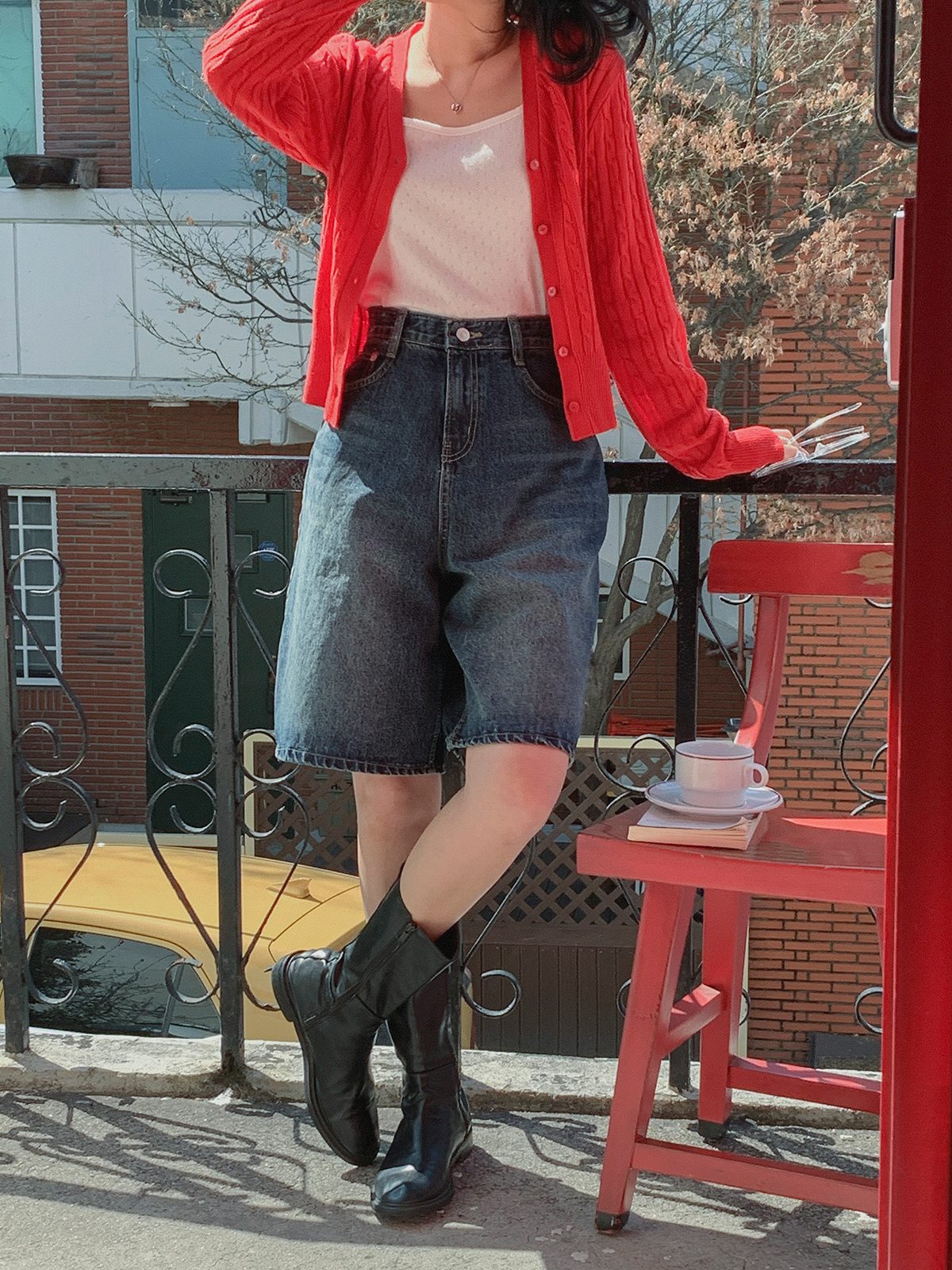 타이트하지않은 일자핏의 5부 중청 데님팬츠 추천드립니다 ٩(๑• ₃ -๑)۶♥