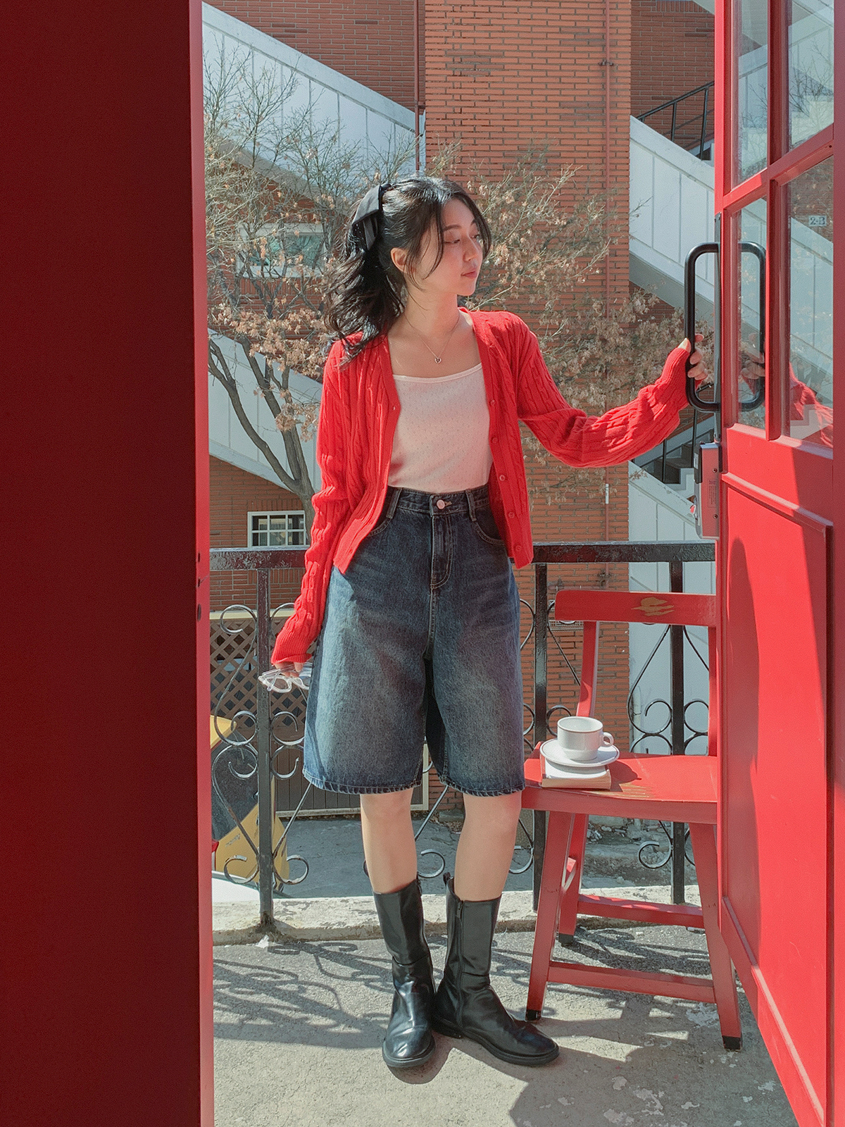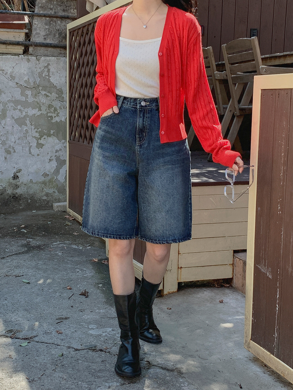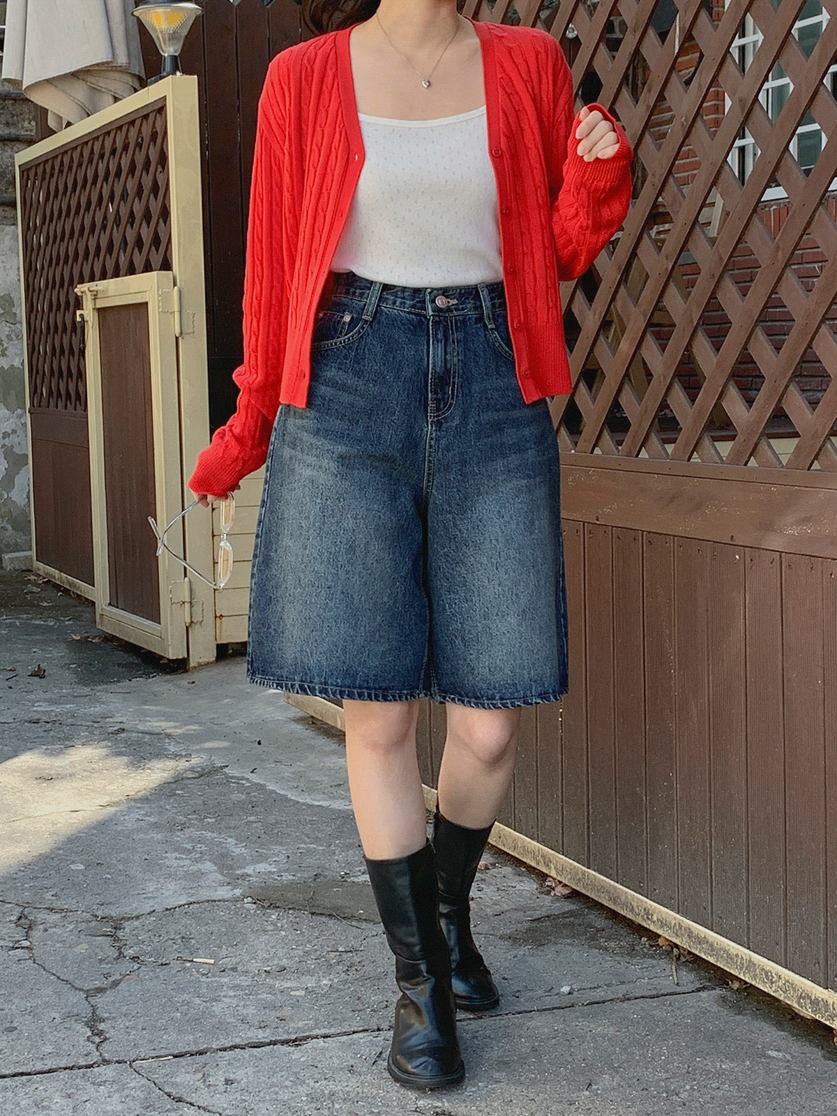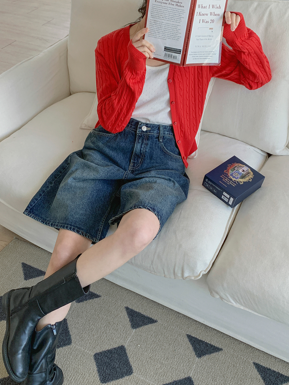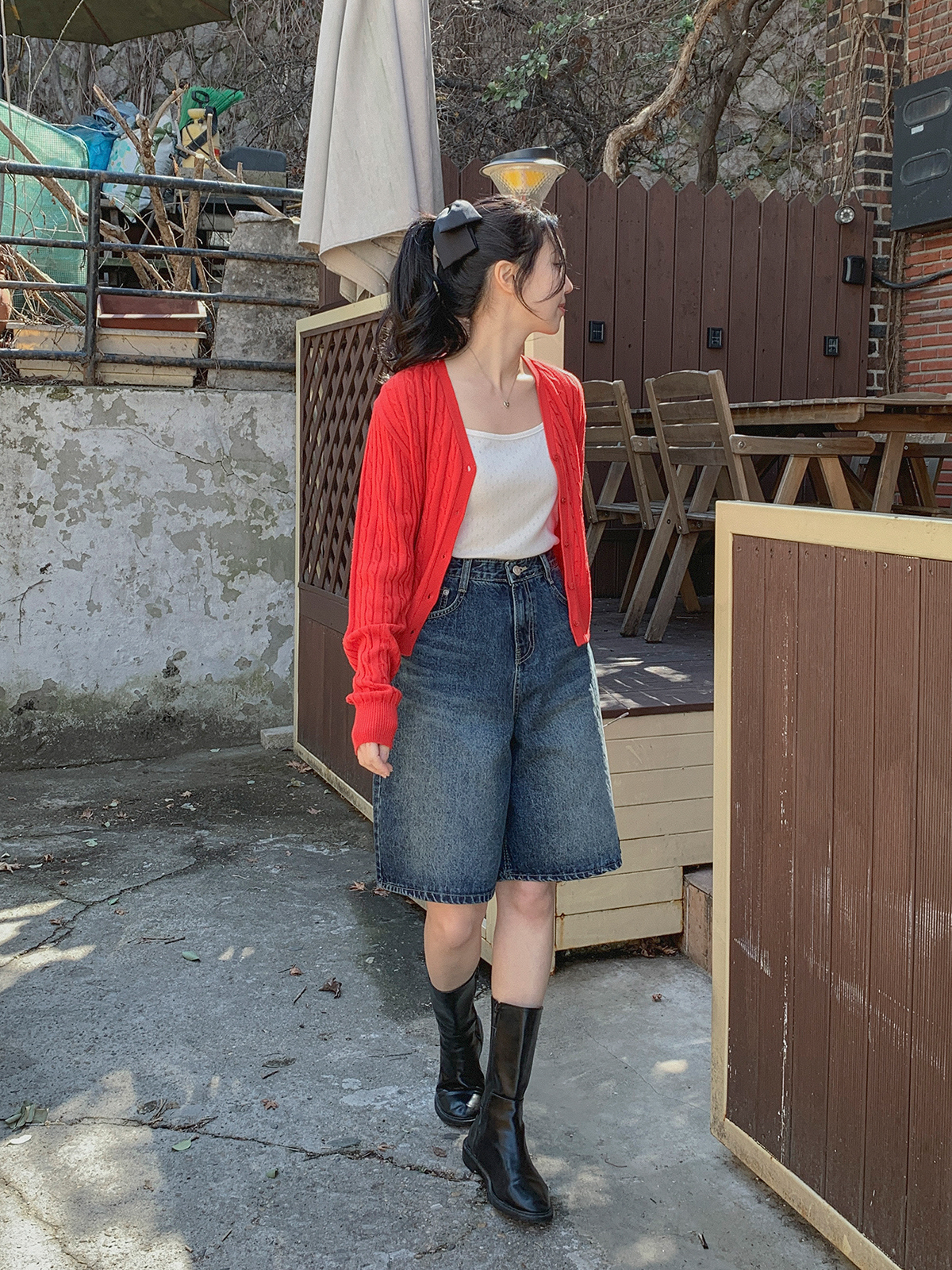 타이트하지않은 일자핏의 5부 중청 데님팬츠 추천드립니다 ٩(๑• ₃ -๑)۶♥