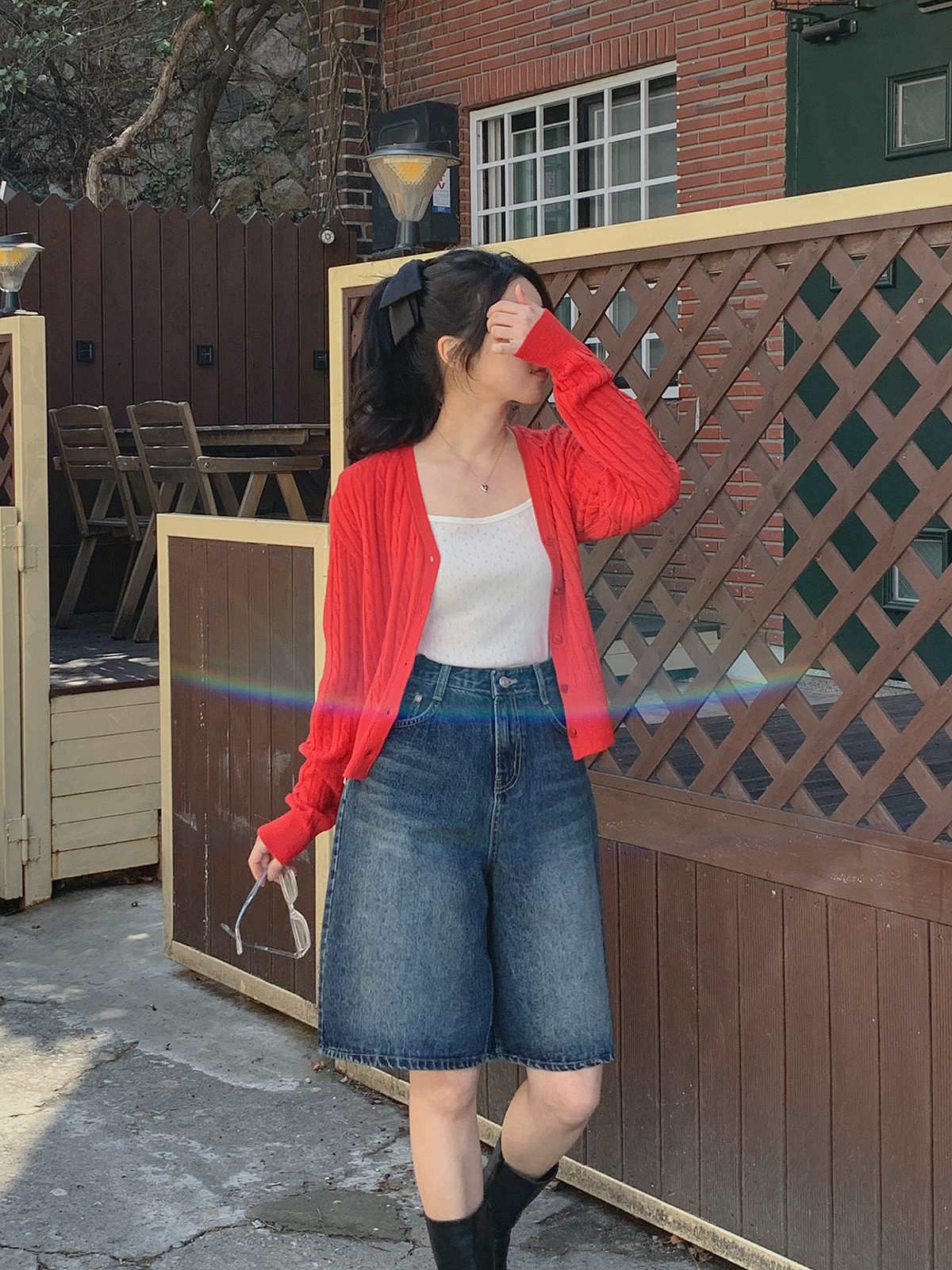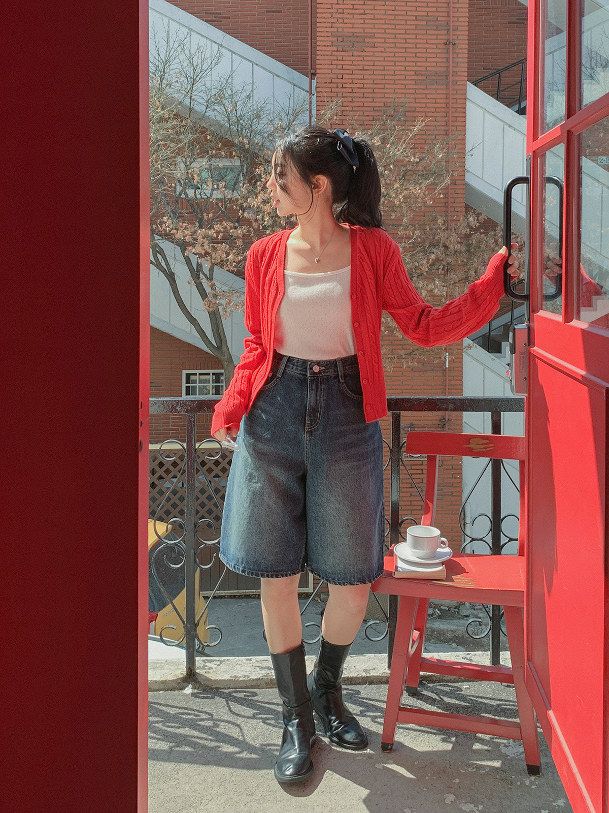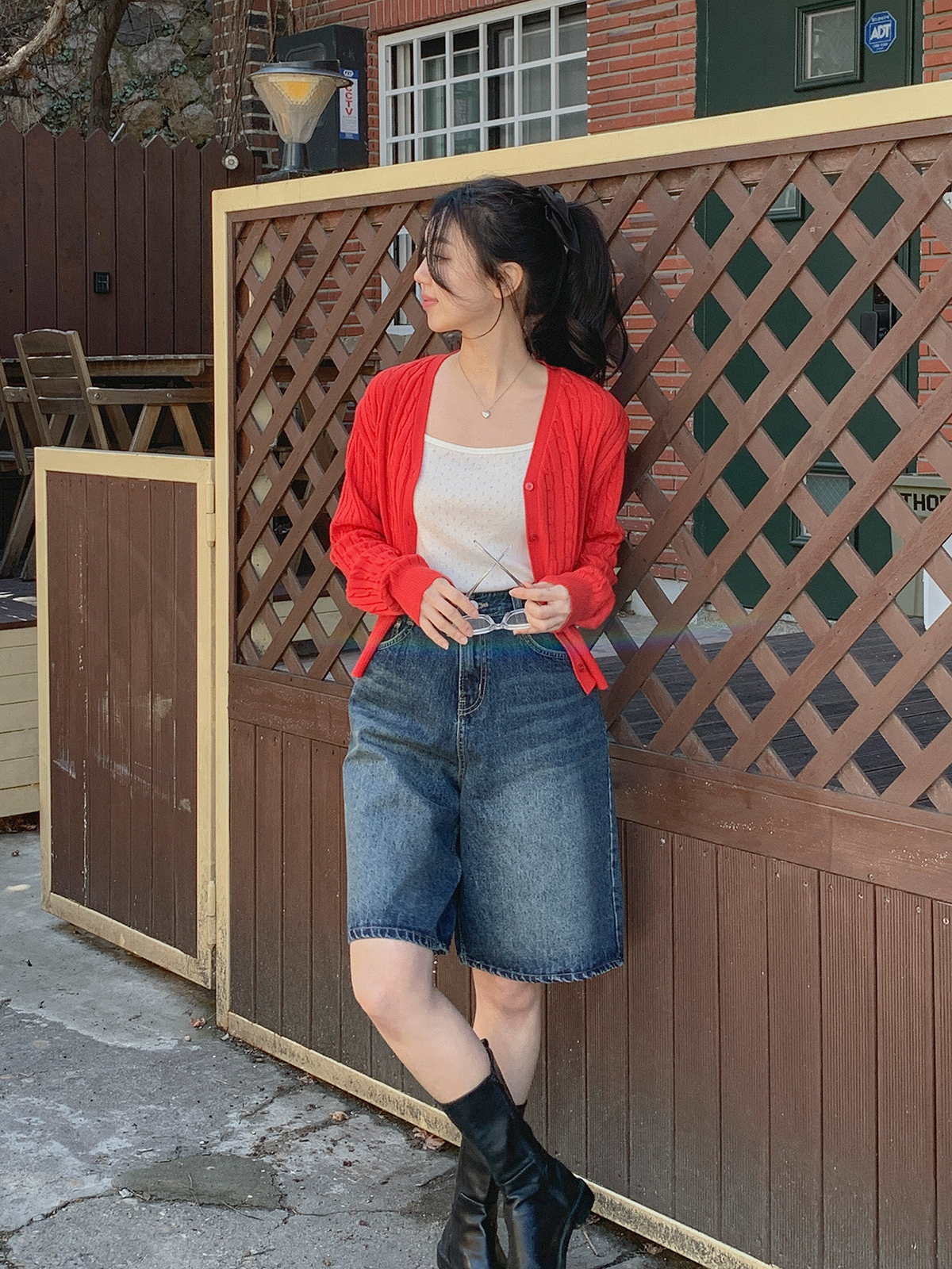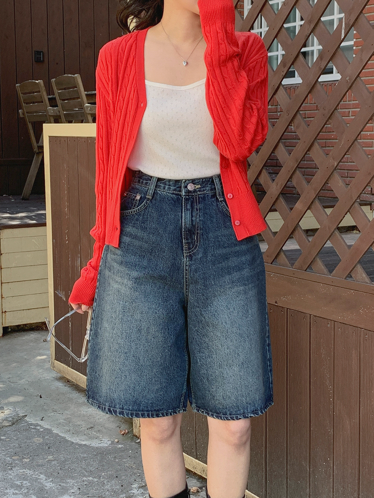 타이트하지않은 일자핏의 5부 중청 데님팬츠 추천드립니다 ٩(๑• ₃ -๑)۶♥