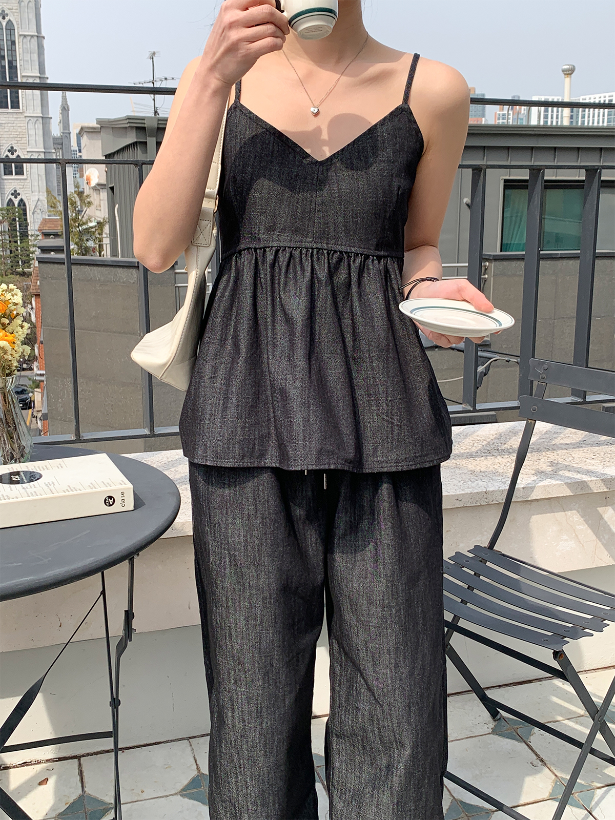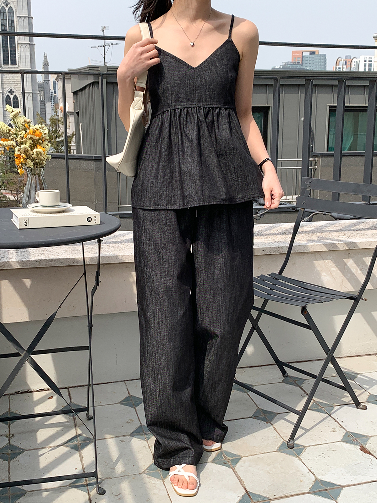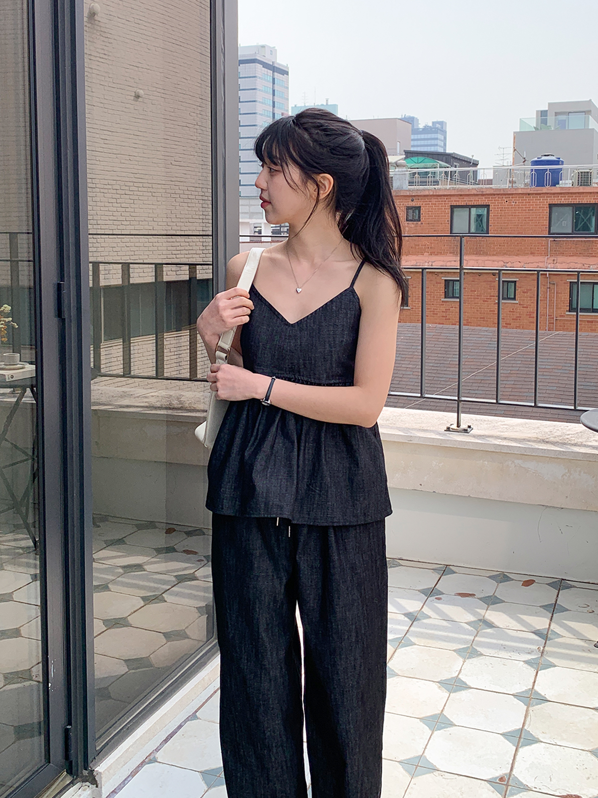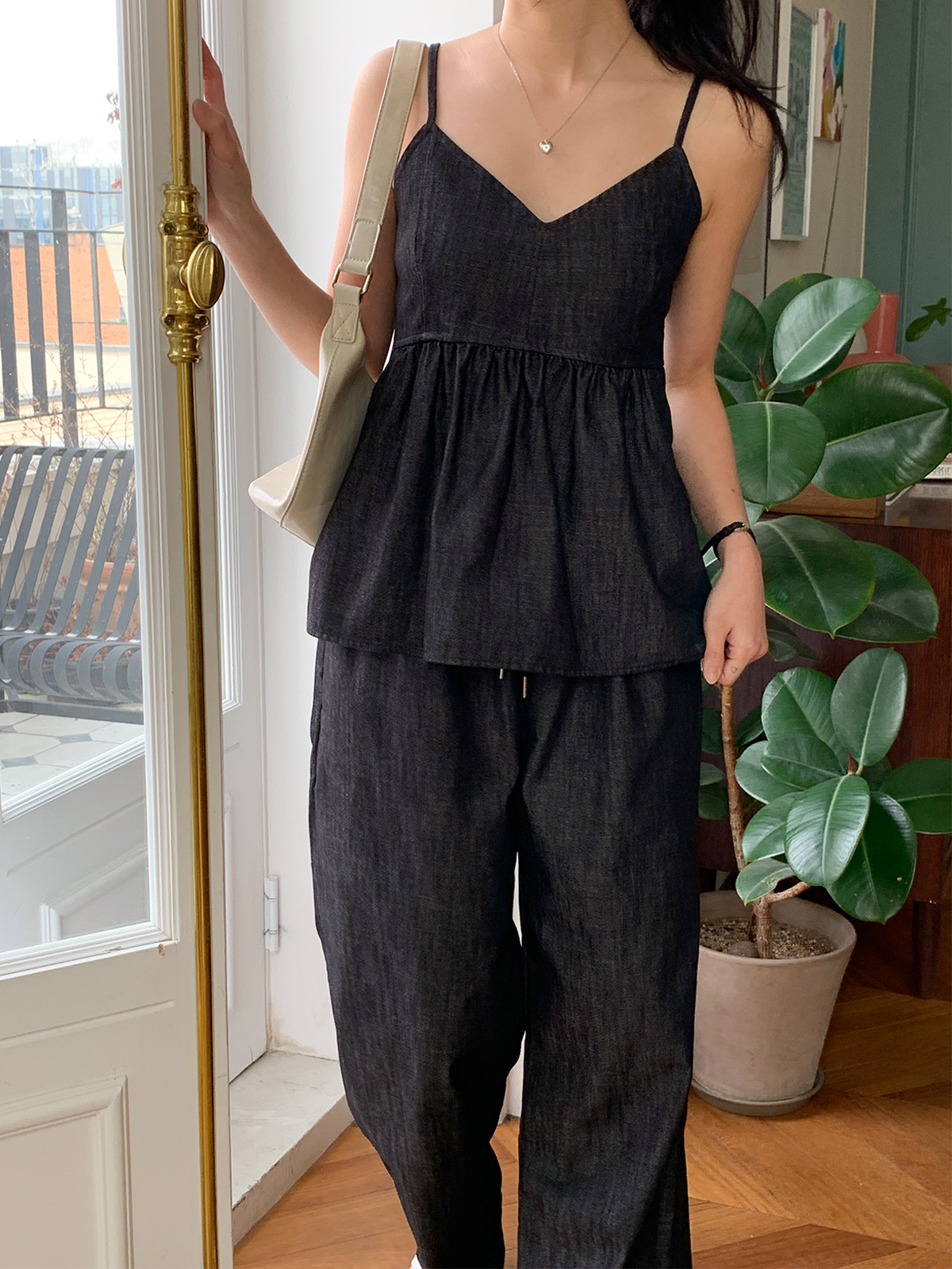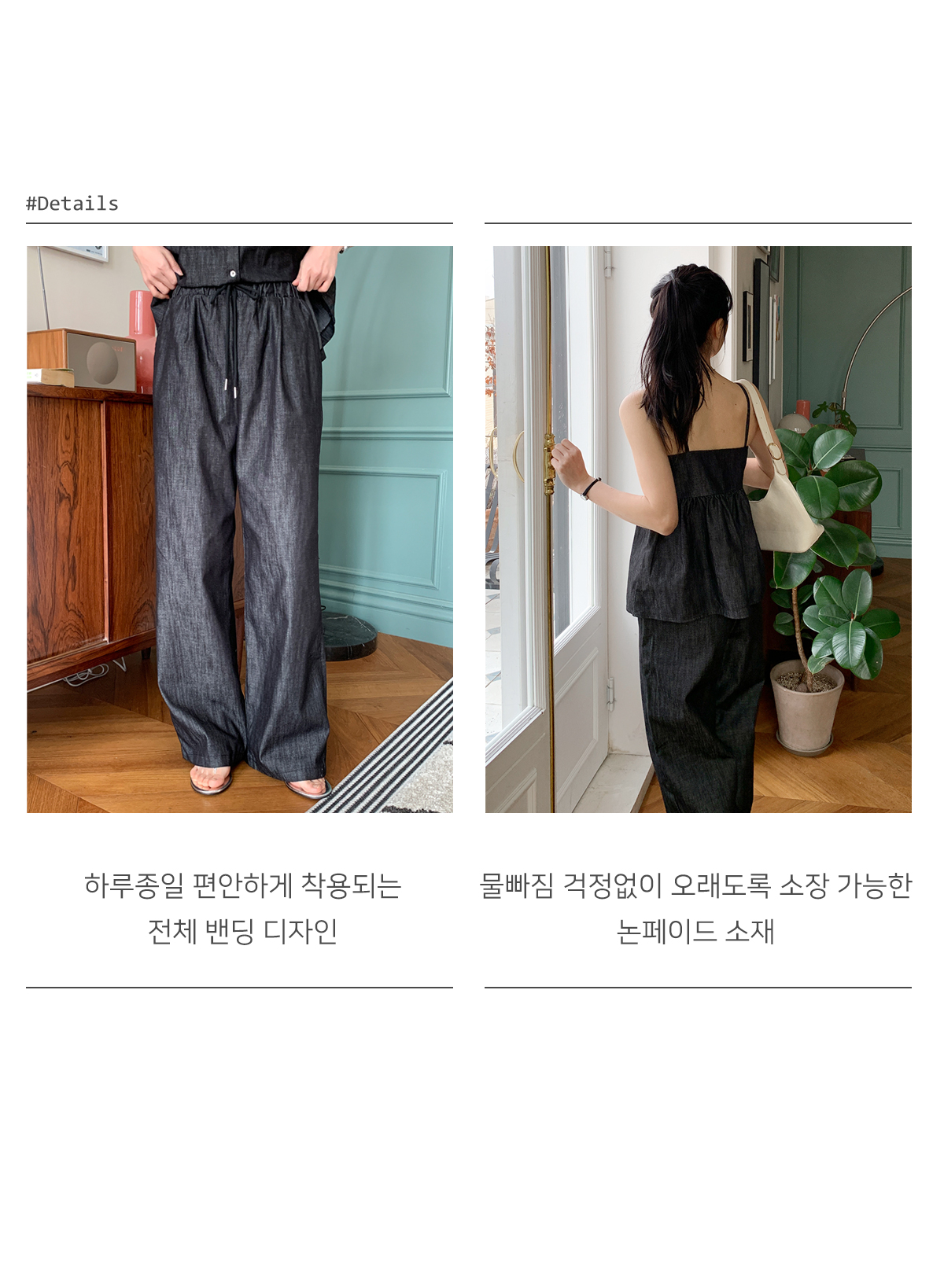 이염방지 원단으로 관리하기도 편하고 허리밴딩과 와이드핏으로 착용했을 때도 편해 추천해요!