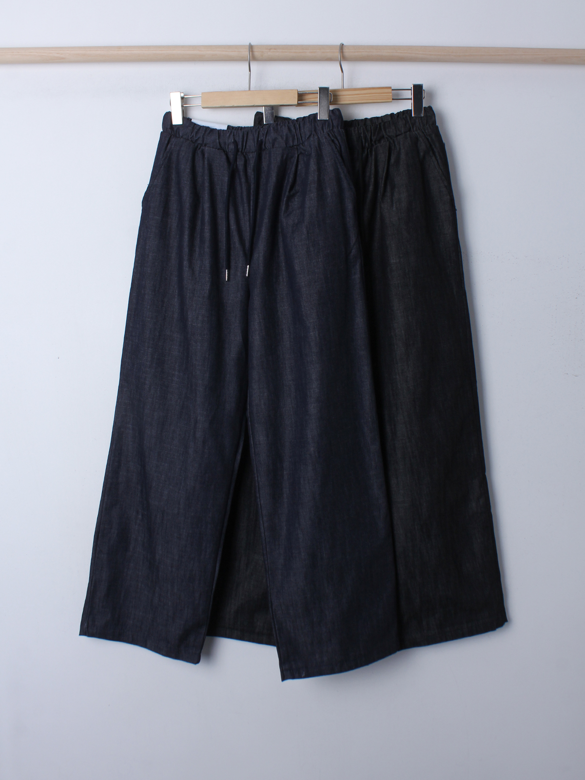 논페이드 데님 소재의 와이드한 핏감의 데님팬츠에요!