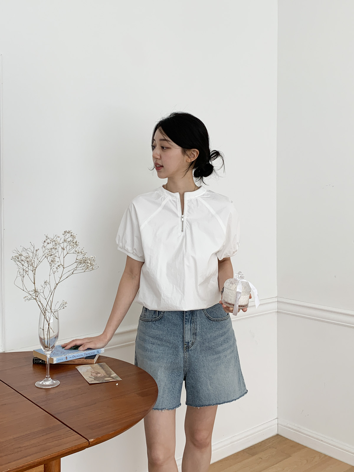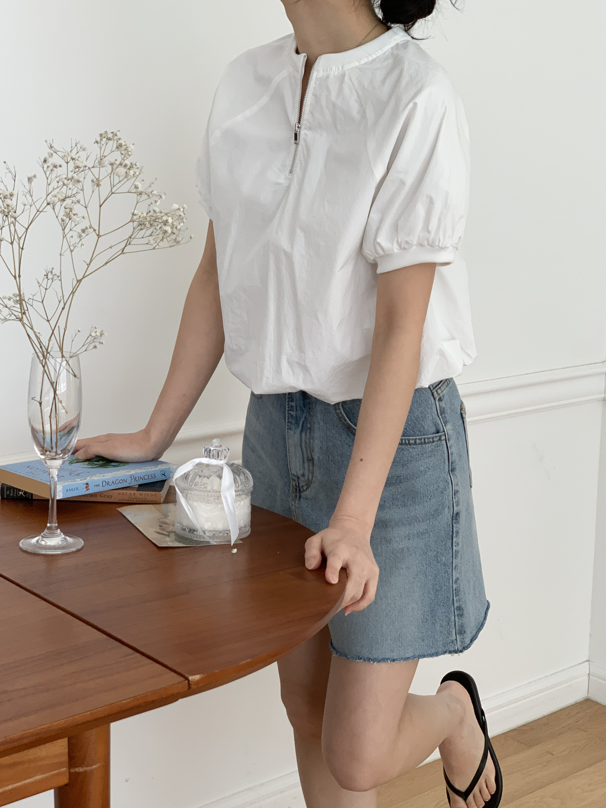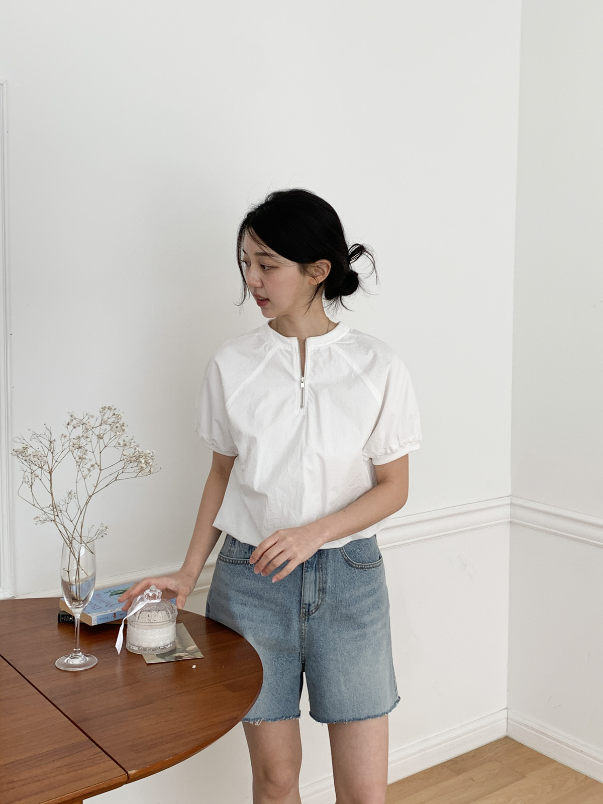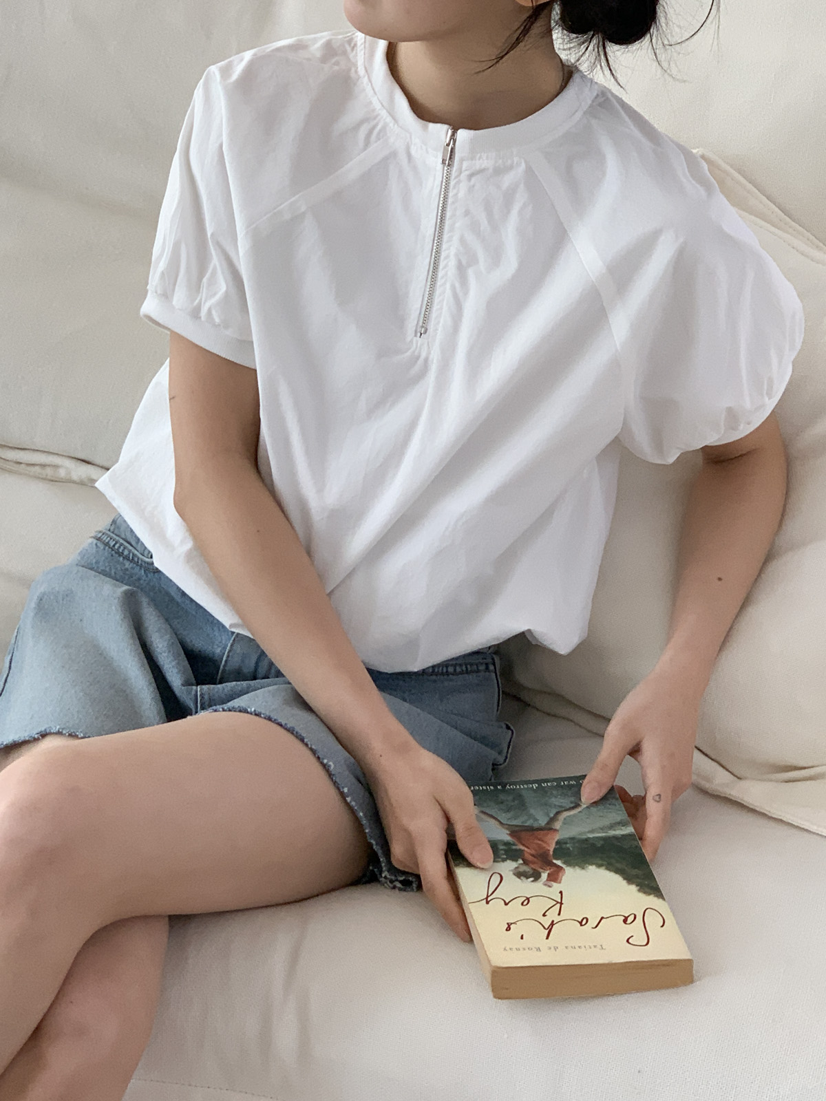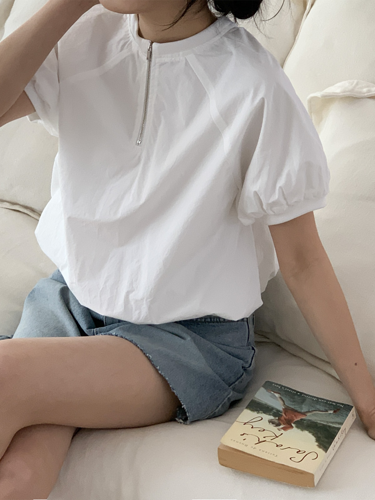 나그랑 디자인에 반집업 포인트가 들어가 유니크한 블라우스