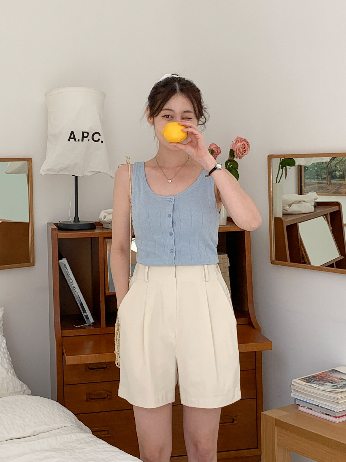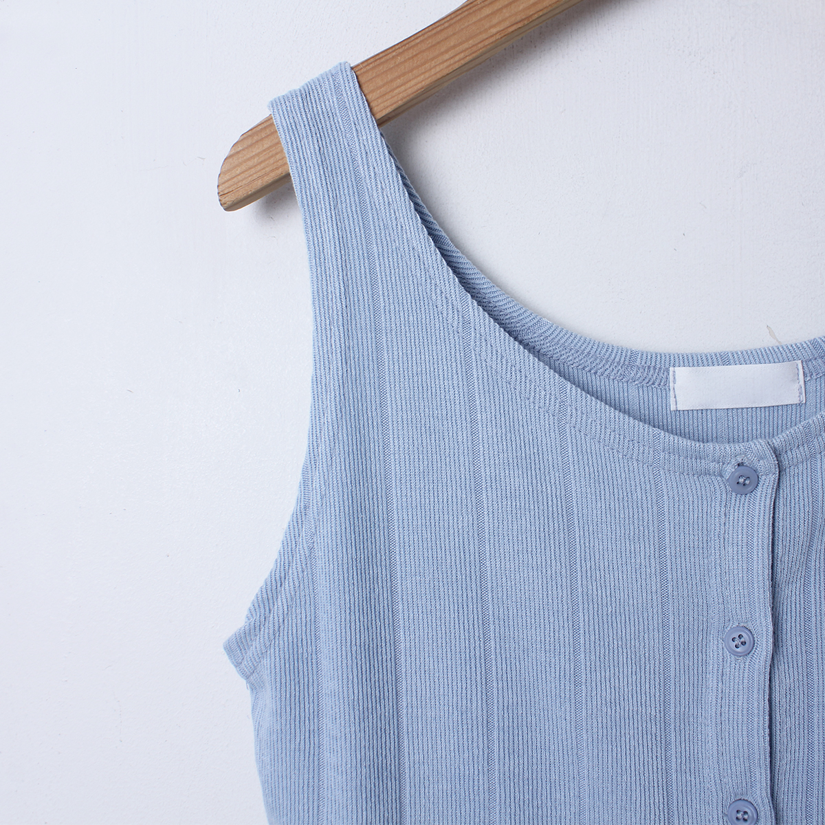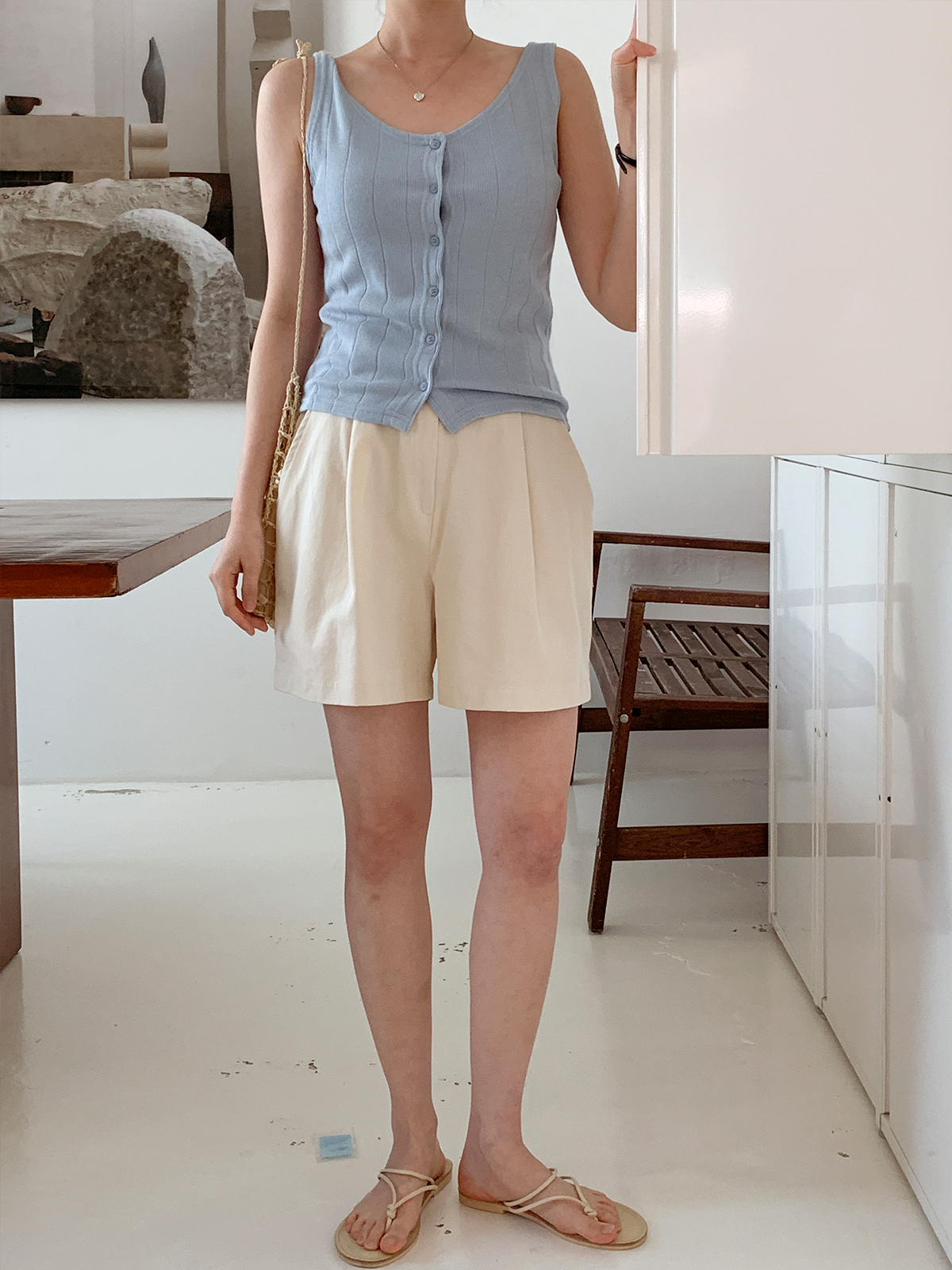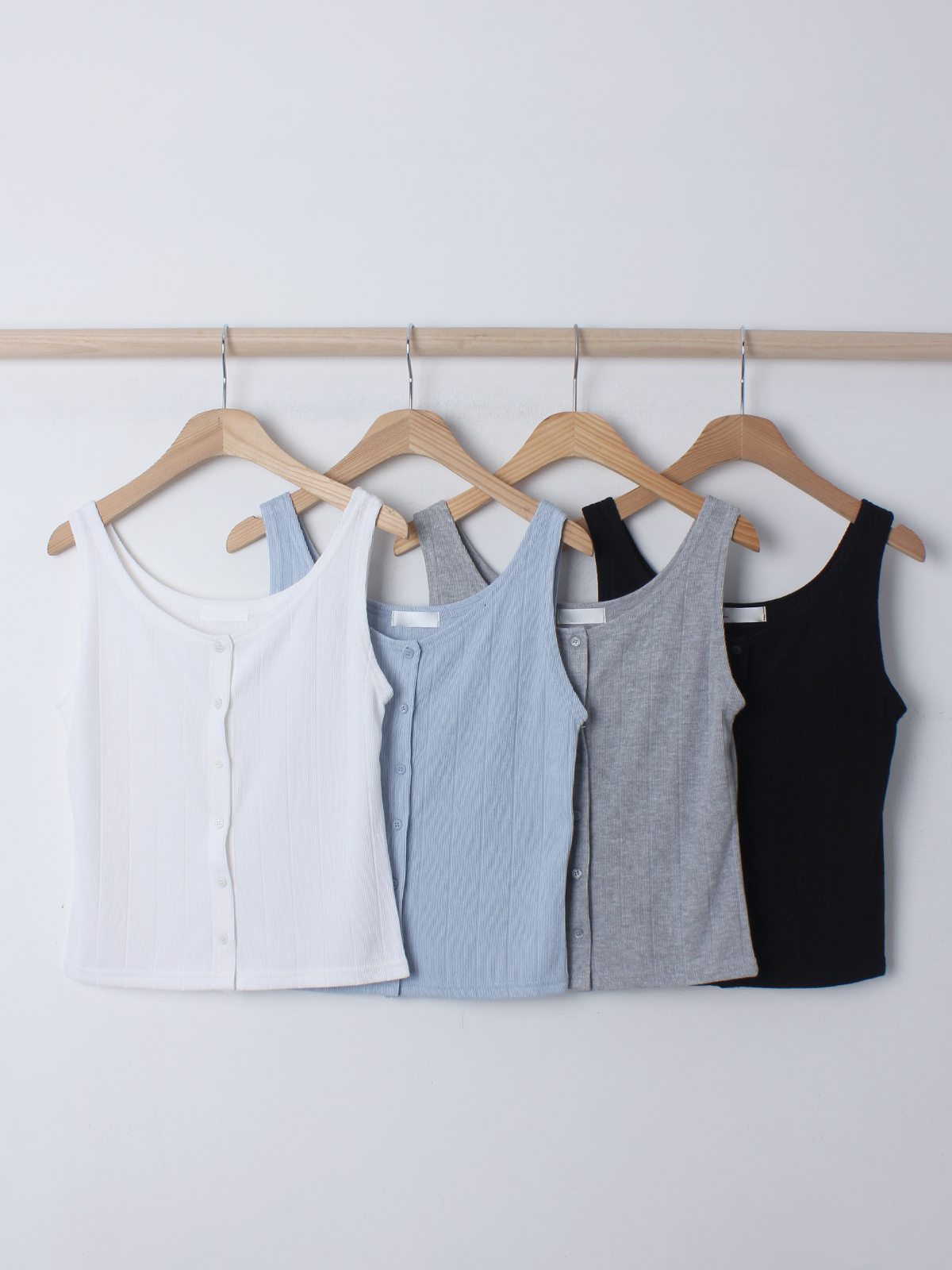 라운드 넥라인으로 부담없이 입을 수 있고, 중앙에 세로 버튼으로 자유로운 연출이 가능해 데일리 민소매 가디건으로 추천해요!