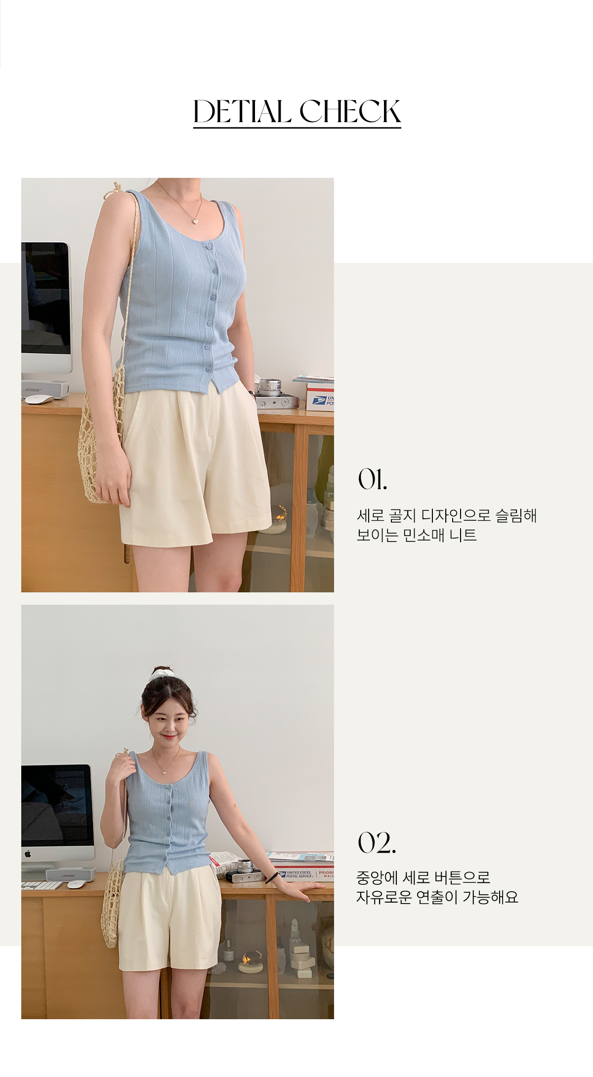 세로 골지 디자인으로 슬림해 보이는 민소매 니트 가디건이에요!