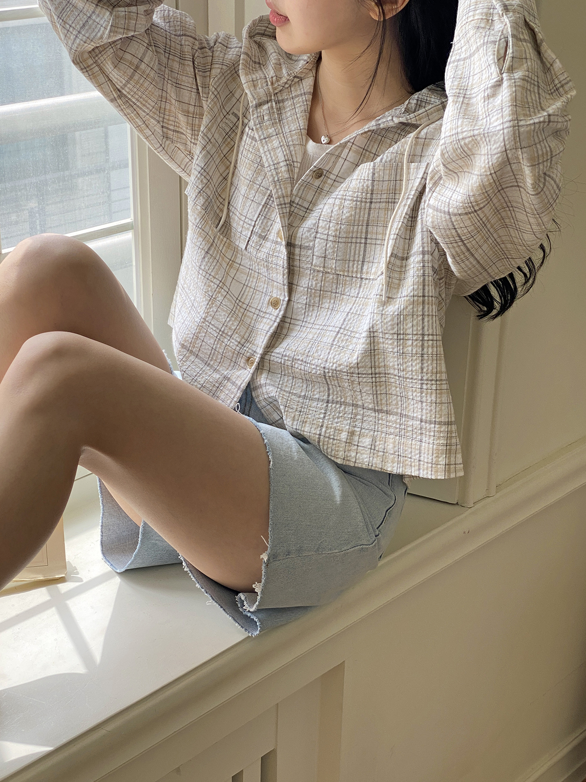 #체크남방#셔츠#여성셔츠#체크셔츠#베이직셔츠#셔츠코디#데일리셔츠#데일리룩#데일리패션#데일리#캐쥬얼#오버핏#오버핏남방#오버핏후드남방#체크후드남방#유니크후드남방