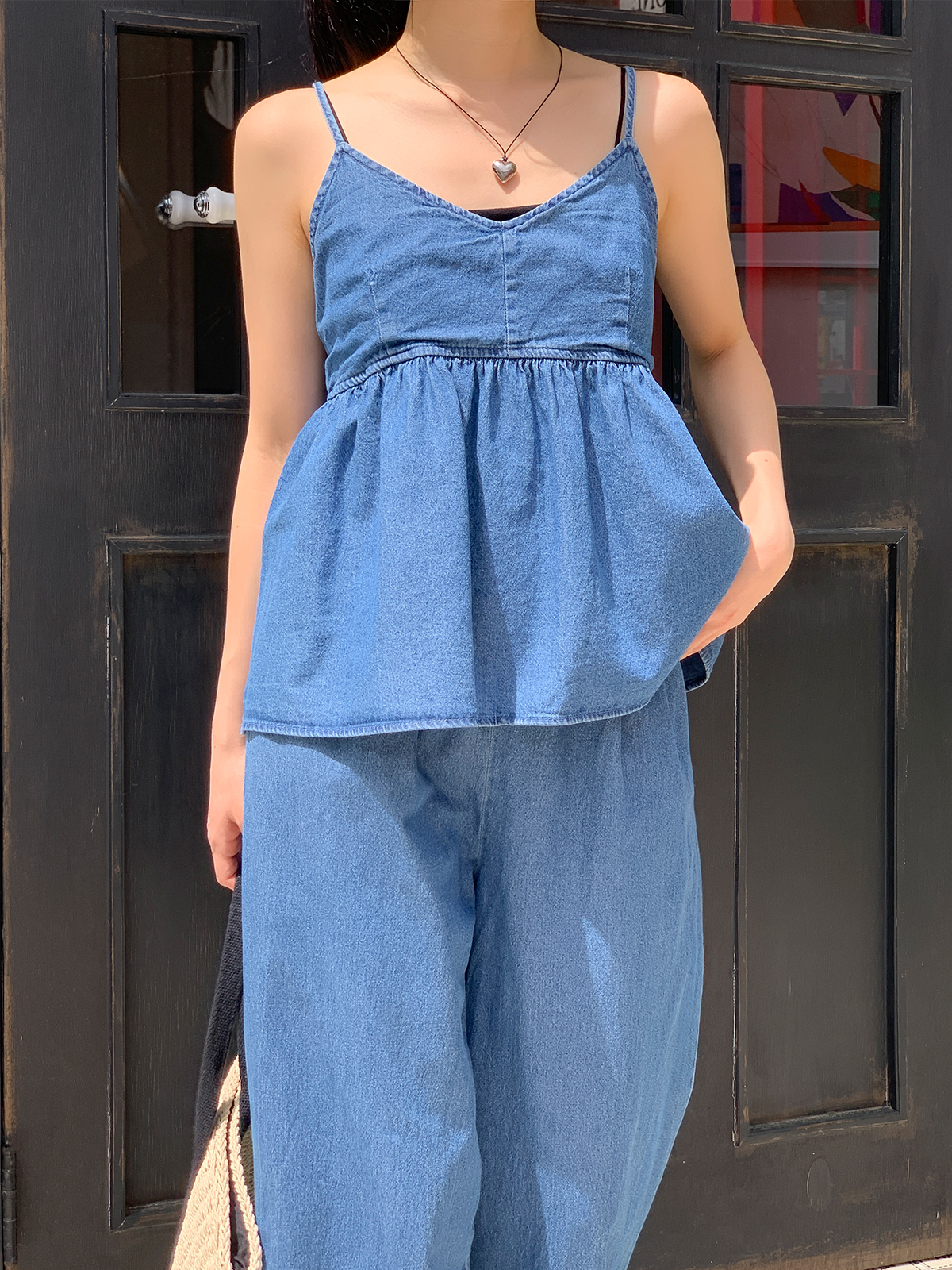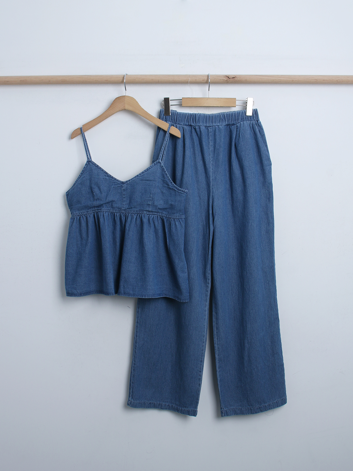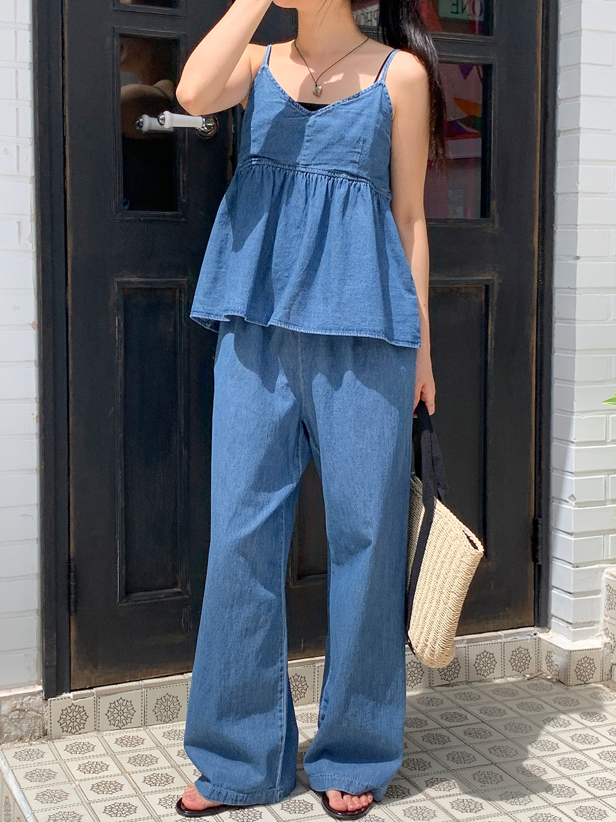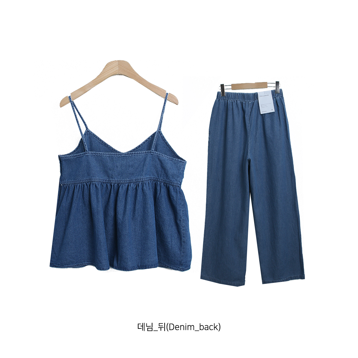 데님 끈나시와 밴딩 팬츠가 세트인 상품이에요 :)