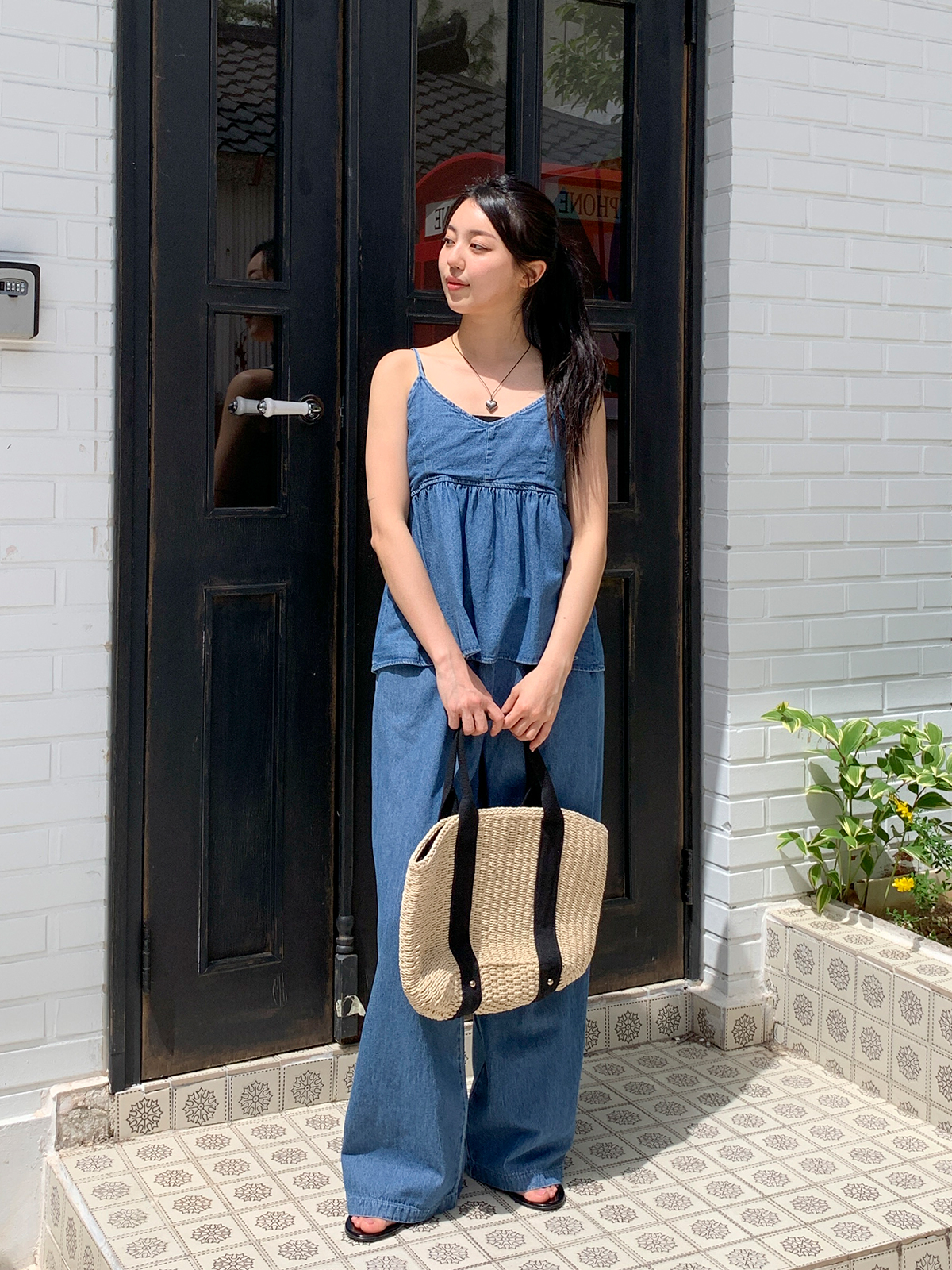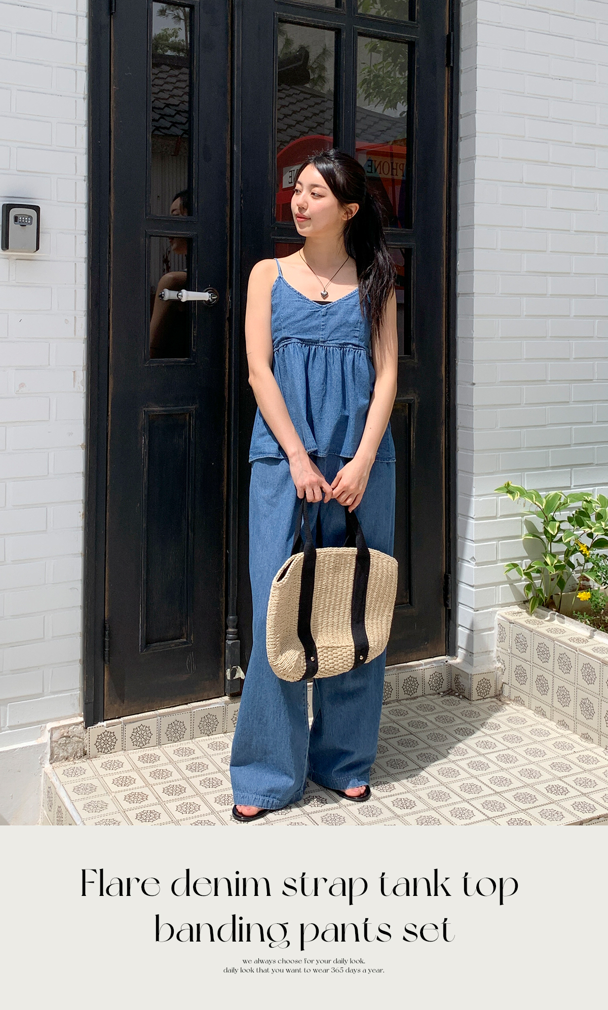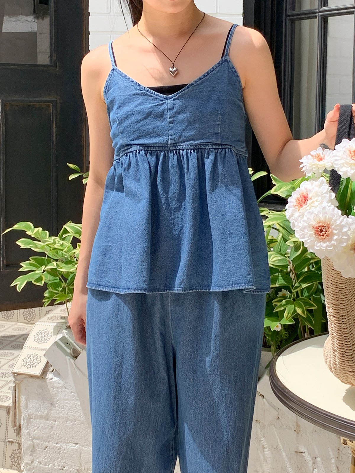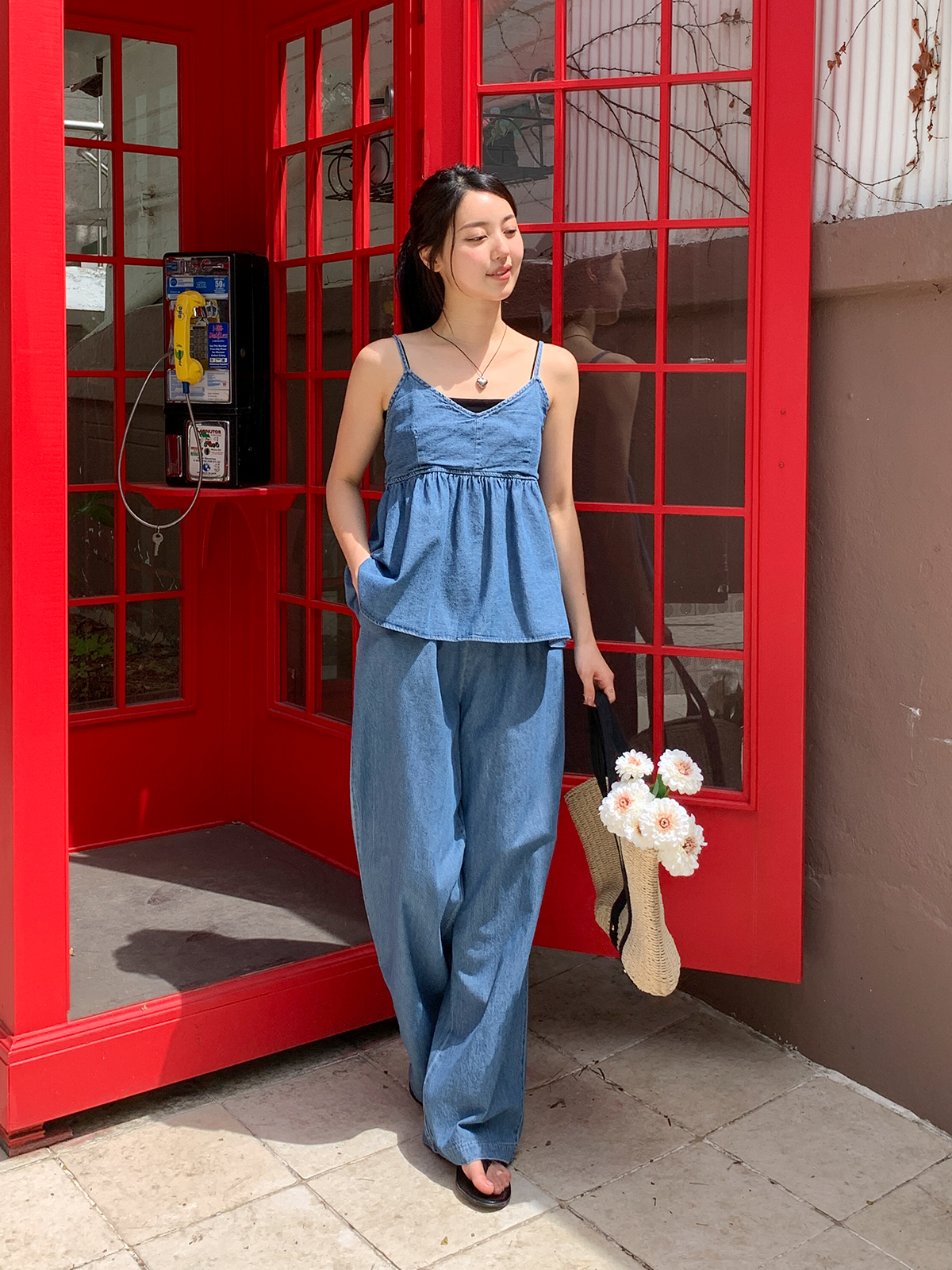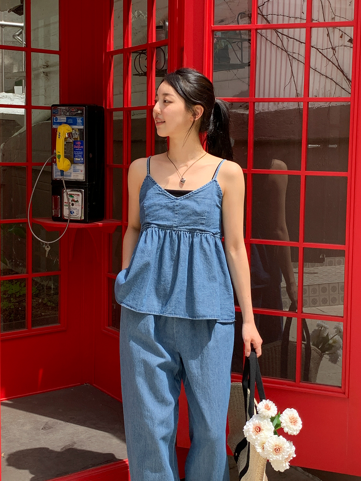 데님 끈나시와 밴딩 팬츠가 세트인 상품이에요 :)