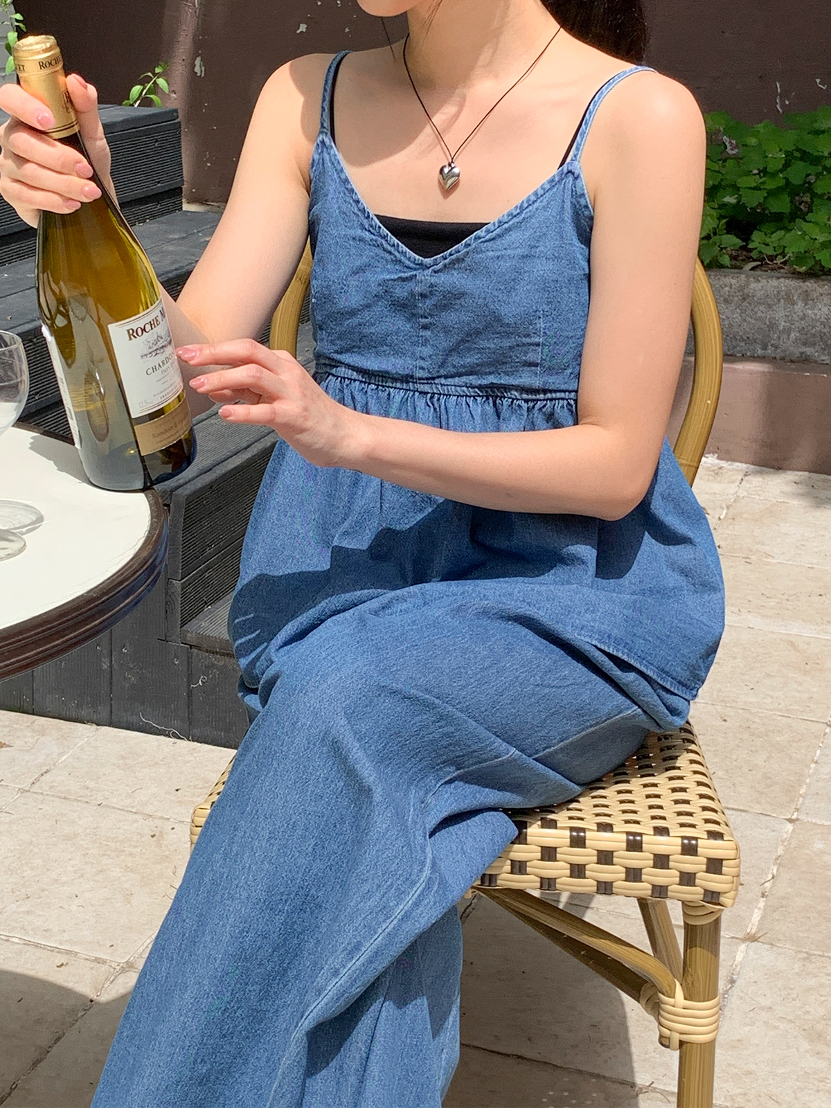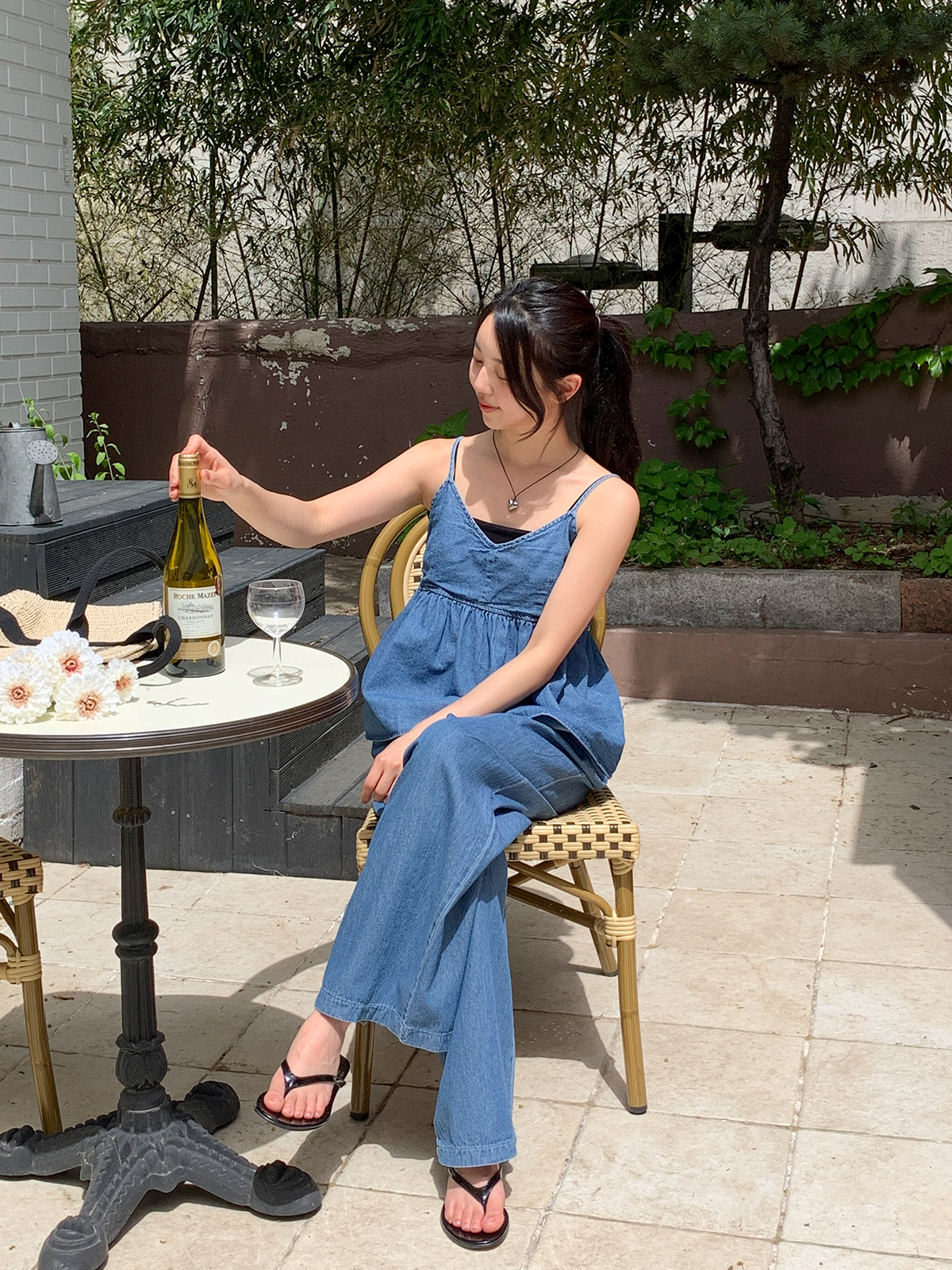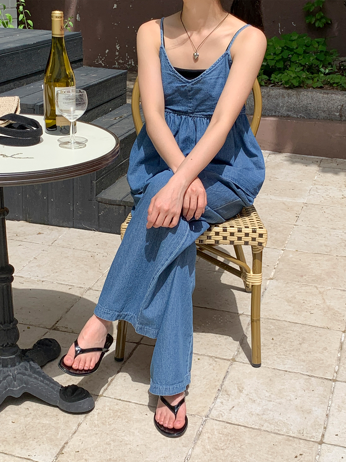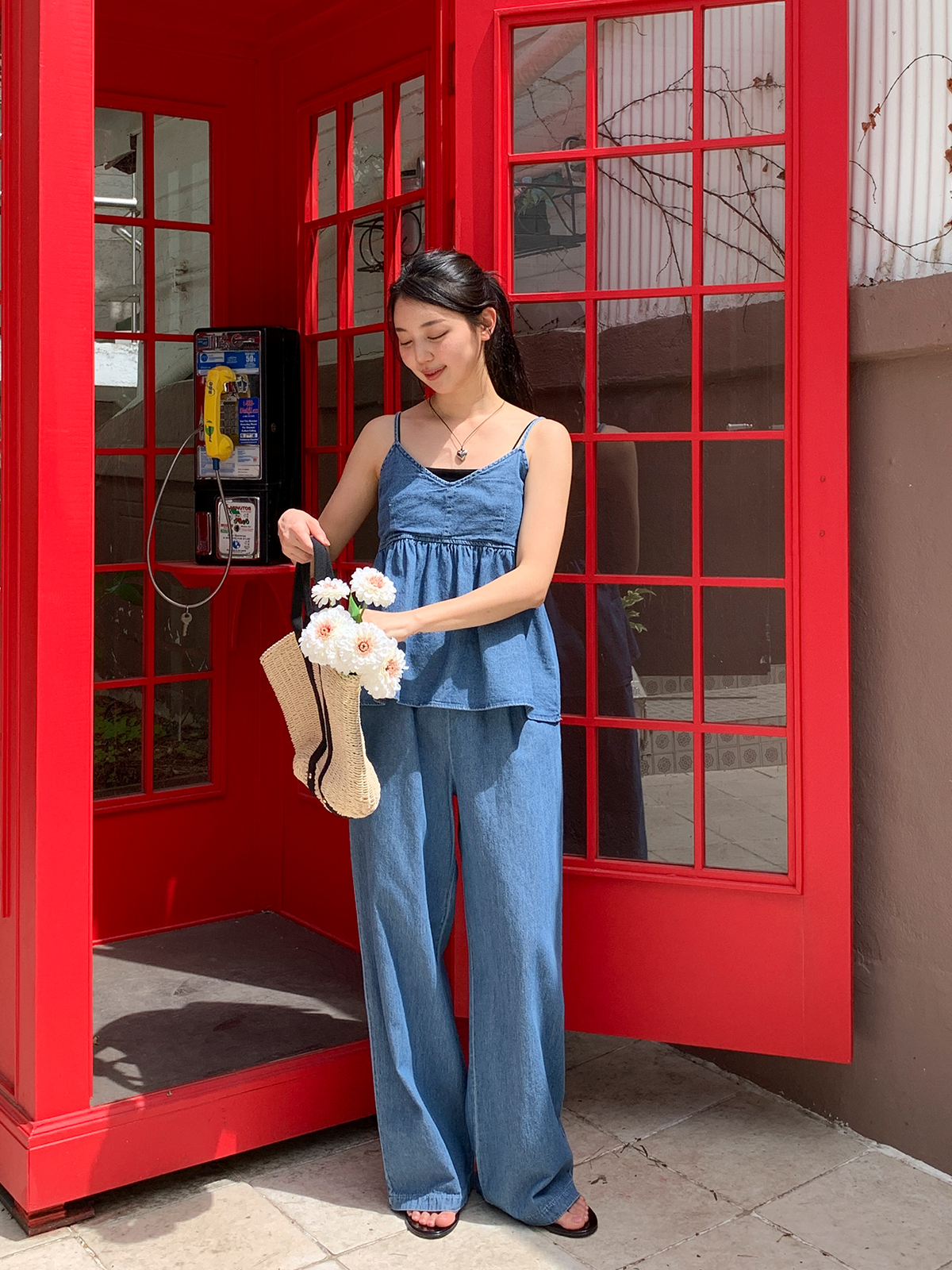 데님 끈나시와 밴딩 팬츠가 세트인 상품이에요 :)