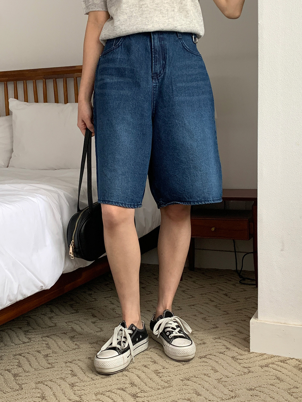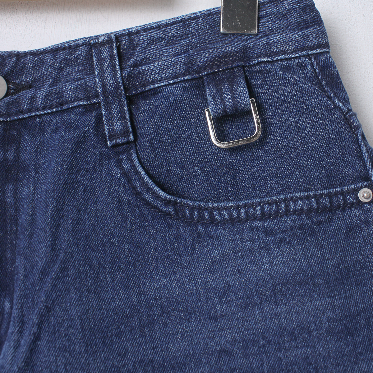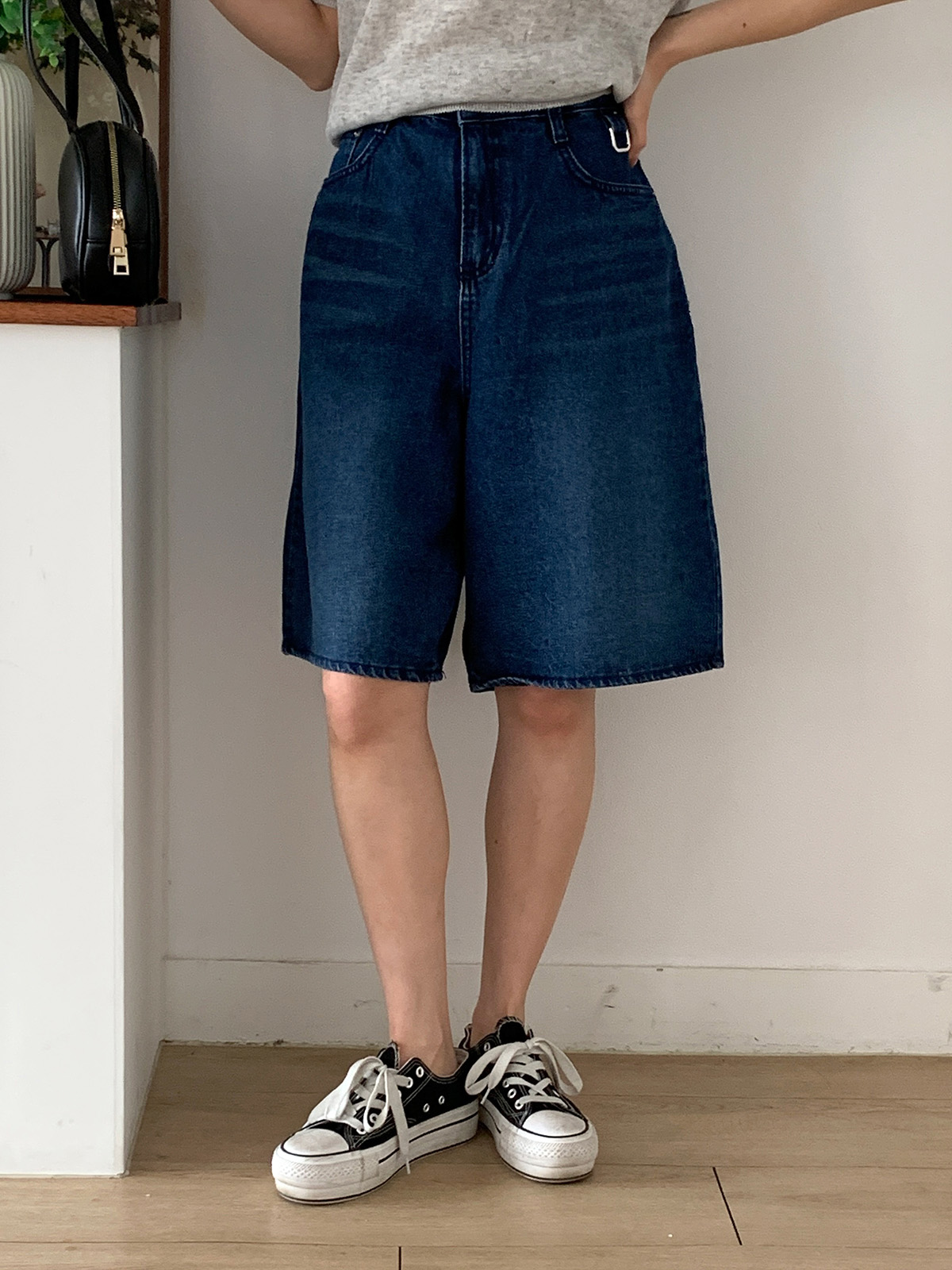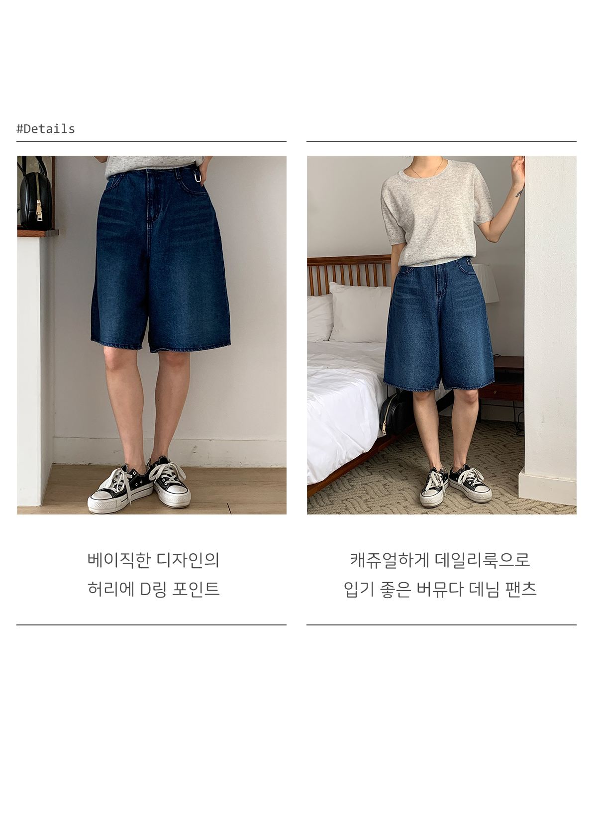 허리에 D링이 들어가있어 포인트가 되며 워싱이 약하게 들어가있어 부담스럽지 않고 캐쥬얼하게 데일리룩으로 입기 좋은 버뮤다 데님 팬츠
