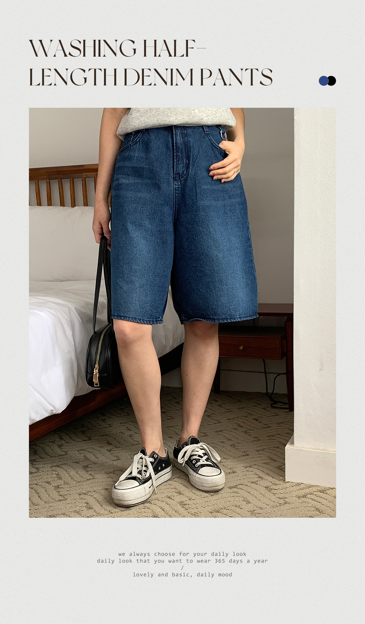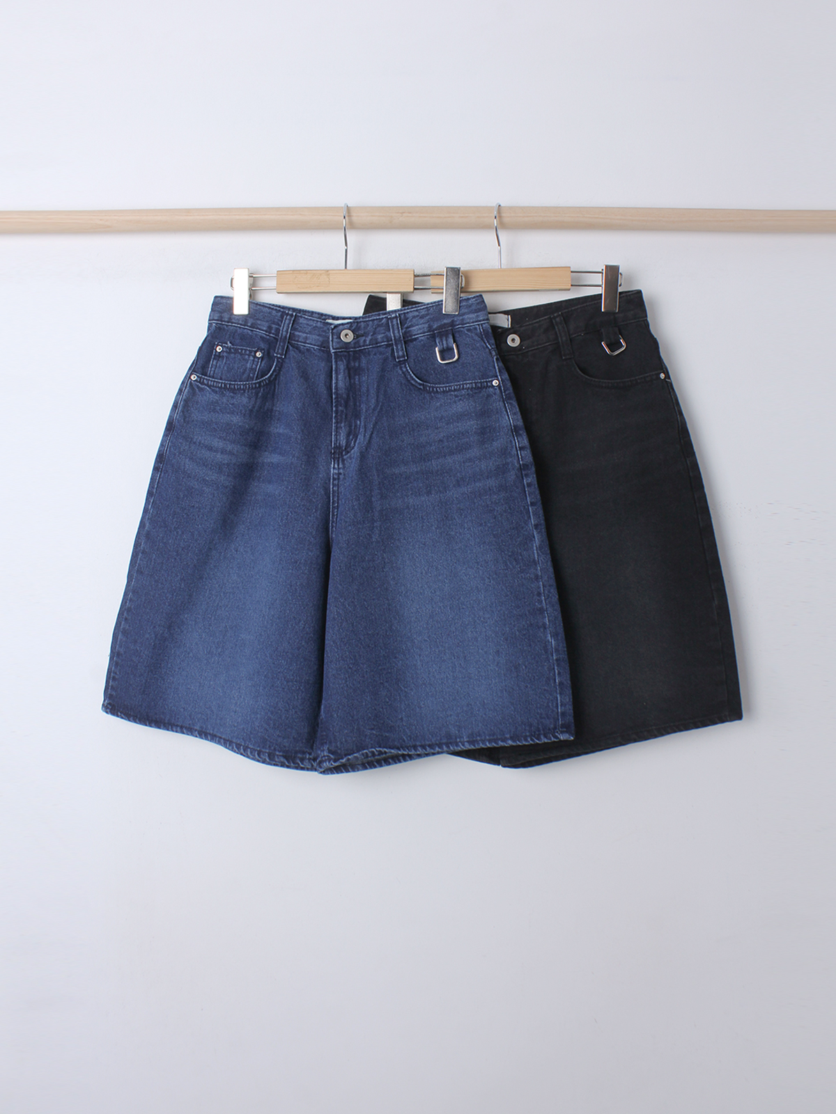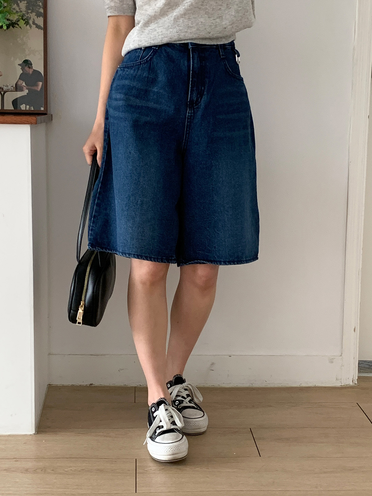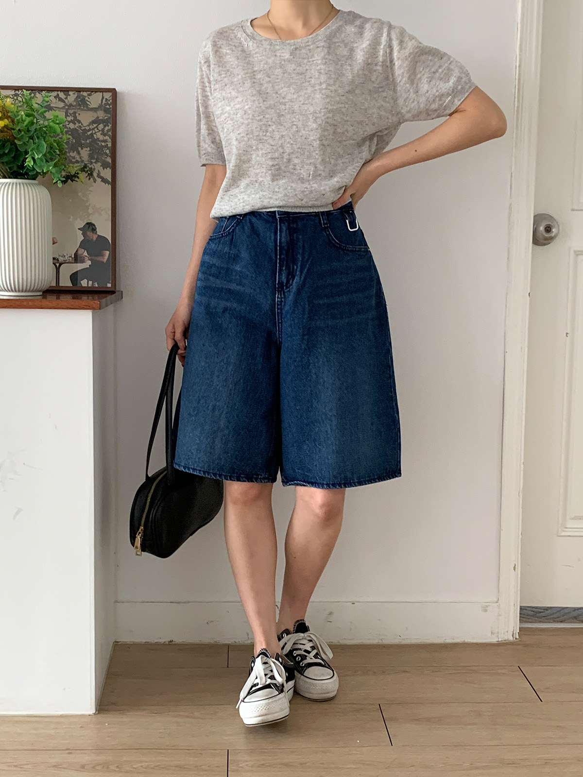 허리에 D링이 들어가있어 포인트가 되며 워싱이 약하게 들어가있어 부담스럽지 않고 캐쥬얼하게 데일리룩으로 입기 좋은 버뮤다 데님 팬츠
