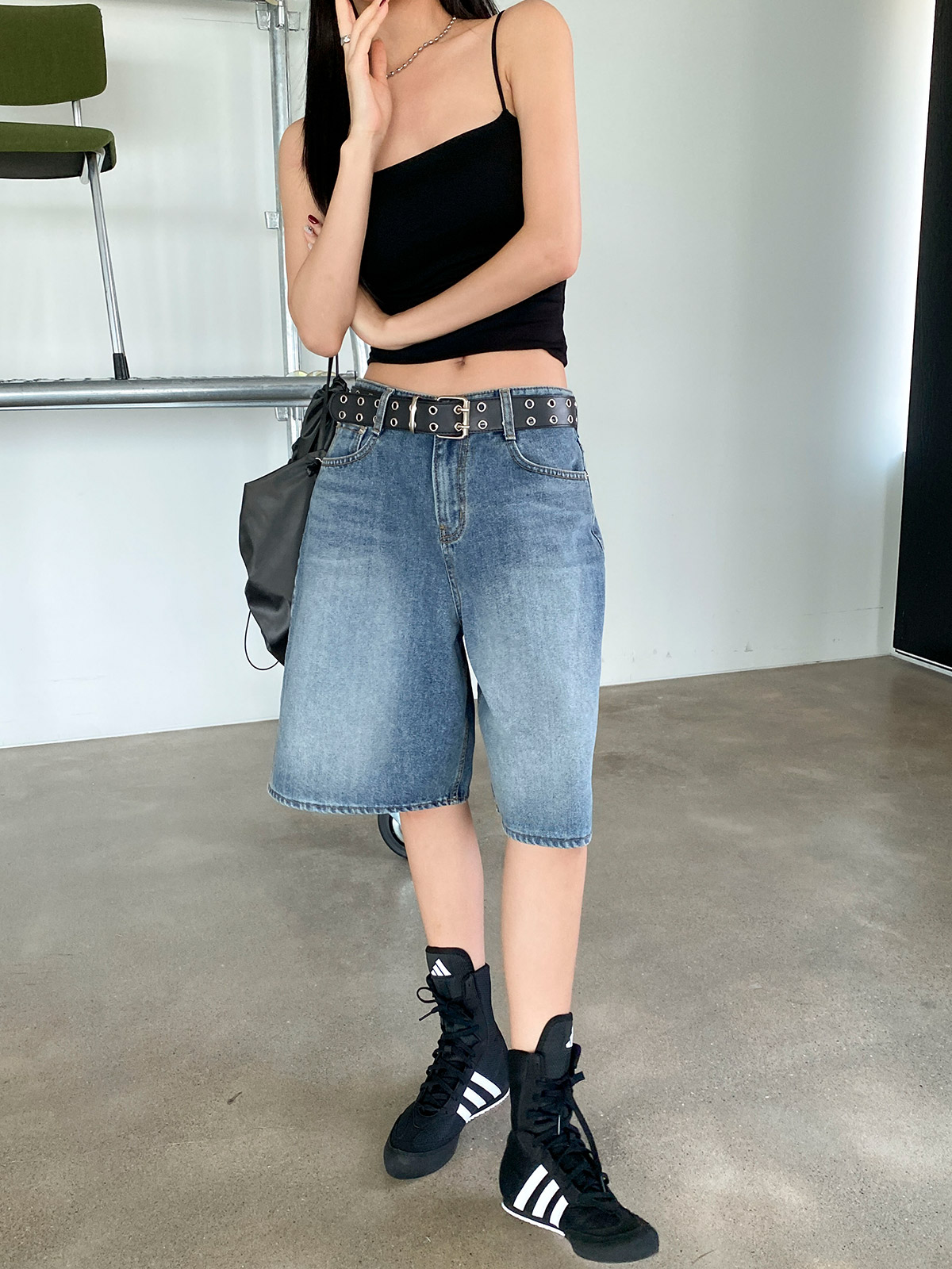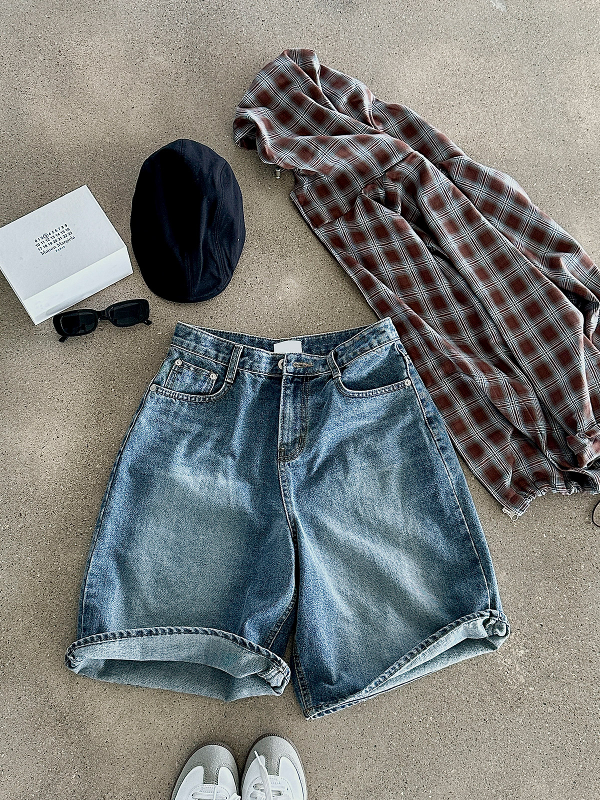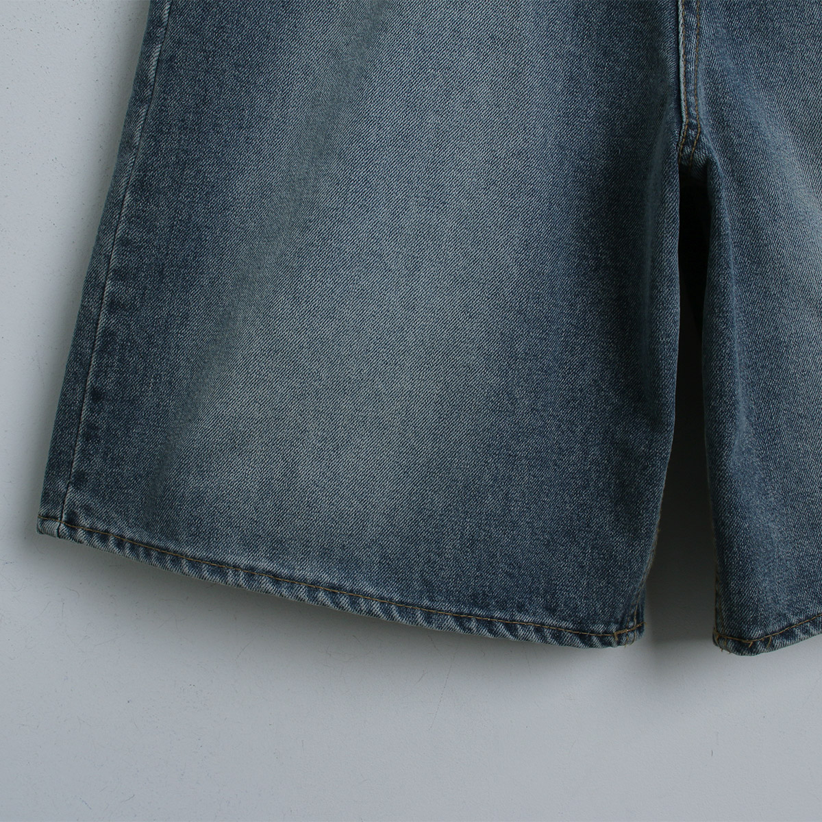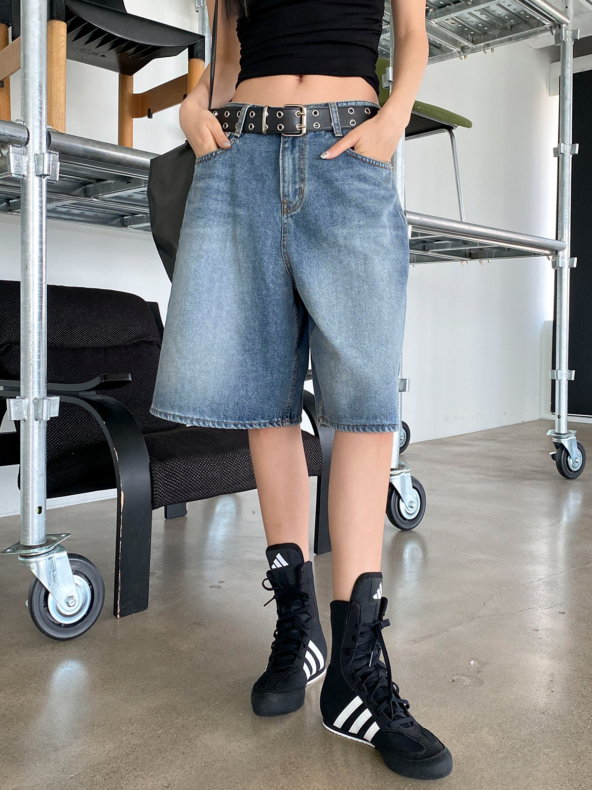워싱이 빈티지하게 들어가있어 멋스러우며 스타일리쉬한 룩을 연출하기에 좋은 5부 데님 팬츠