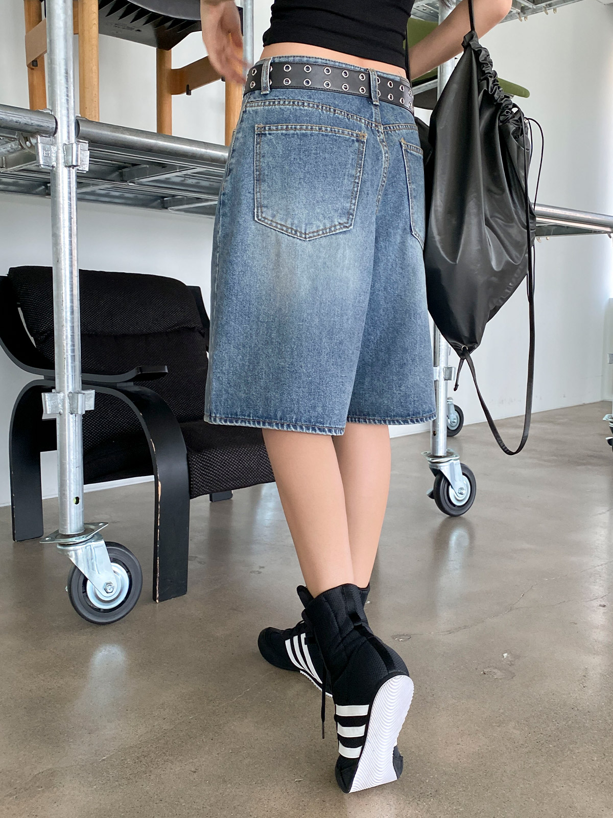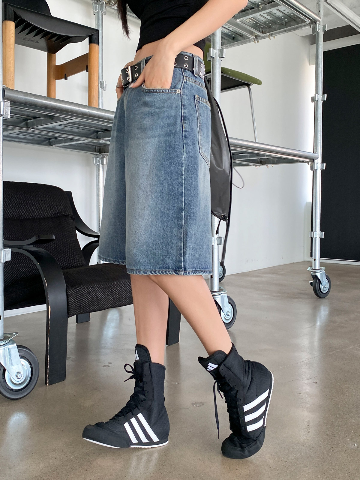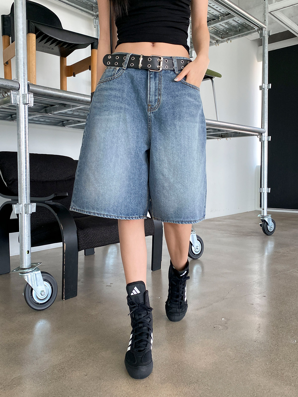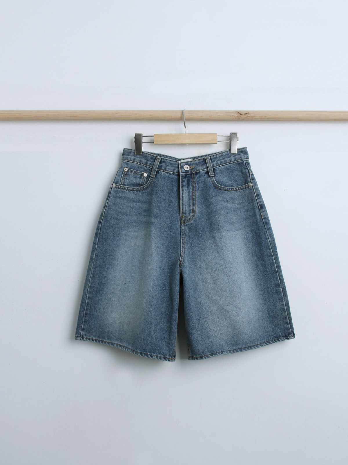 워싱이 빈티지하게 들어가있어 멋스러우며 스타일리쉬한 룩을 연출하기에 좋은 5부 데님 팬츠
