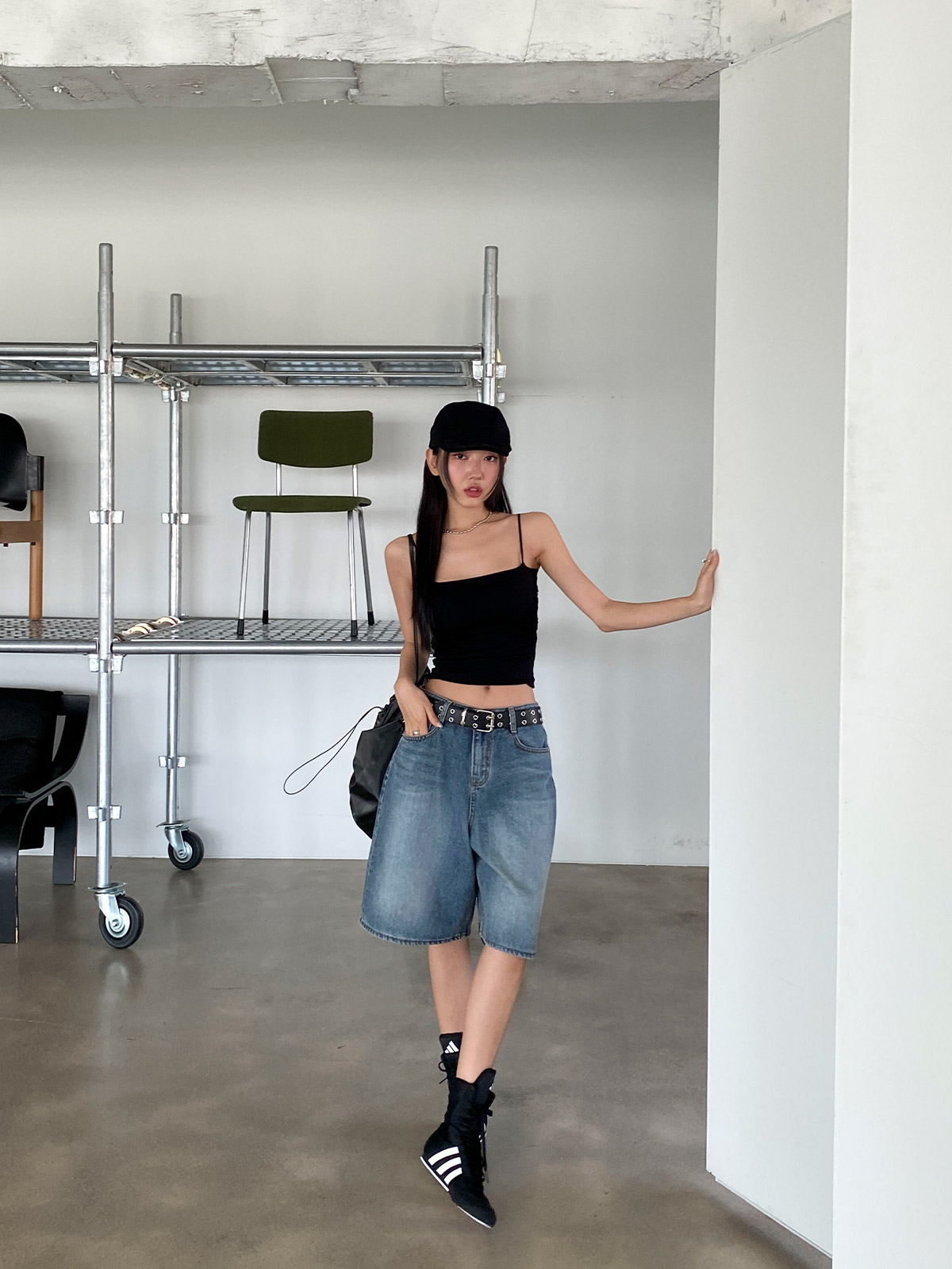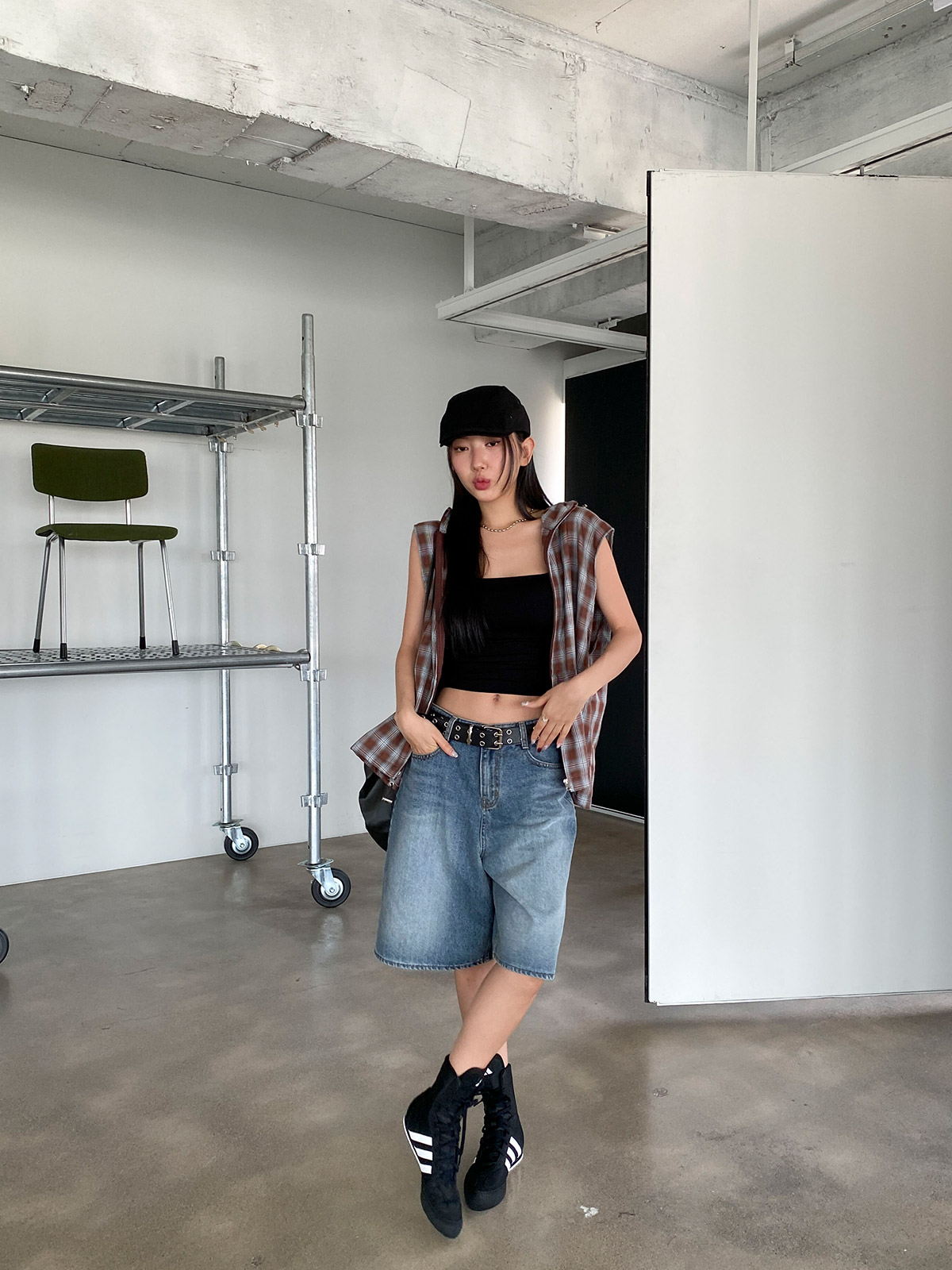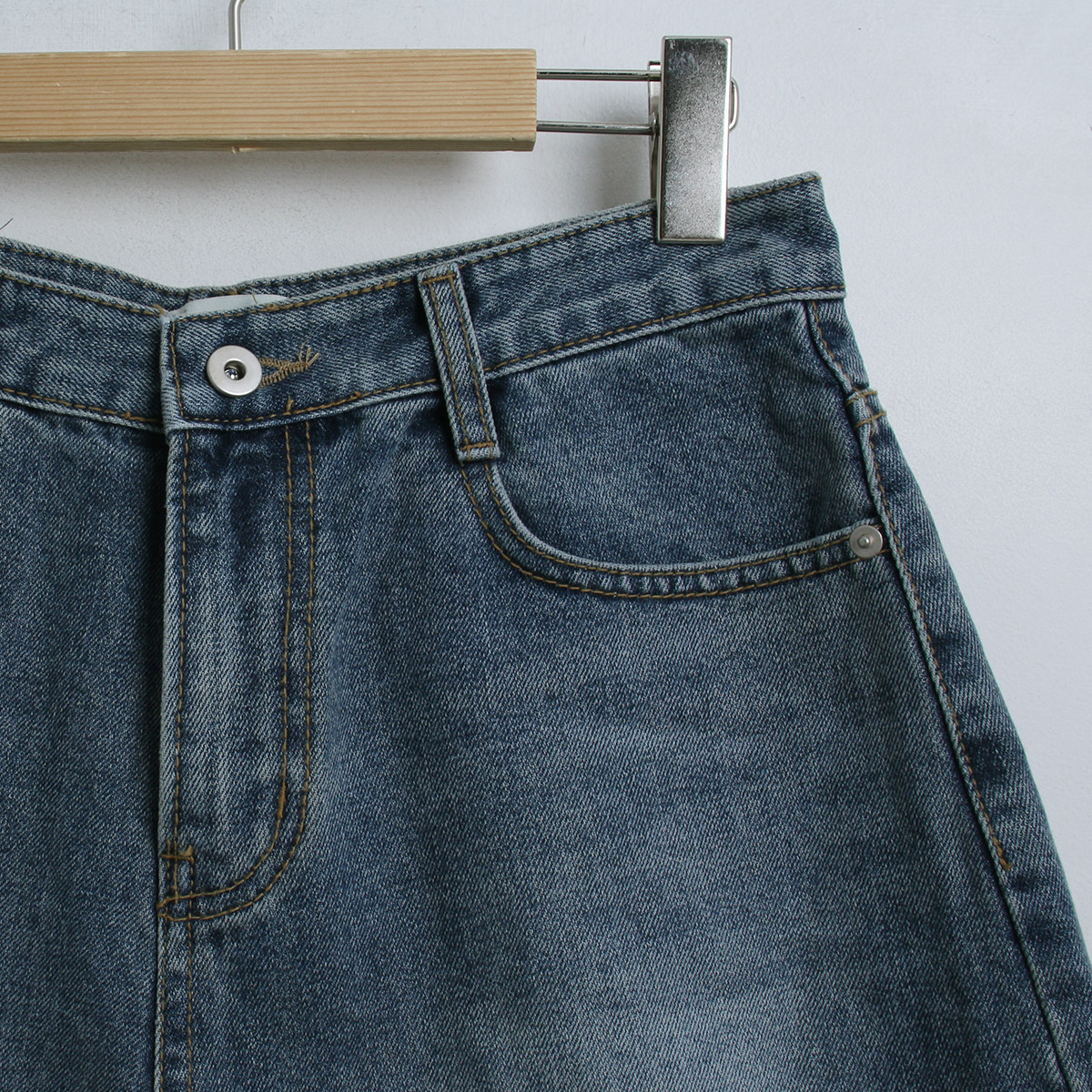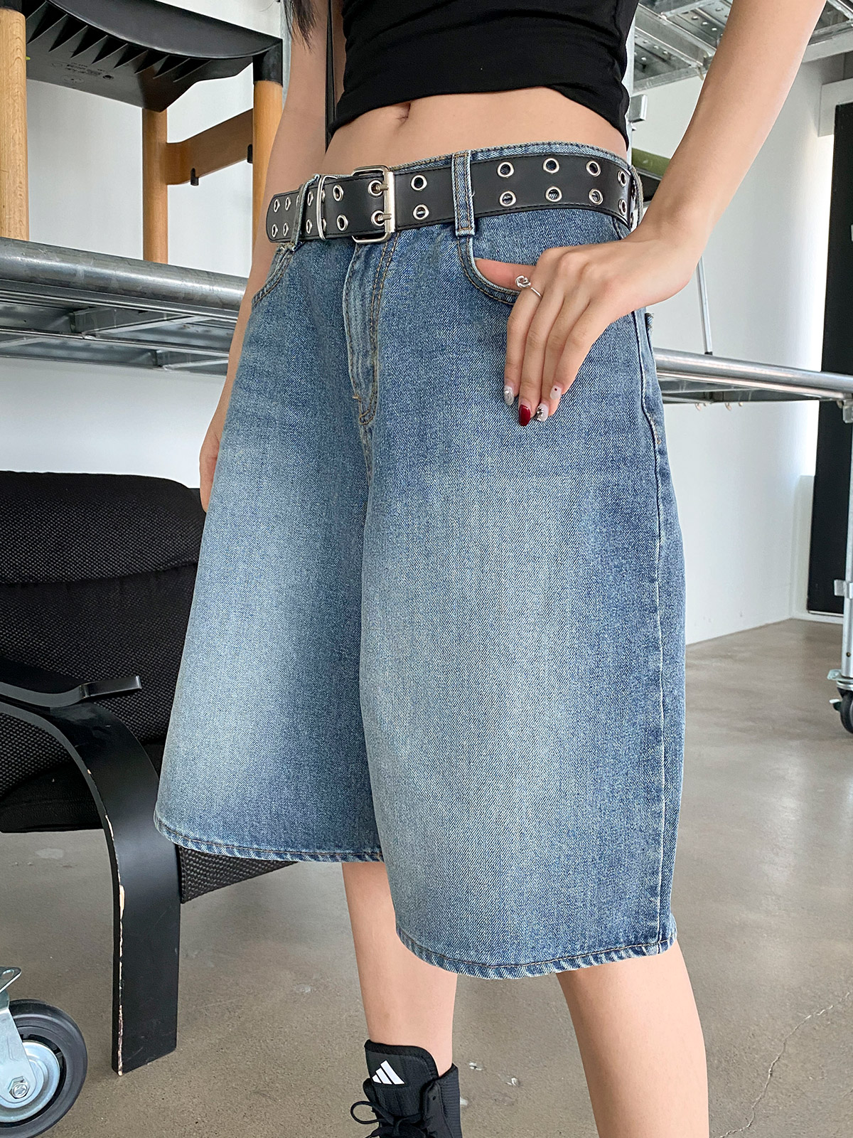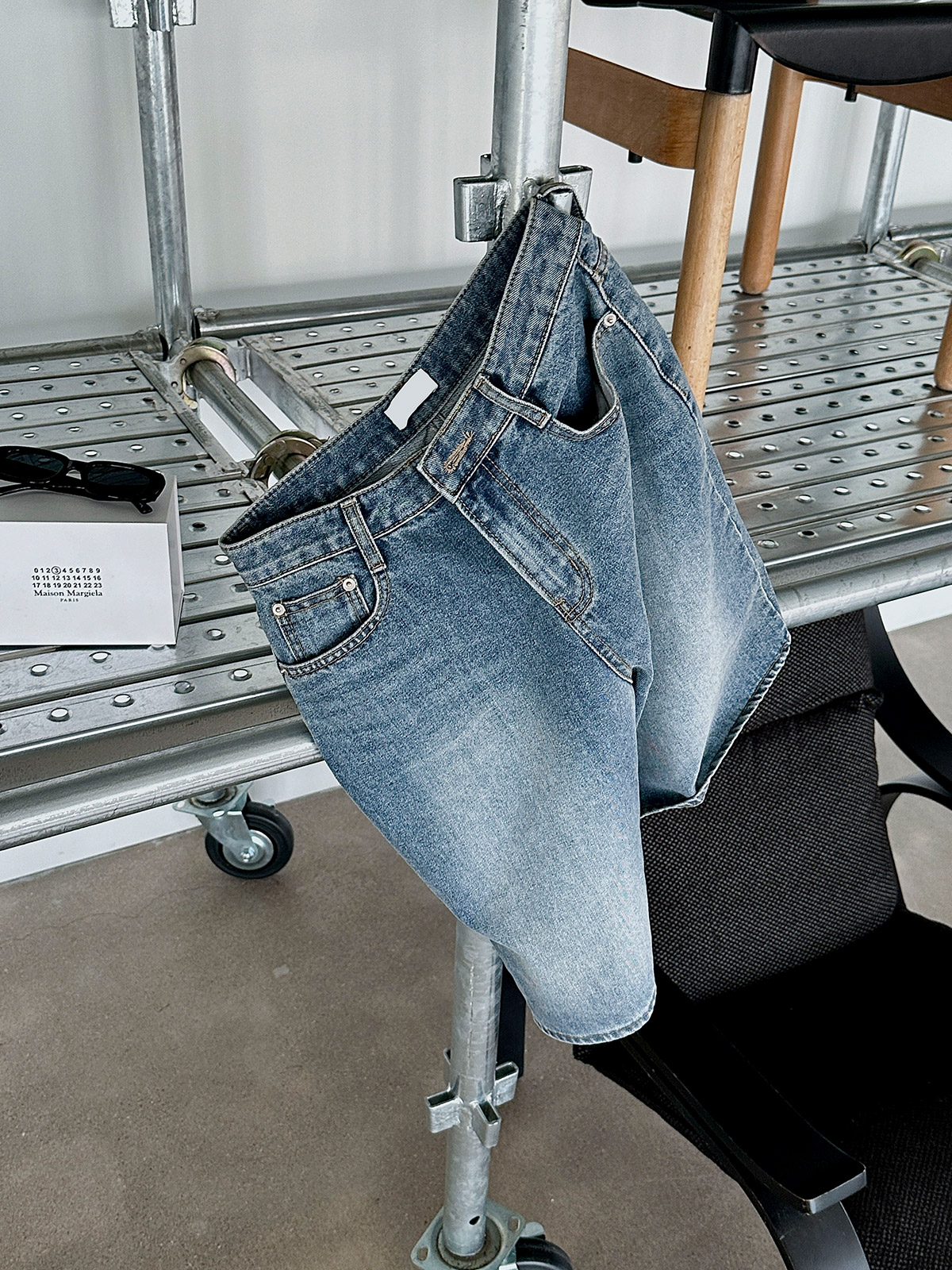 워싱이 빈티지하게 들어가있어 멋스러우며 스타일리쉬한 룩을 연출하기에 좋은 5부 데님 팬츠