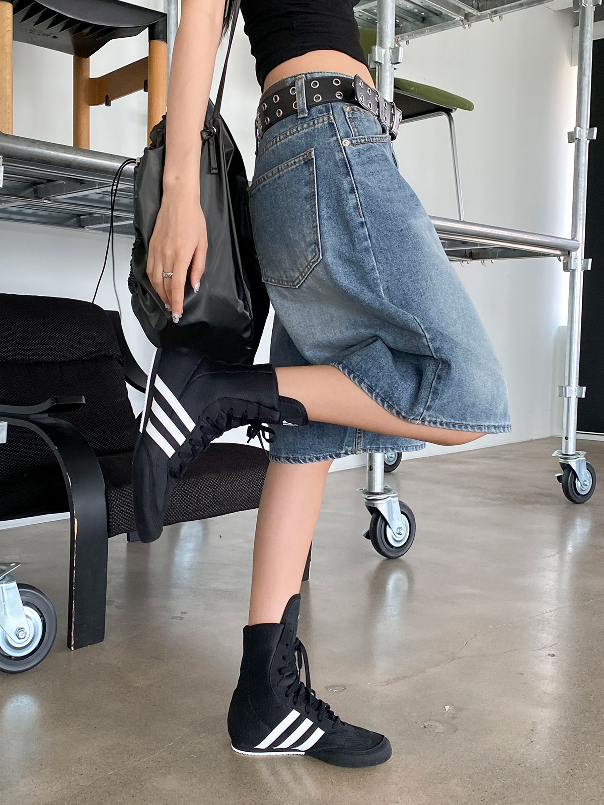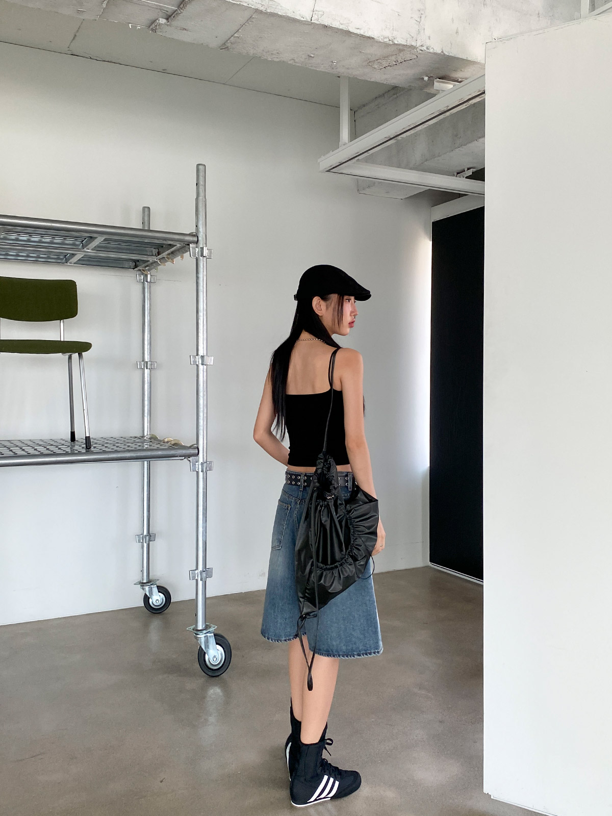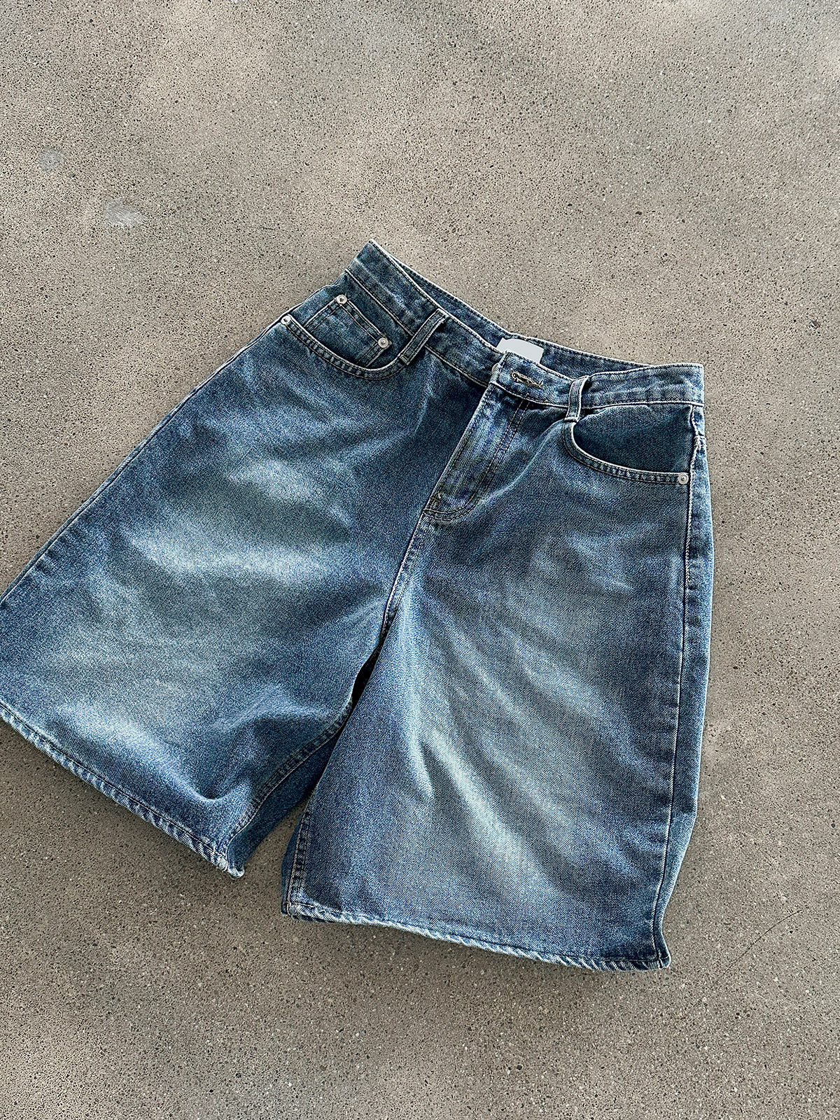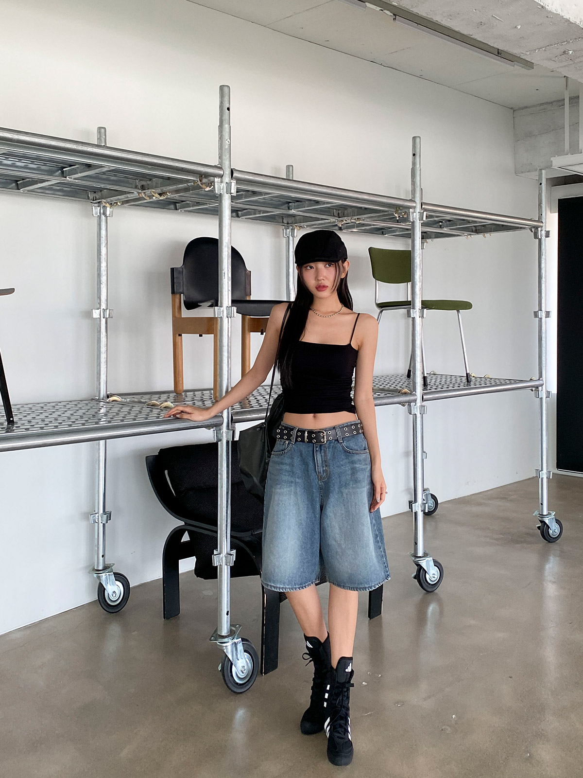 워싱이 빈티지하게 들어가있어 멋스러우며 스타일리쉬한 룩을 연출하기에 좋은 5부 데님 팬츠