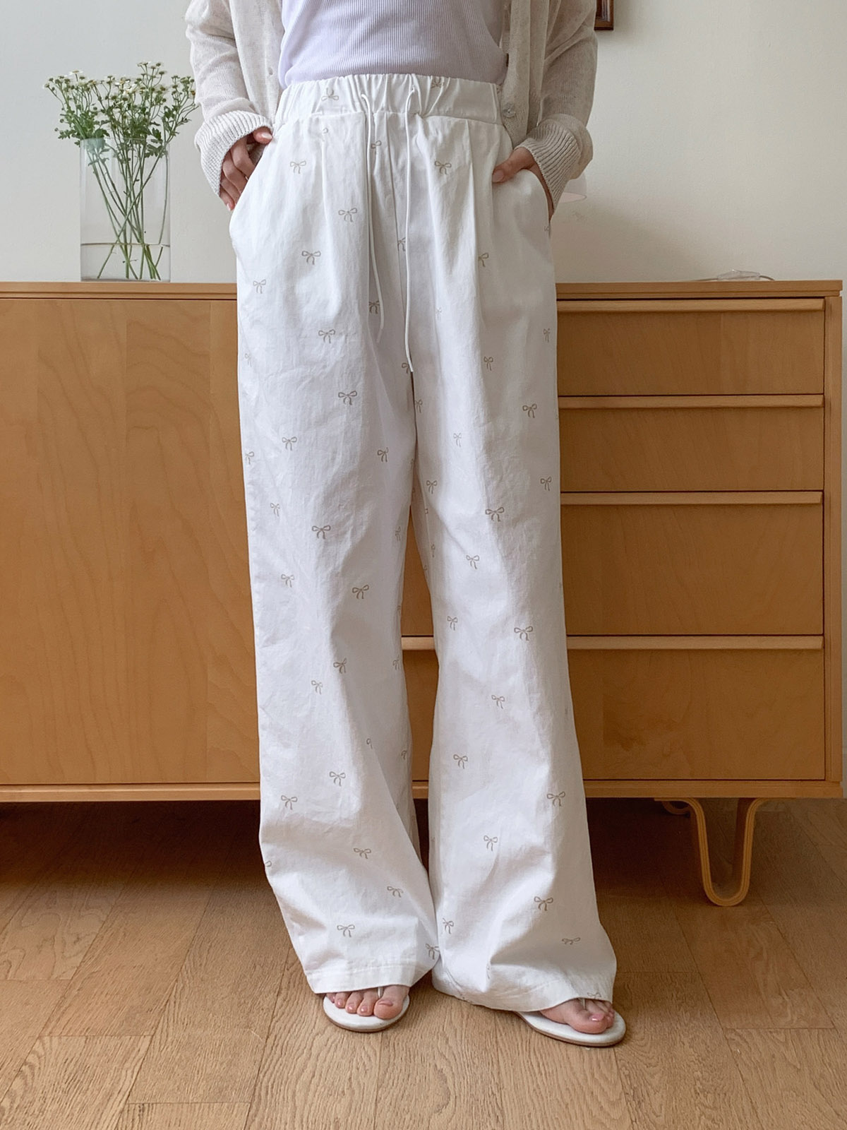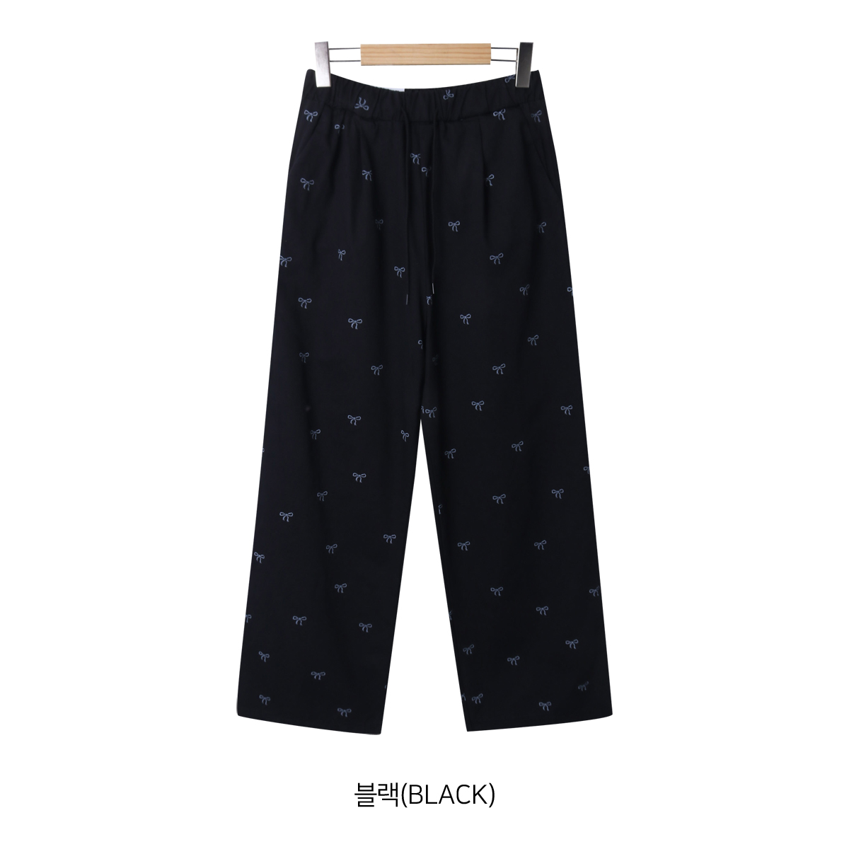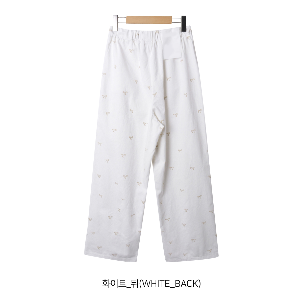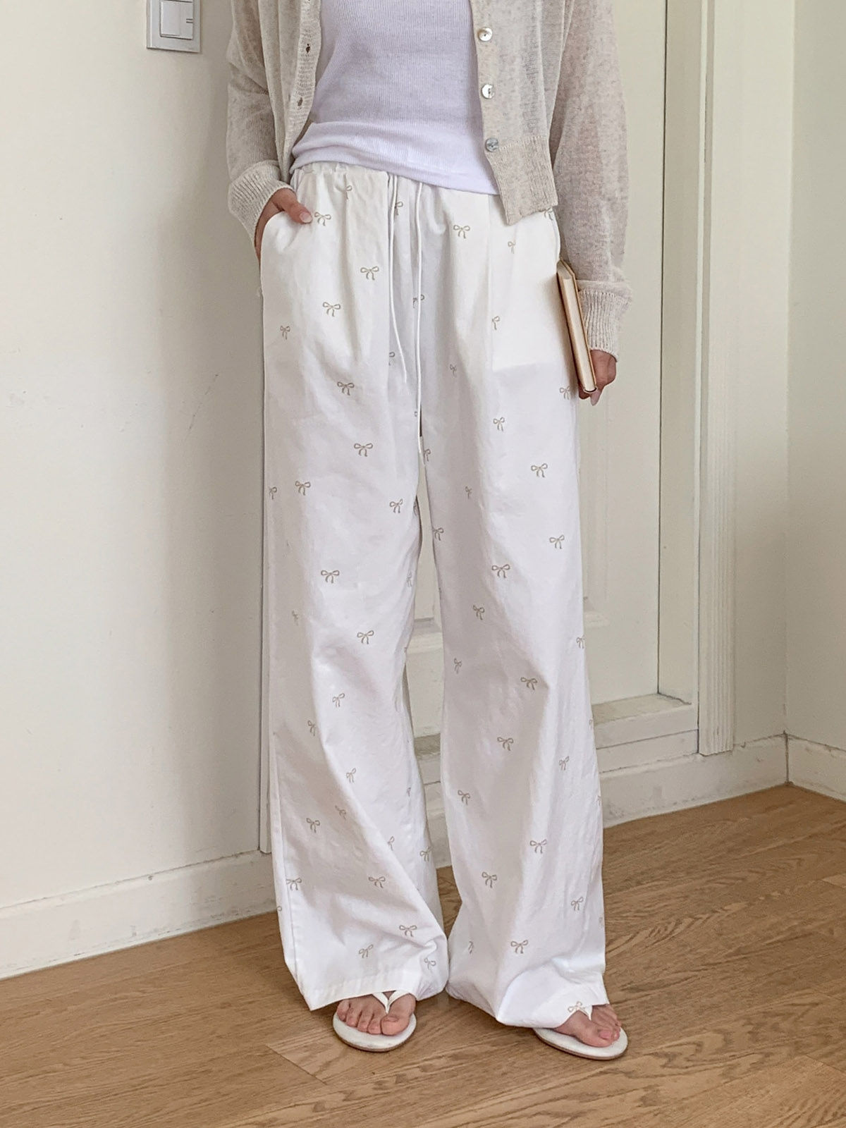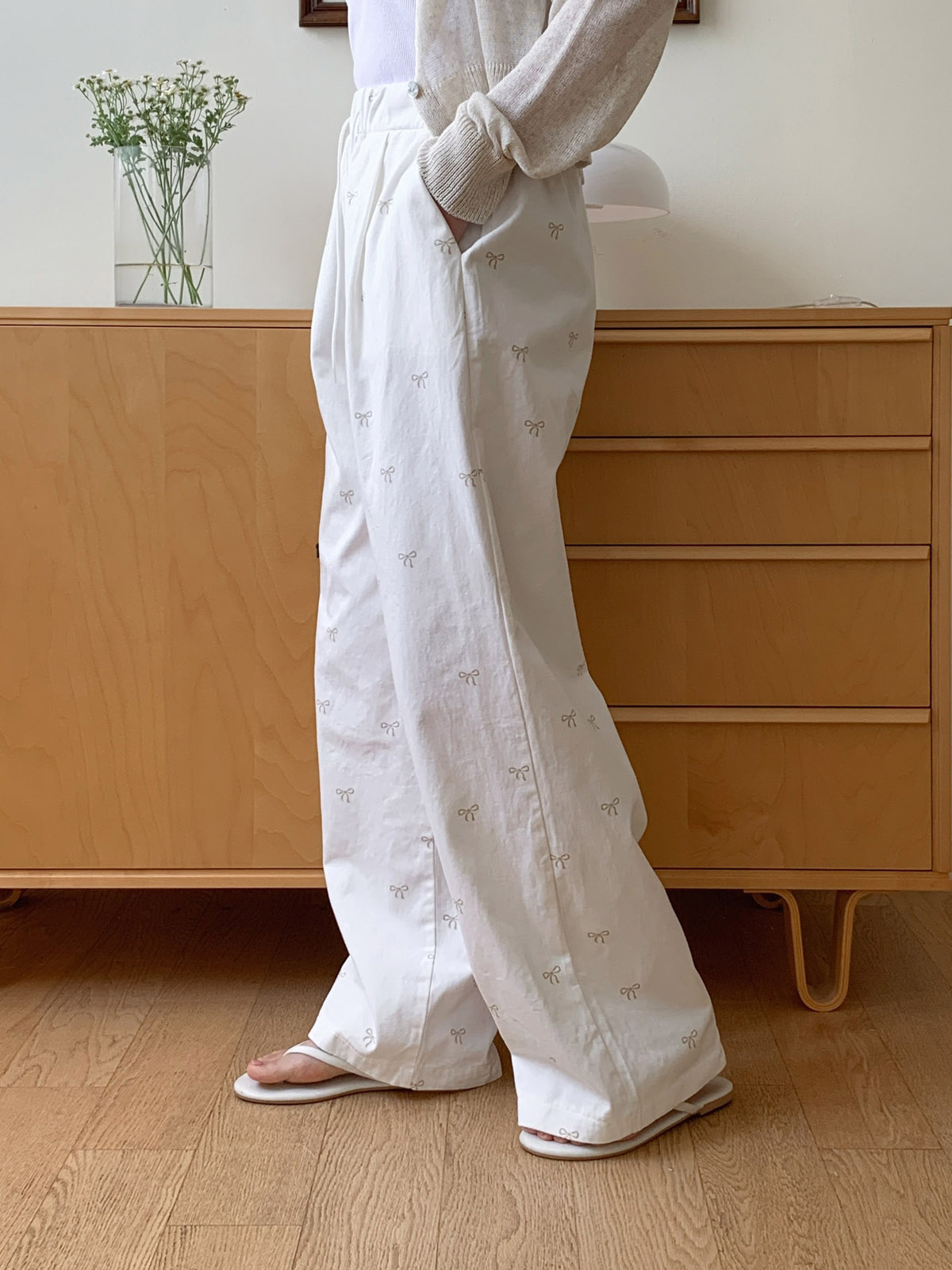 리본 패턴 프린팅이 디자인된 일자 와이드핏 팬츠
