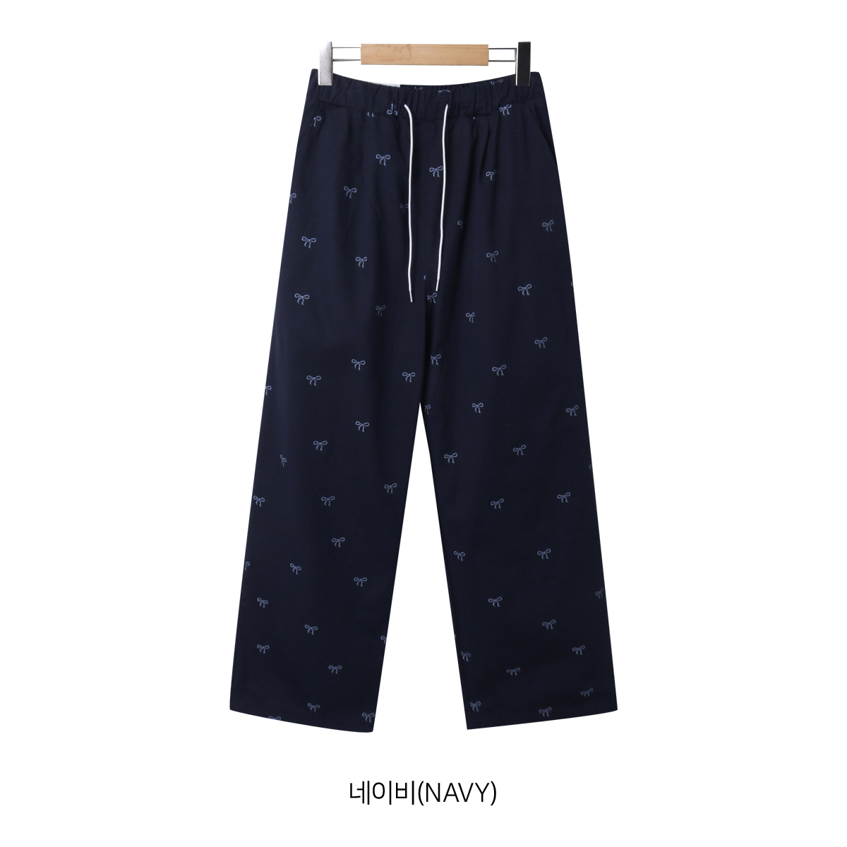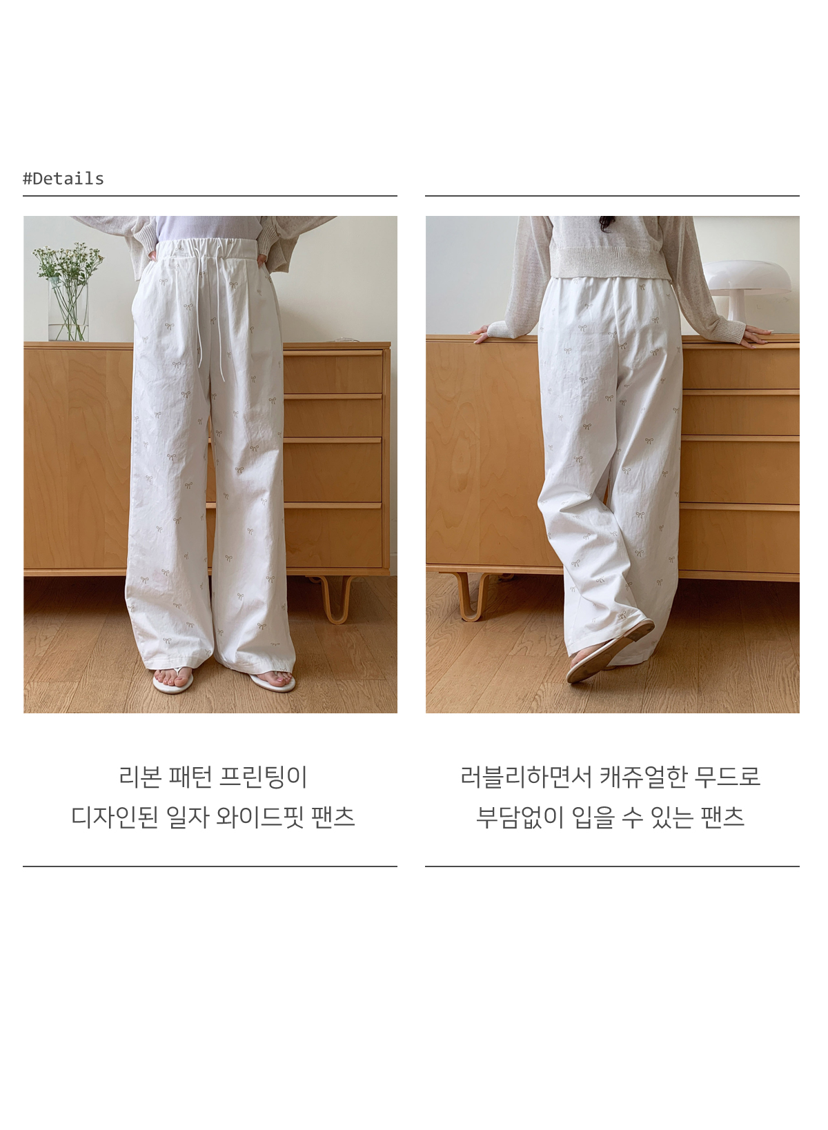 리본 패턴 프린팅이 디자인된 일자 와이드핏 팬츠에요!