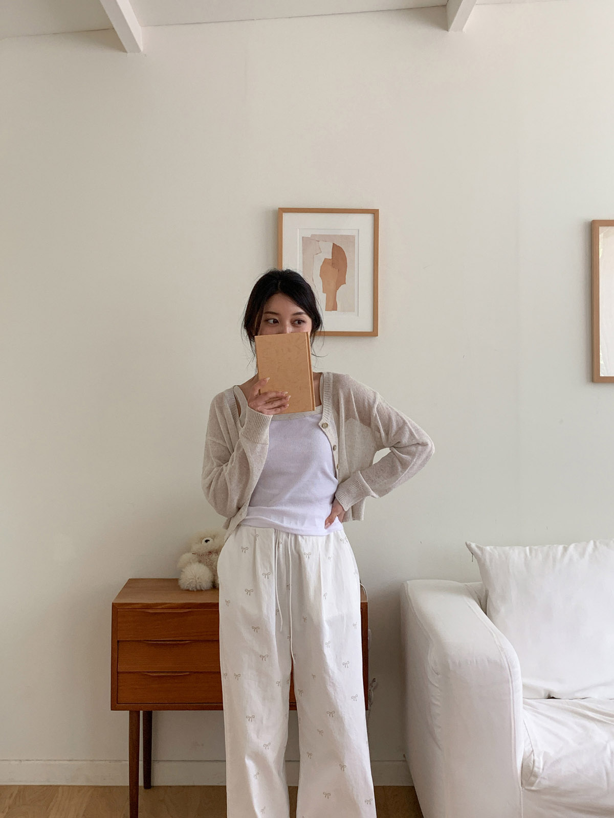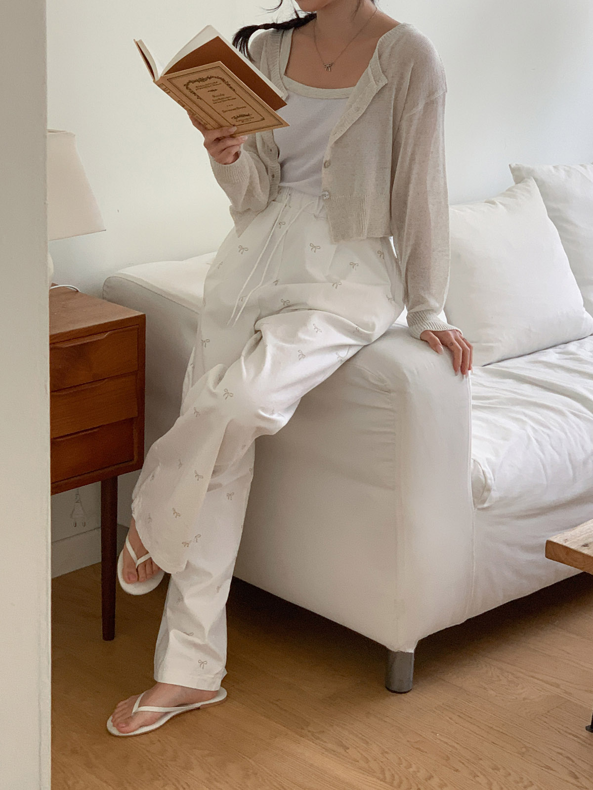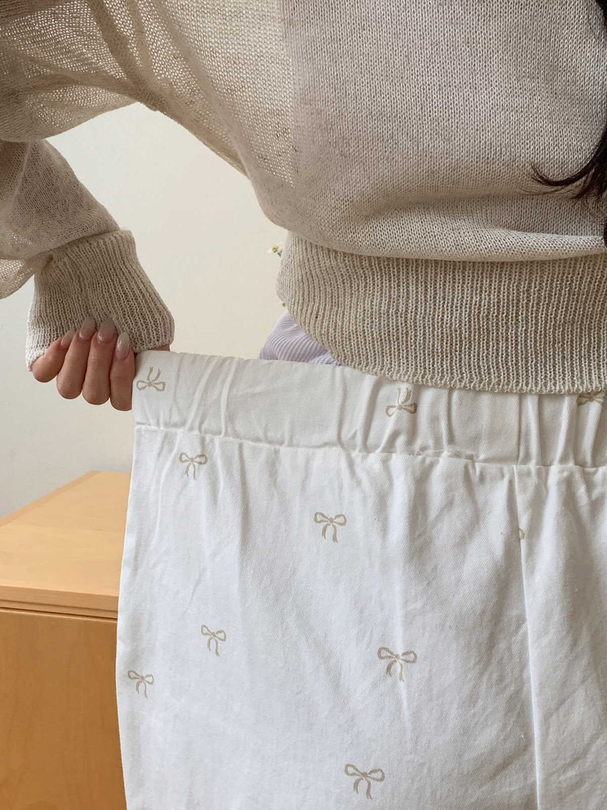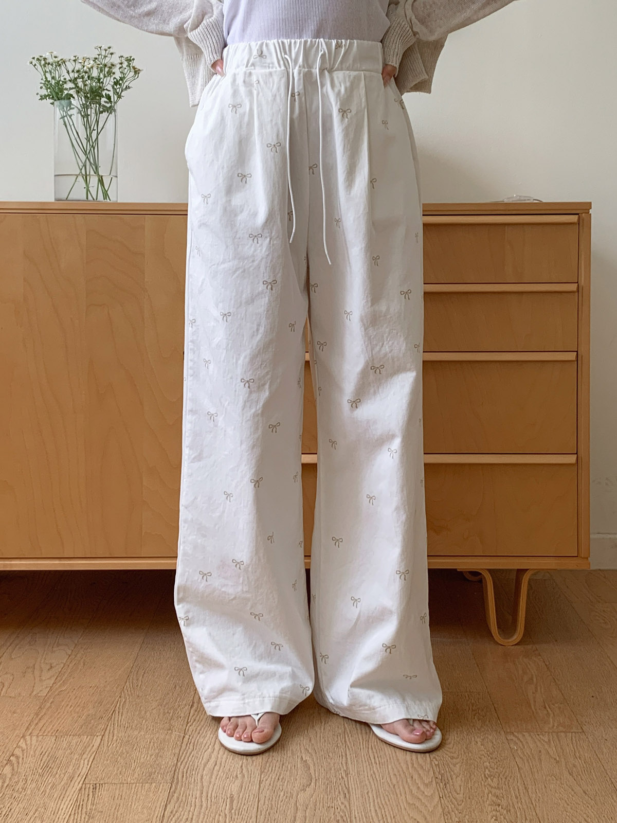 #바지#팬츠#밴딩바지#밴딩팬츠#편한바지#편한팬츠#데일리바지#데일리팬츠#여자바지#여성바지#여자팬츠#여성팬츠#리본패턴프린팅일자와이드핏팬츠#유니크패턴프린팅팬츠#리본패턴팬츠#대학생룩#캠퍼스룩#새내기룩#캠퍼스꾸안꾸룩#새내기꾸안꾸룩