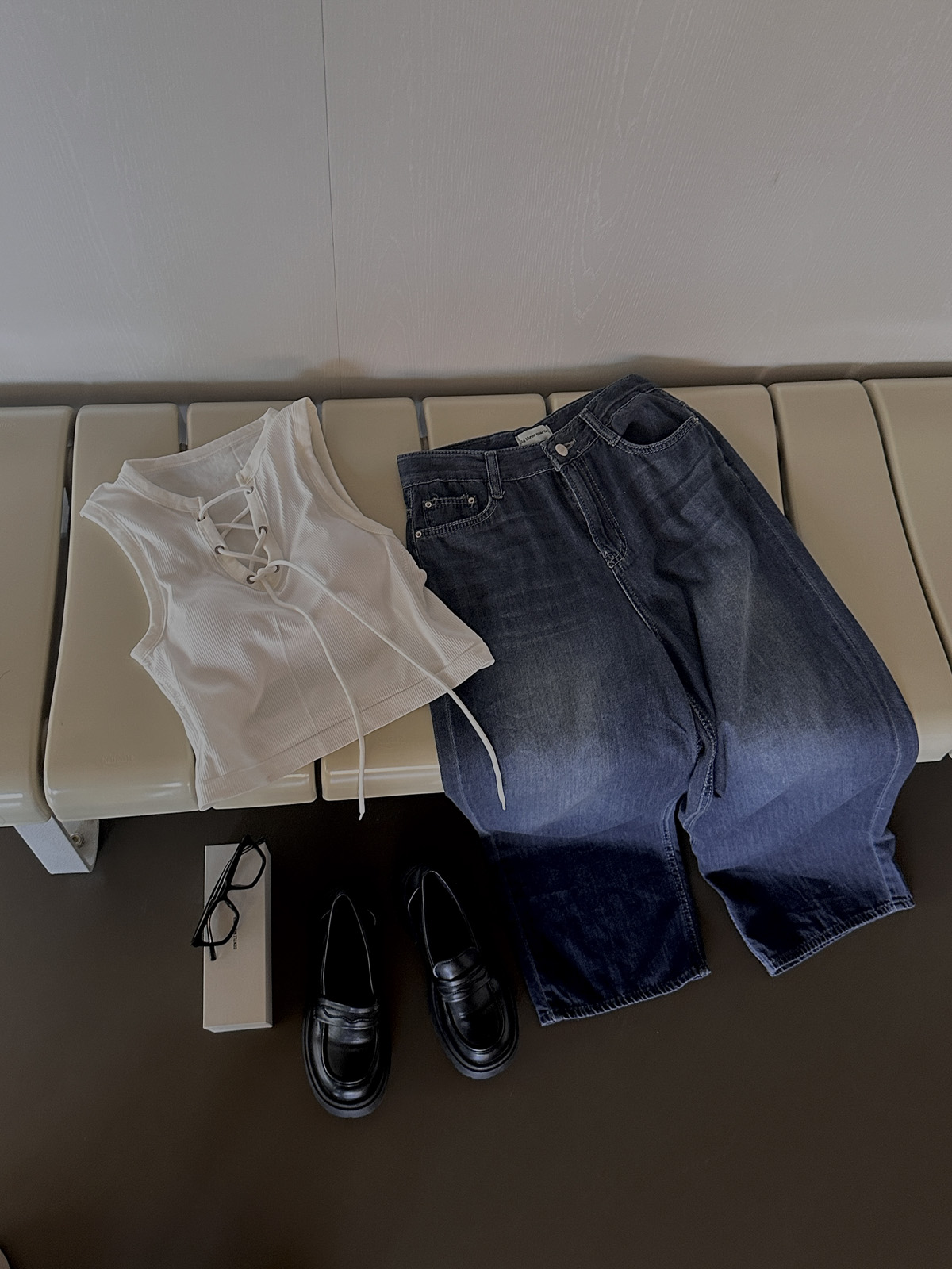 적당히 와이드한 핏감으로 스타일리쉬하게 연출하기 좋은 썸머 데님 팬츠 추천해드려요~!