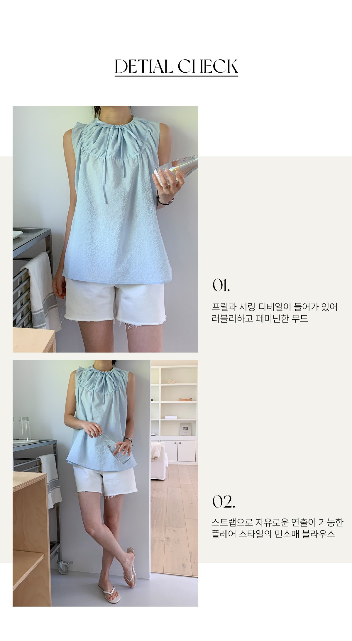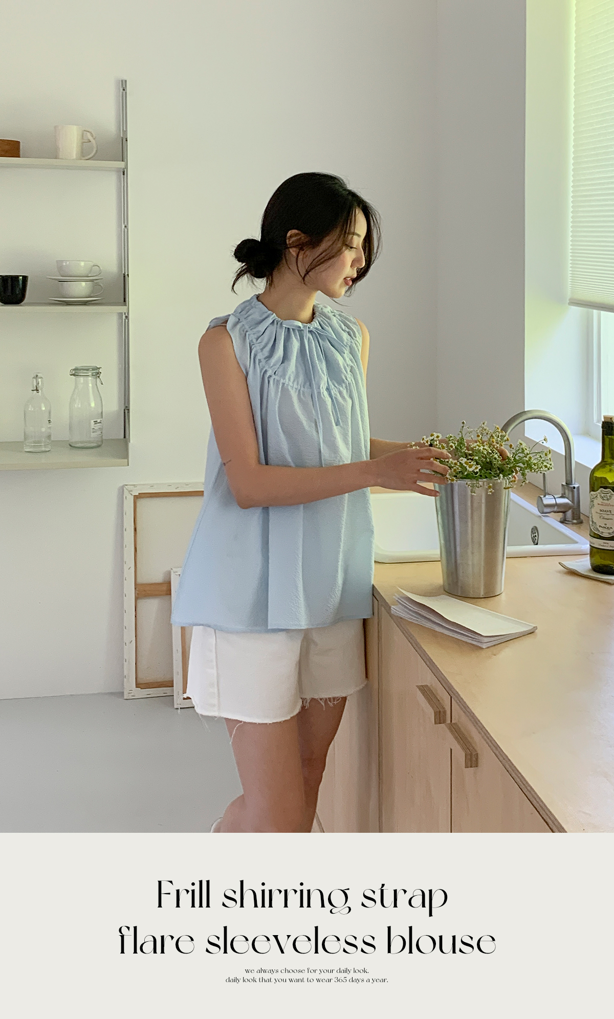 스트랩으로 자유로운 연출이 가능한 플레어 스타일의 민소매 블라우스 추천 해드려요~!