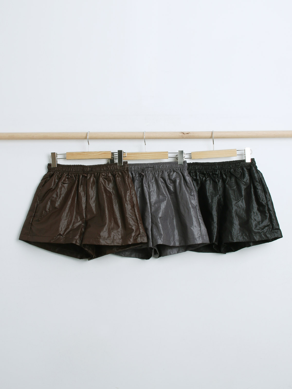 코팅이 더해진 나일론 원단으로 유니크한 무드의 숏팬츠에요!