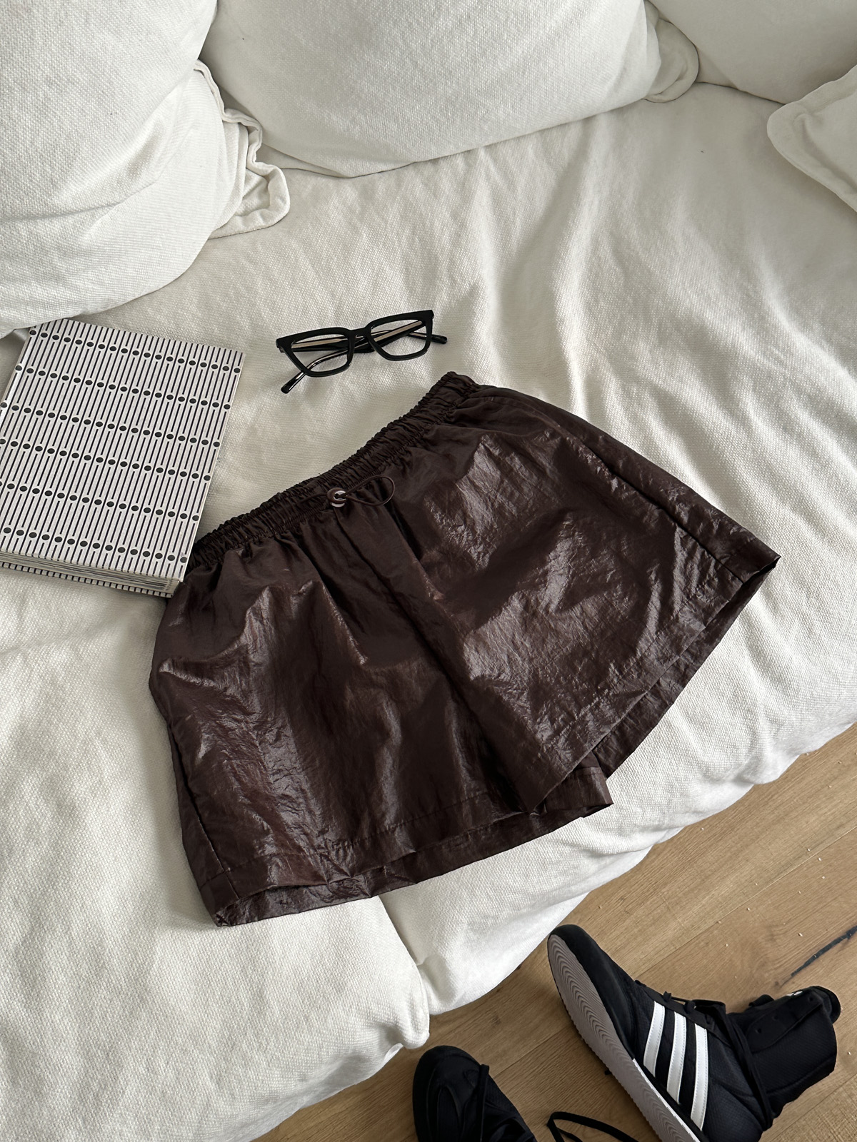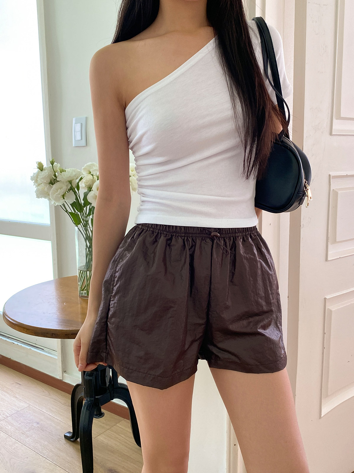 코팅이 더해진 나일론 원단으로 유니크한 무드의 숏팬츠