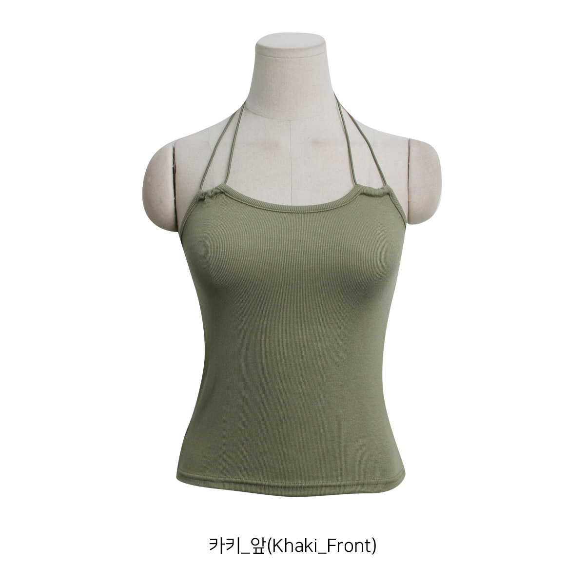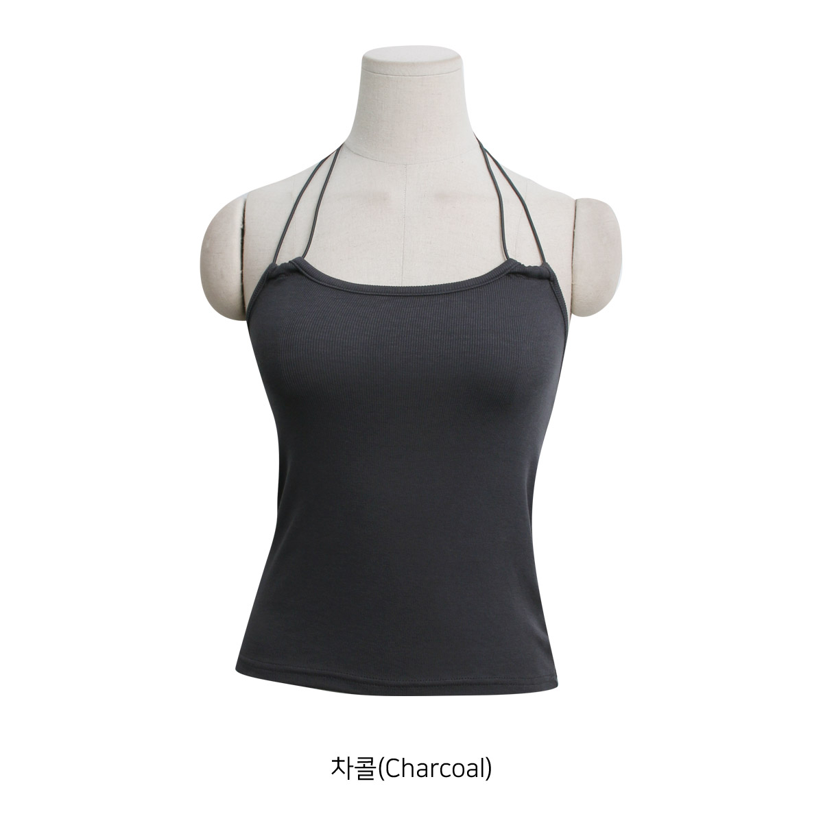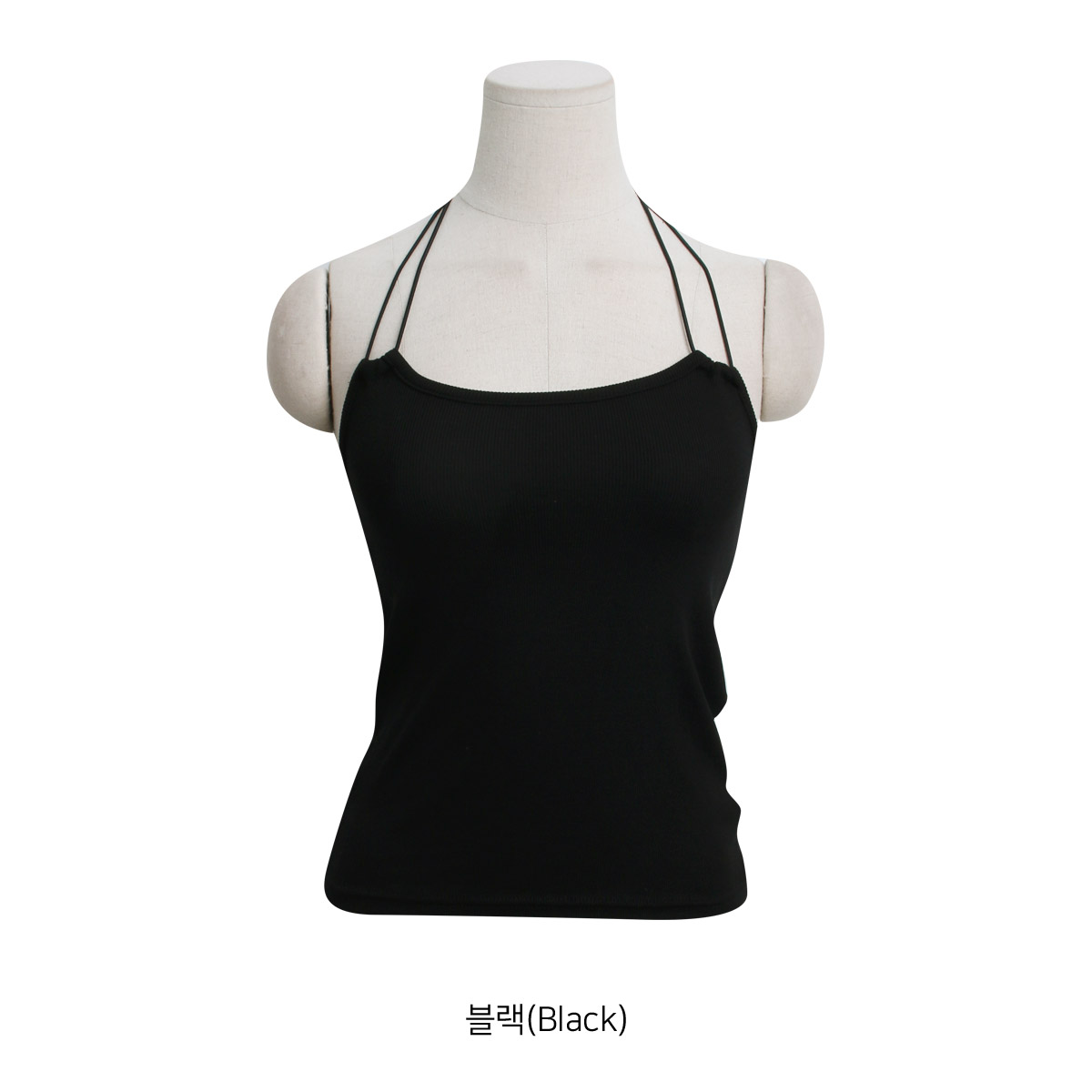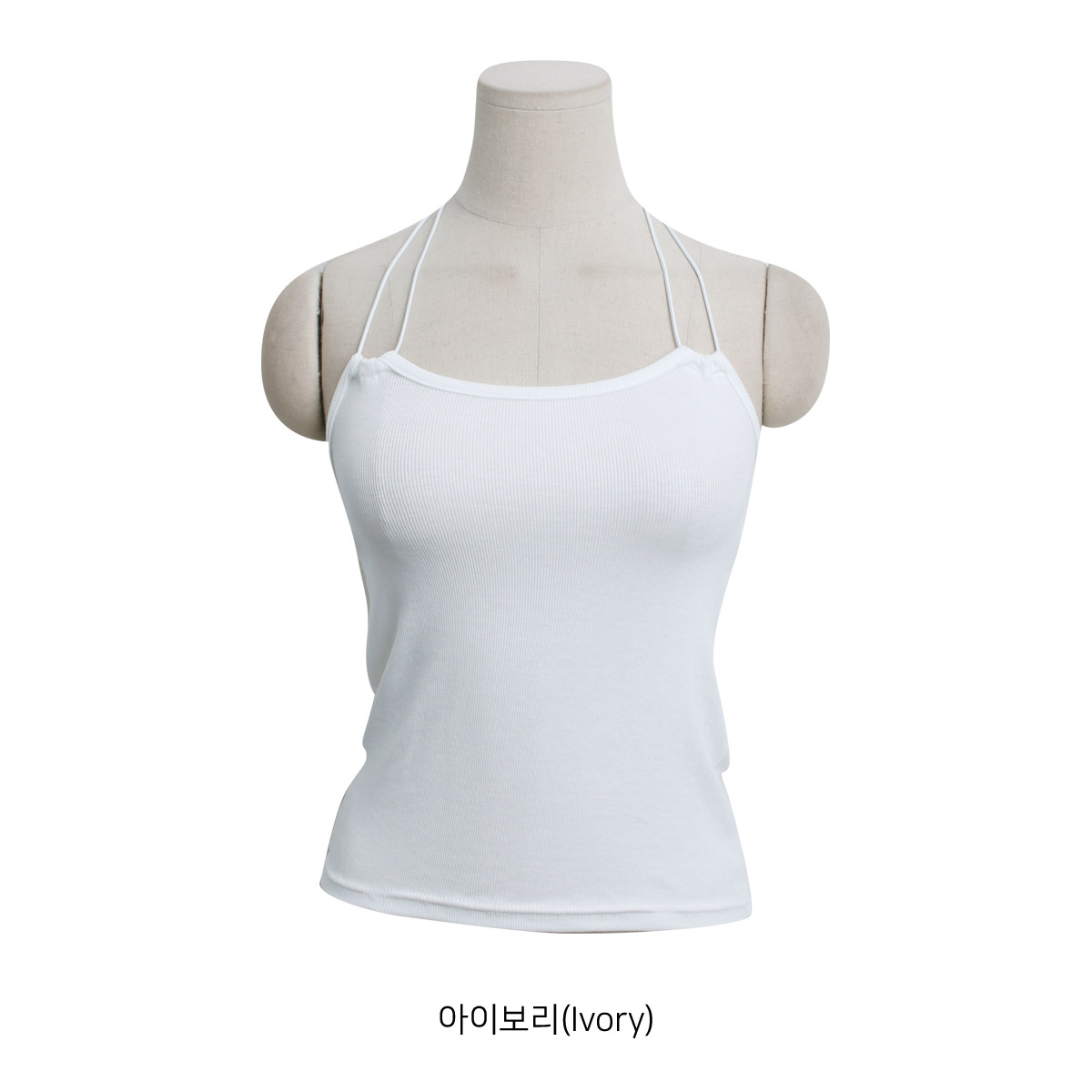 유니크한 더블 스트링 스트랩으로 디자인된 홀터넥 민소매 티셔츠