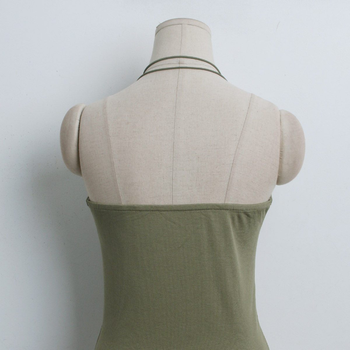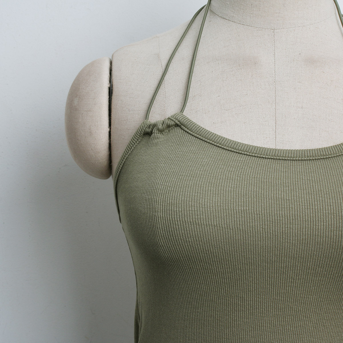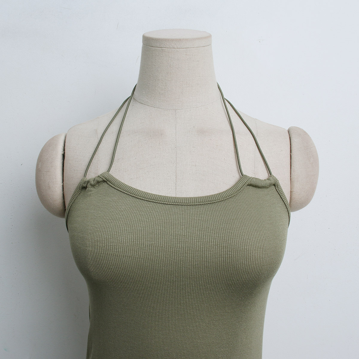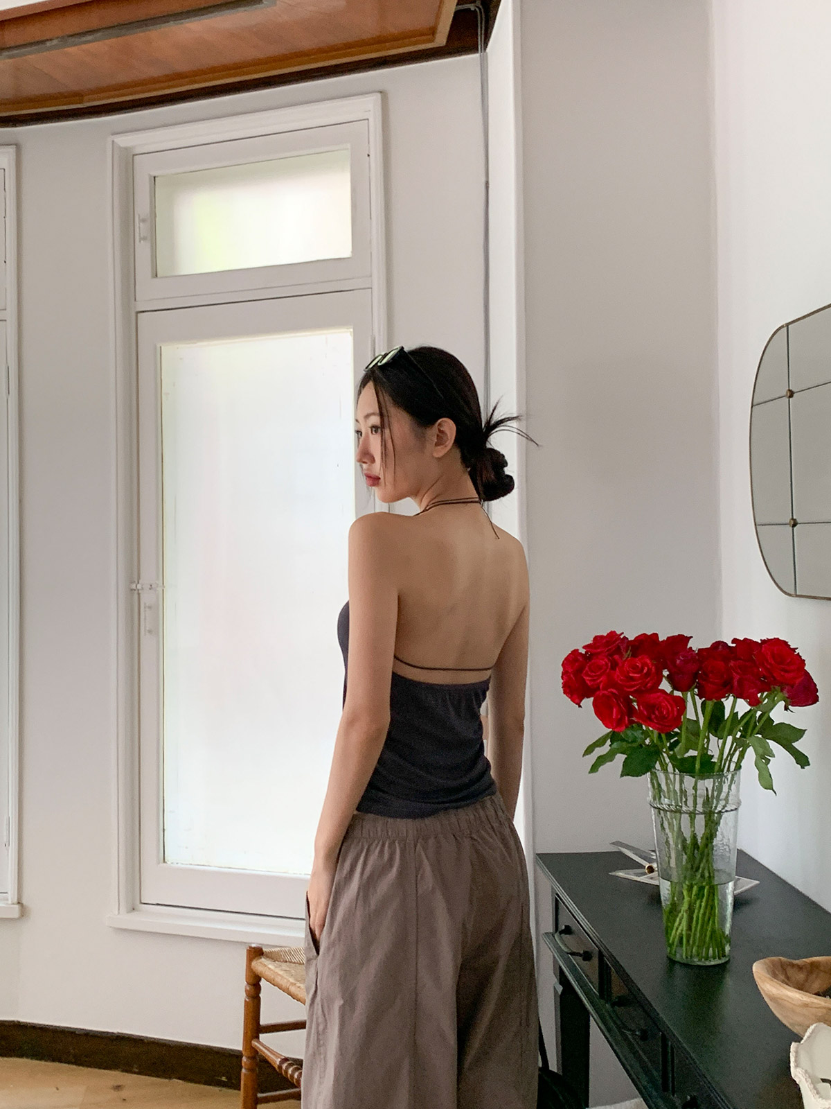 유니크한 더블 스트링 스트랩으로 디자인된 홀터넥 민소매 티셔츠