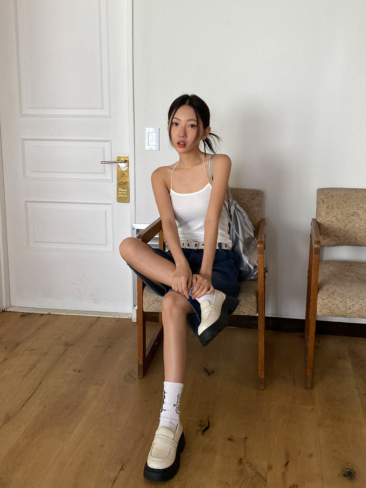 #티셔츠#민소매티셔츠#민소매#여성민소매#데일리티셔츠#데일리코디#데일리룩#캐쥬얼#데일리#더블스트링스트랩홀터나시#민소매홀터나시#대학생룩#캠퍼스를#새내기룩#캠퍼스꾸안꾸룩#새내기꾸안꾸룩