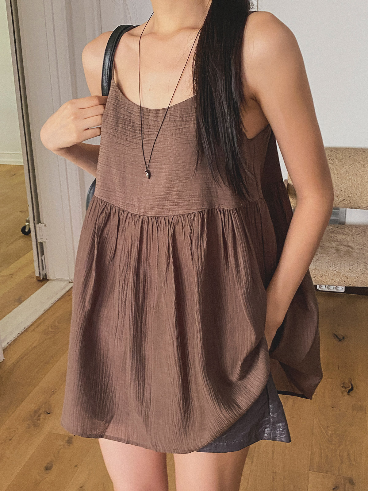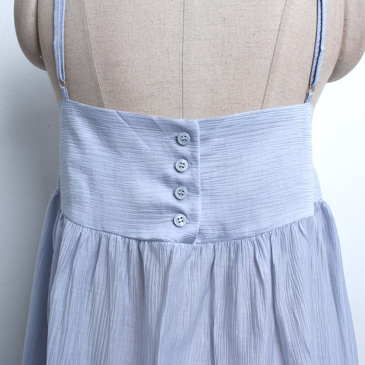 주름 플레어 스타일로 페미닌하고 뒷버튼이 포인트가 있어 밋밋하지 않은