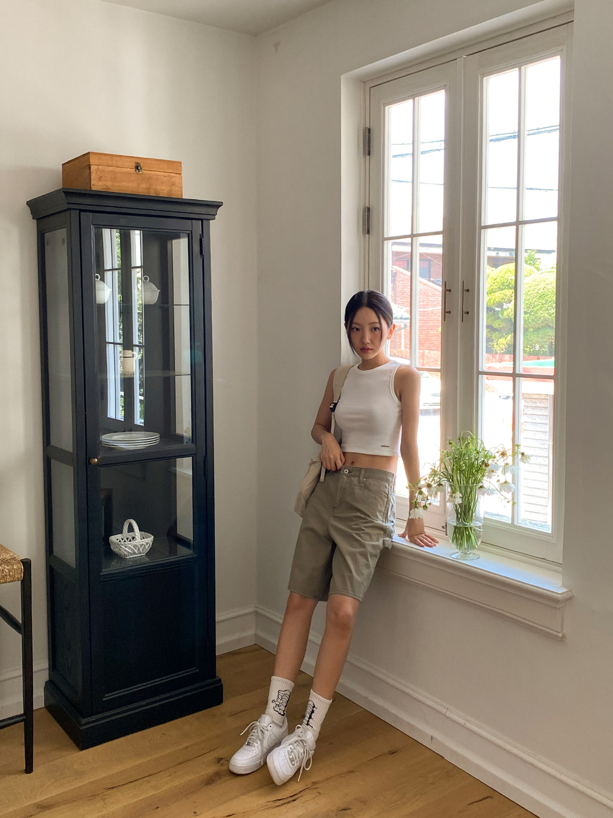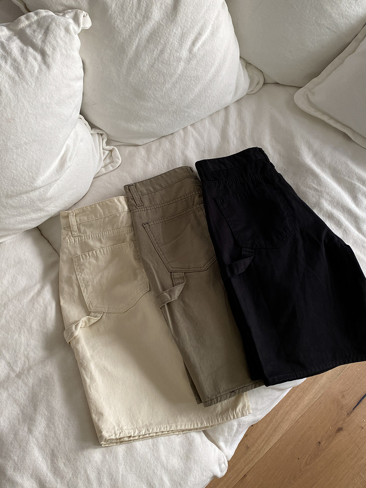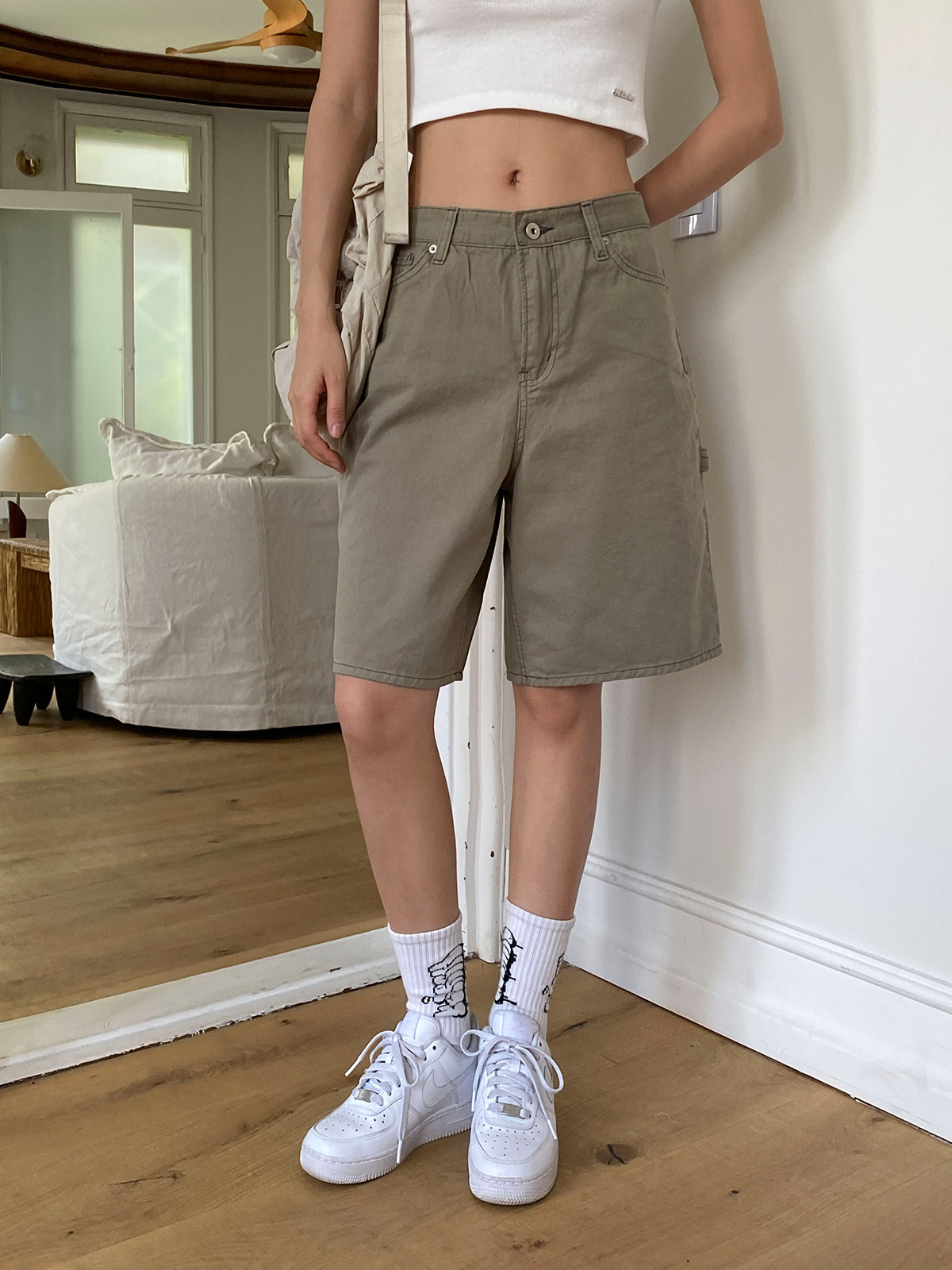 포켓이 있는 디자인으로 실용적이고 이번 여름 가장 핫한 아이템인 빈티지한 무드의 버뮤다 스타일로 소장 가치가 높은 코튼 팬츠