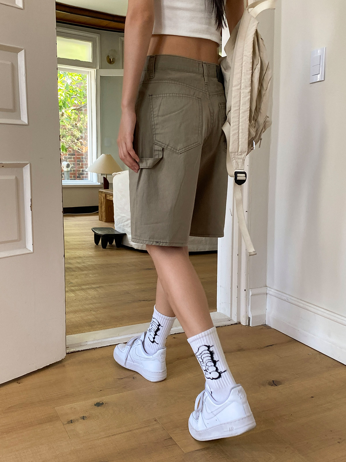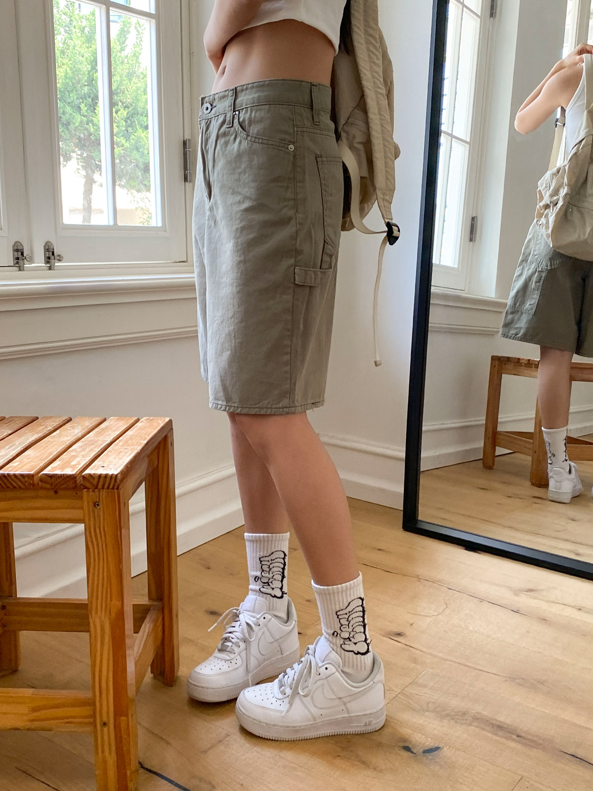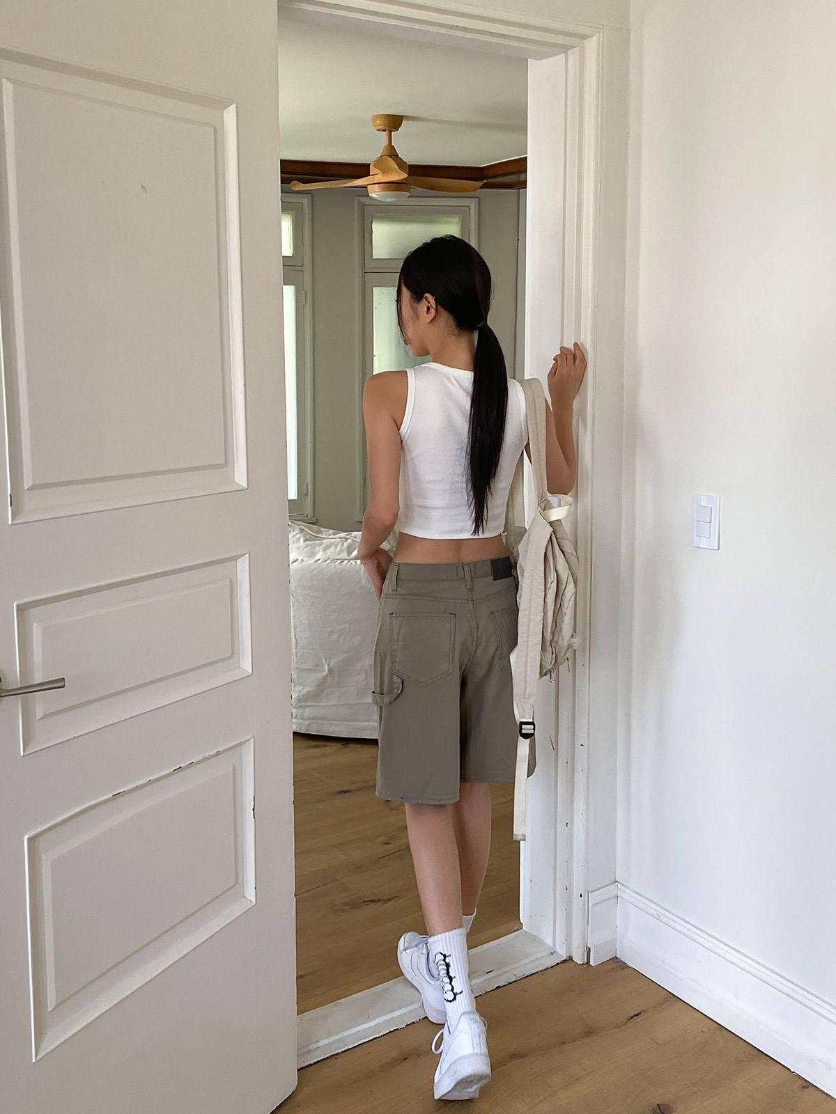 포켓이 있는 디자인으로 실용적이고 이번 여름 가장 핫한 아이템인 빈티지한 무드의 버뮤다 스타일로 소장 가치가 높은 코튼 팬츠