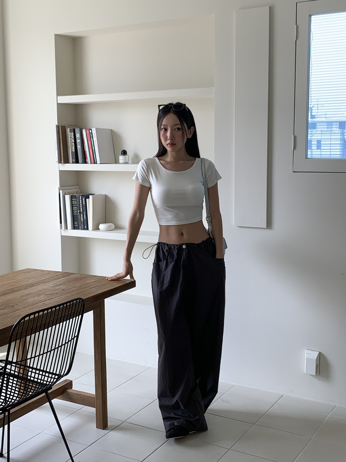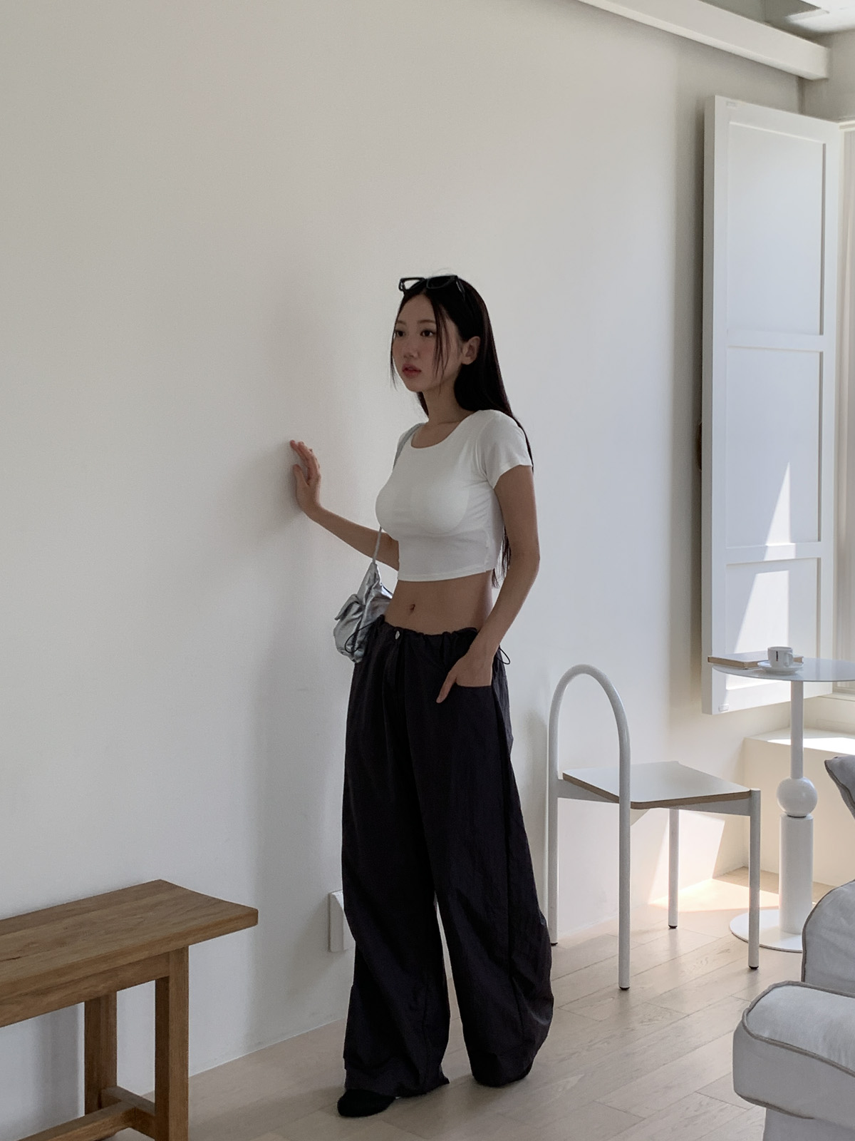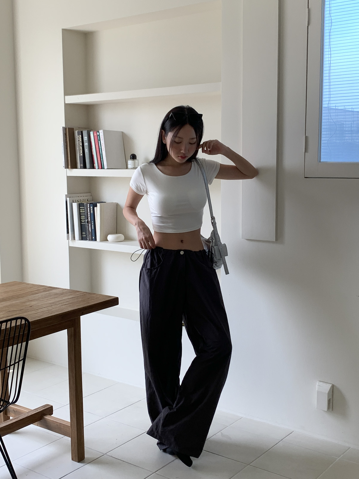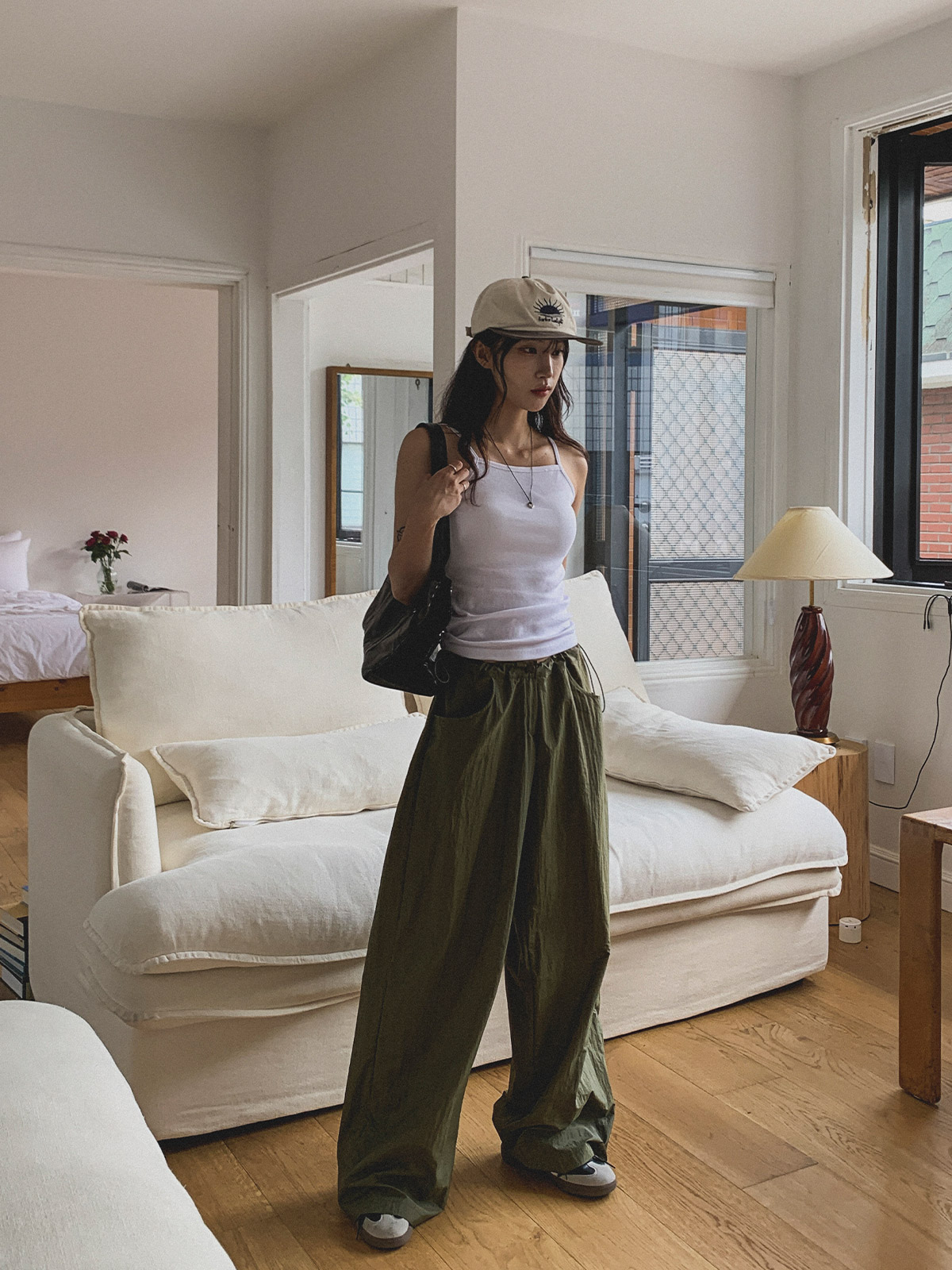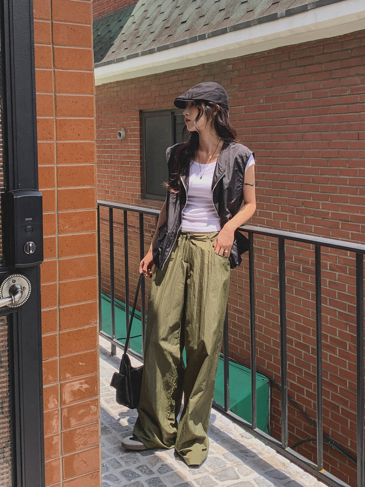 얇고 가벼운 나일론 원단으로 여름에도 답답하지 않게 착용이 가능하며, 체형 부각 걱정없이 데일리로 입기 좋은 팬츠로 추천해요~!