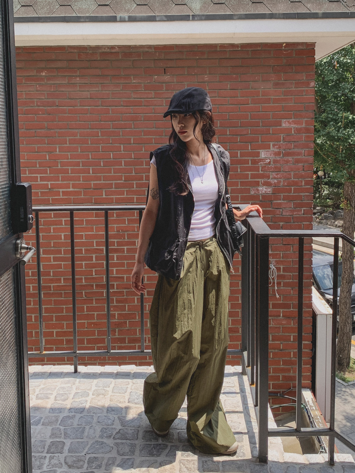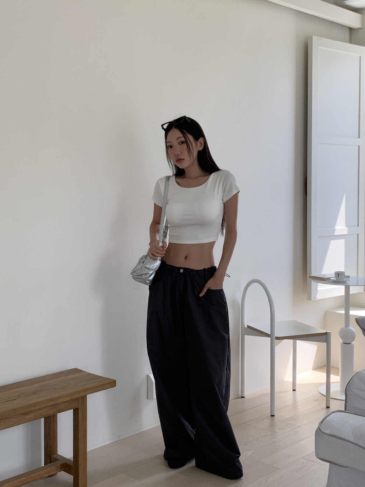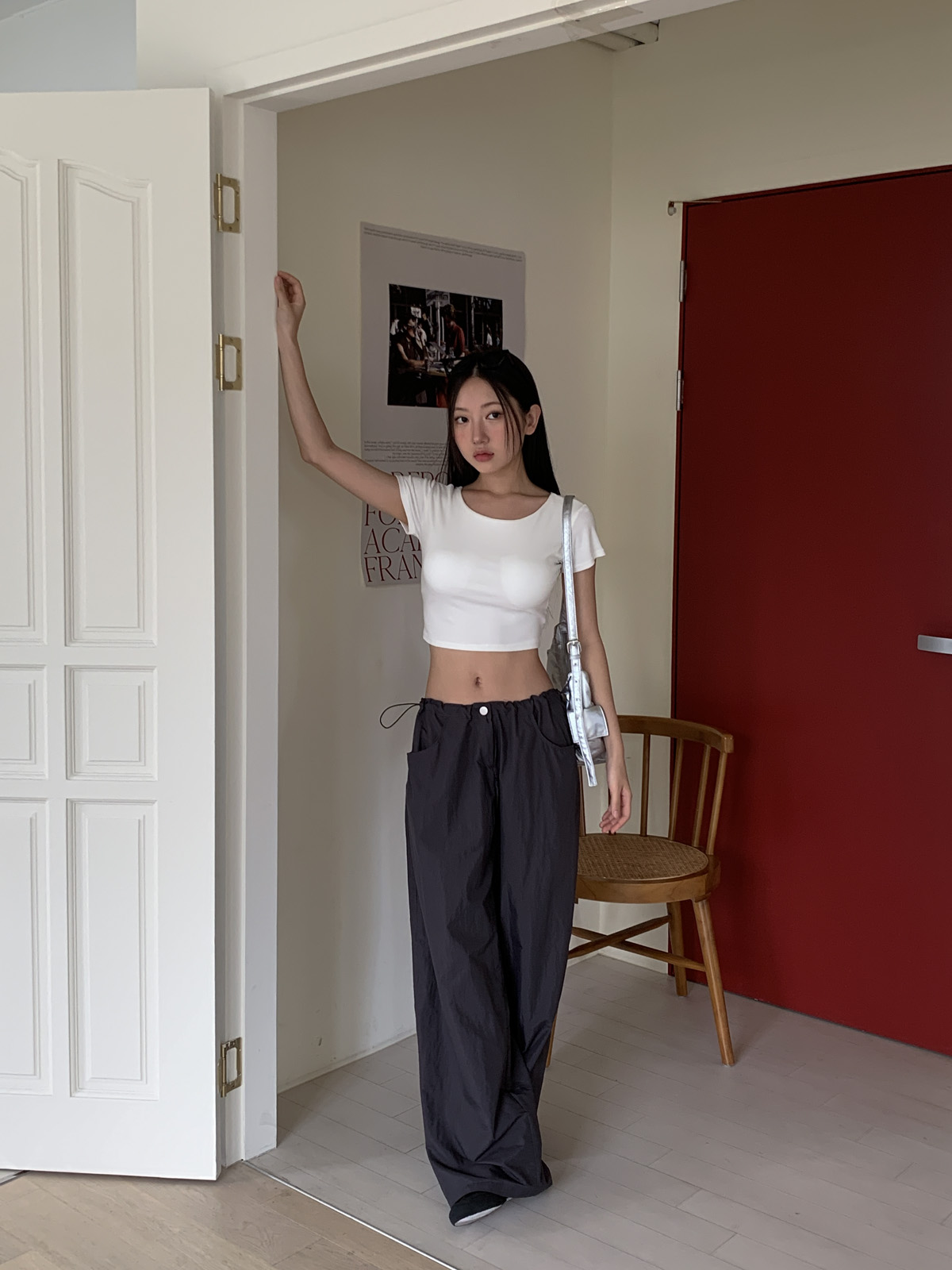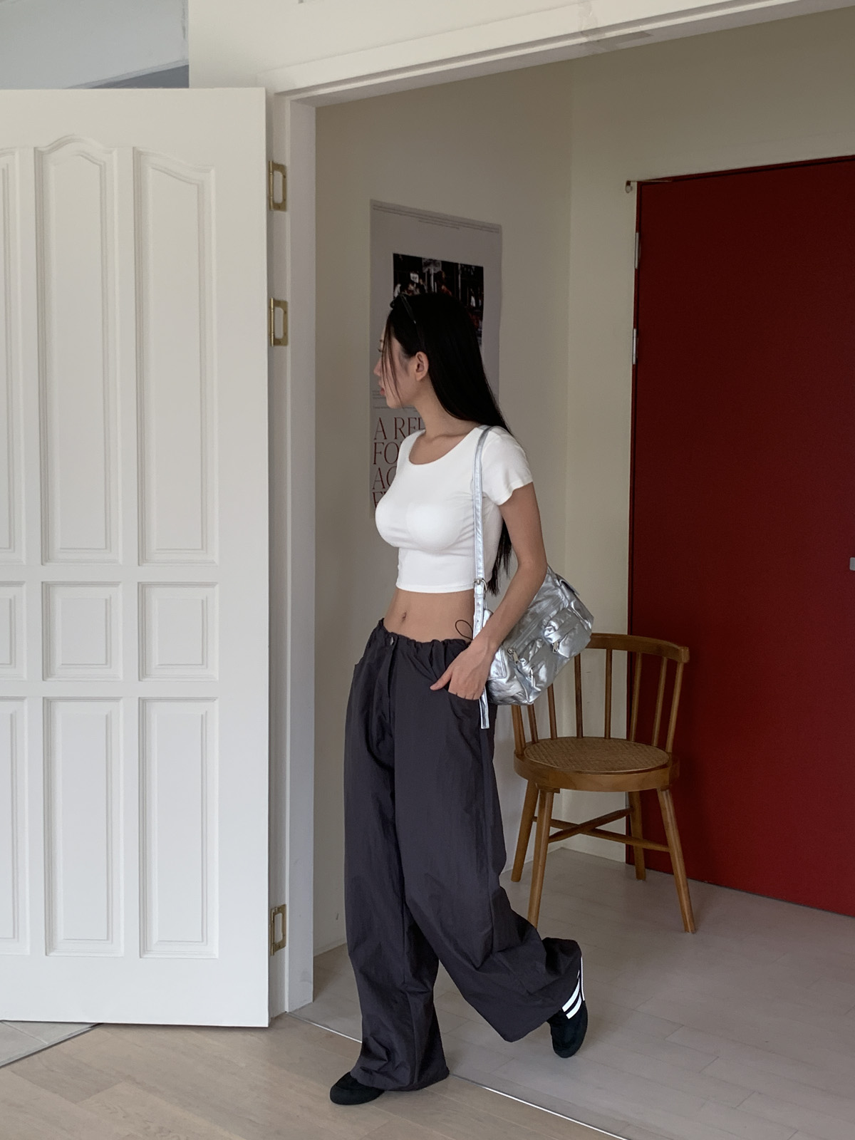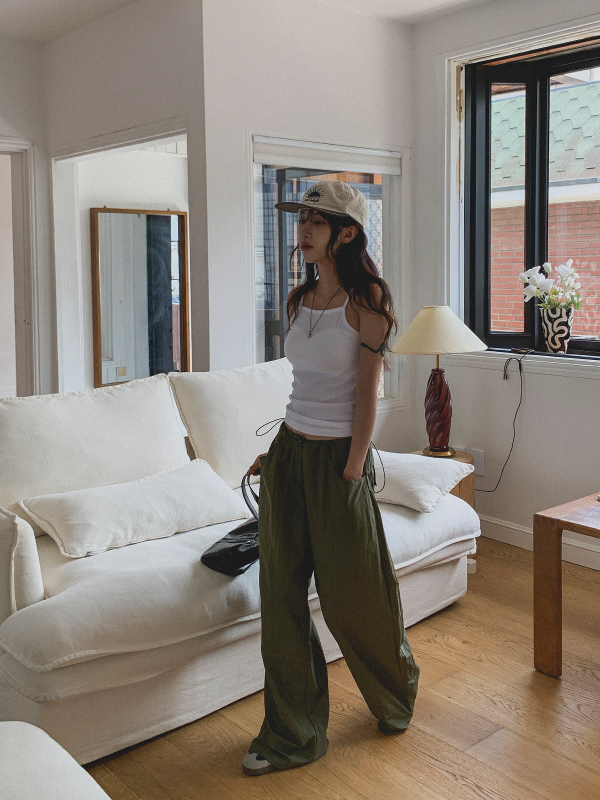얇고 가벼운 나일론 원단으로 여름에도 답답하지 않게 착용이 가능하며, 체형 부각 걱정없이 데일리로 입기 좋은 팬츠로 추천해요~!