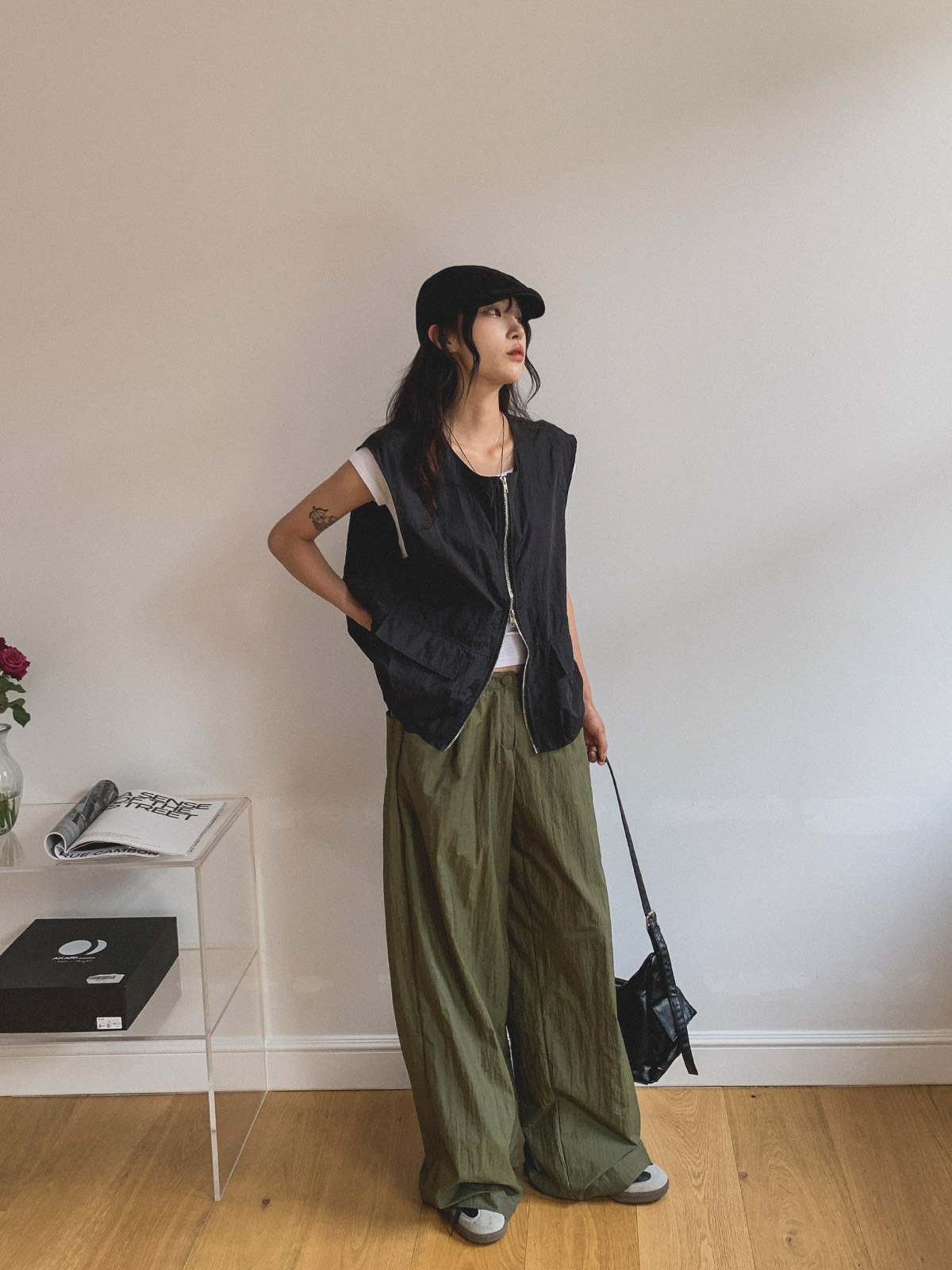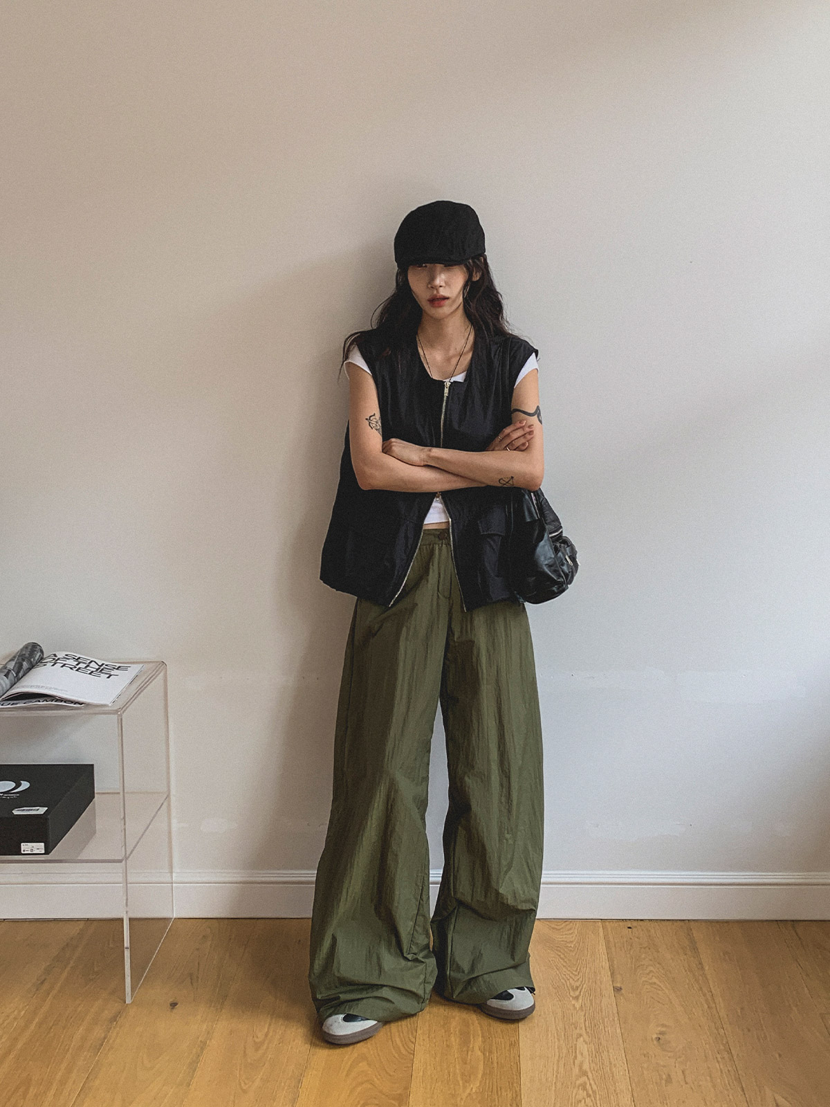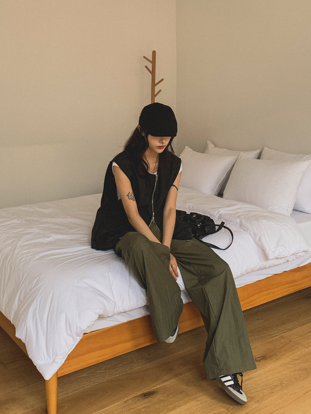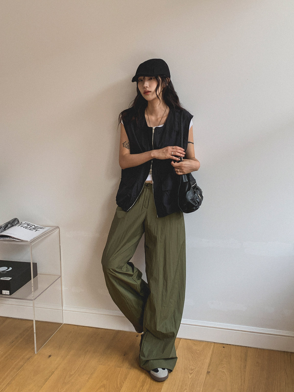 ☆ 모델 착용 사이즈 : FREE/카키 착용/JY