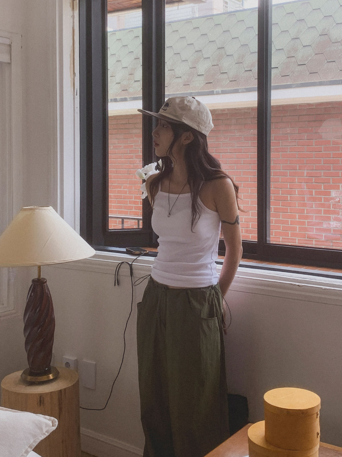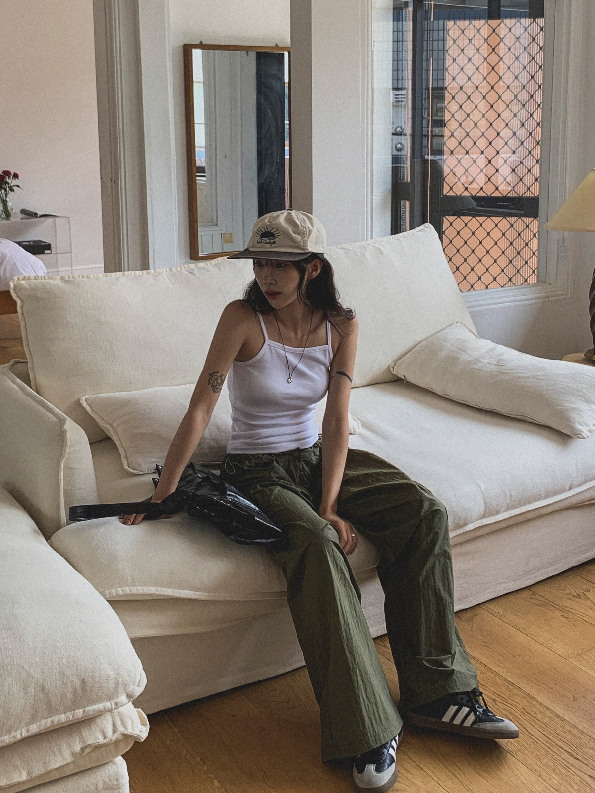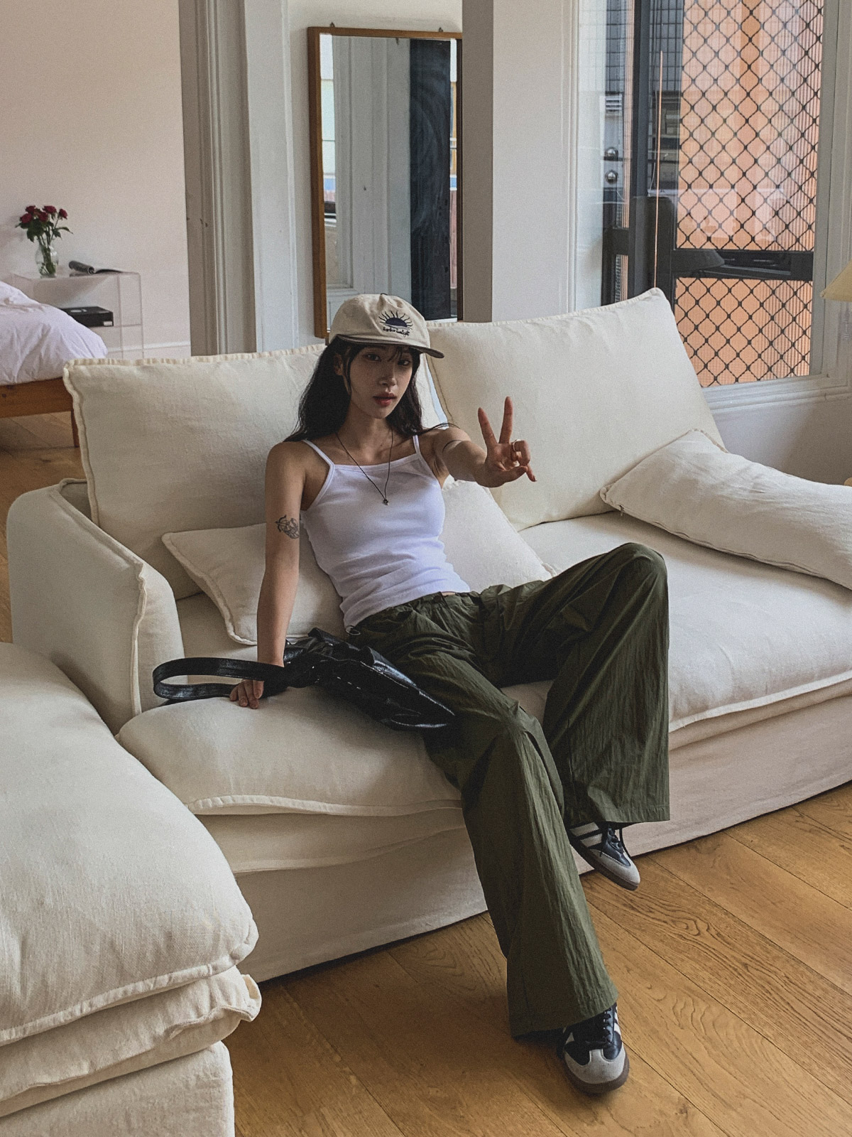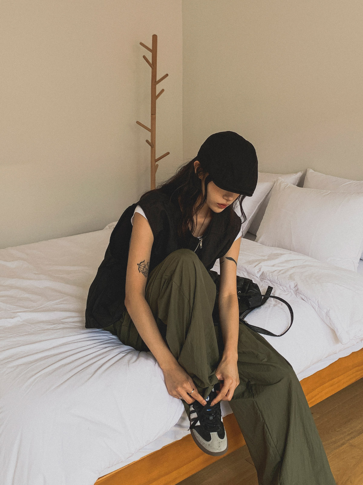 ☆ 모델 착용 사이즈 : FREE/카키 착용/JY