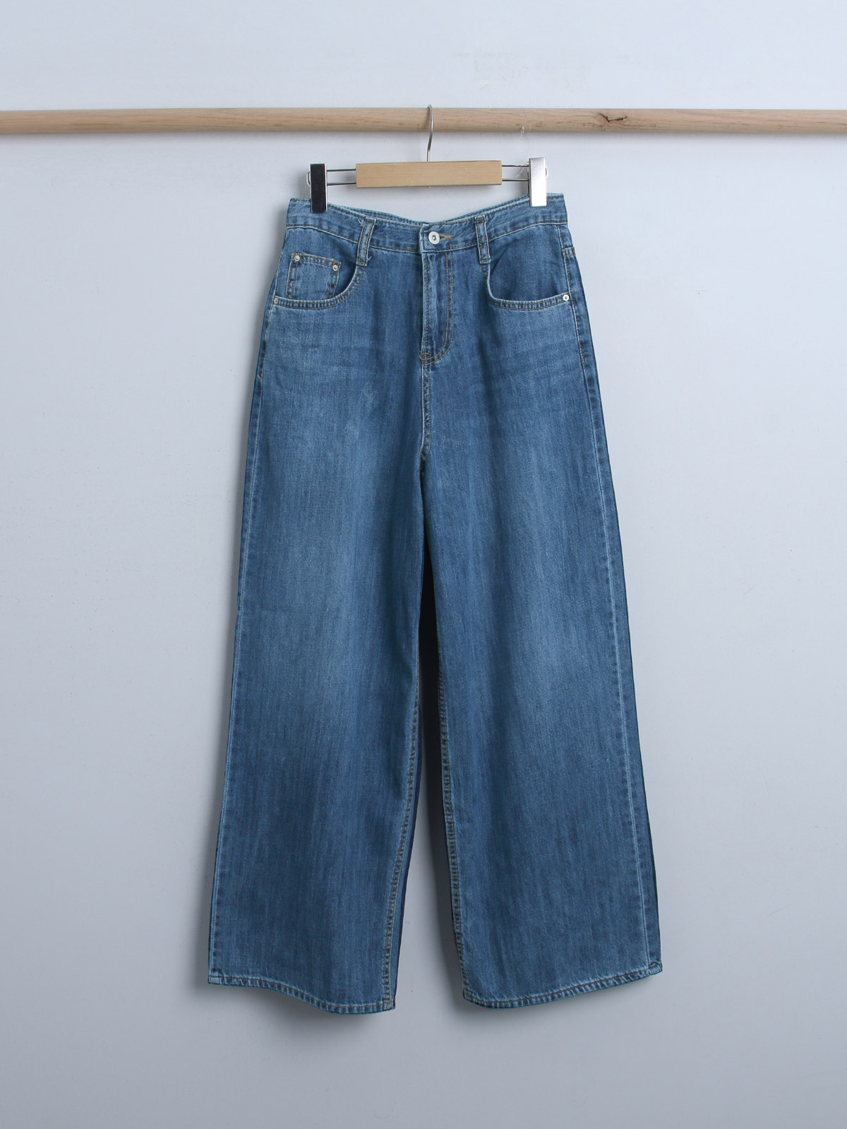 베이직한 디자인에 워싱이 들어가 밋밋하지 않고 편안하게 착용 가능한 일자핏으로 데일리룩에 활용하기 좋은 와이드 데님 팬츠