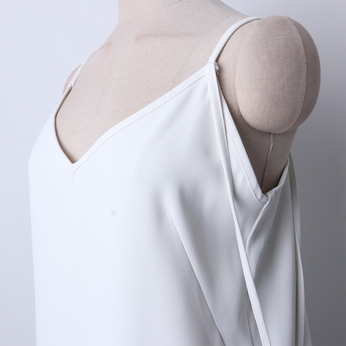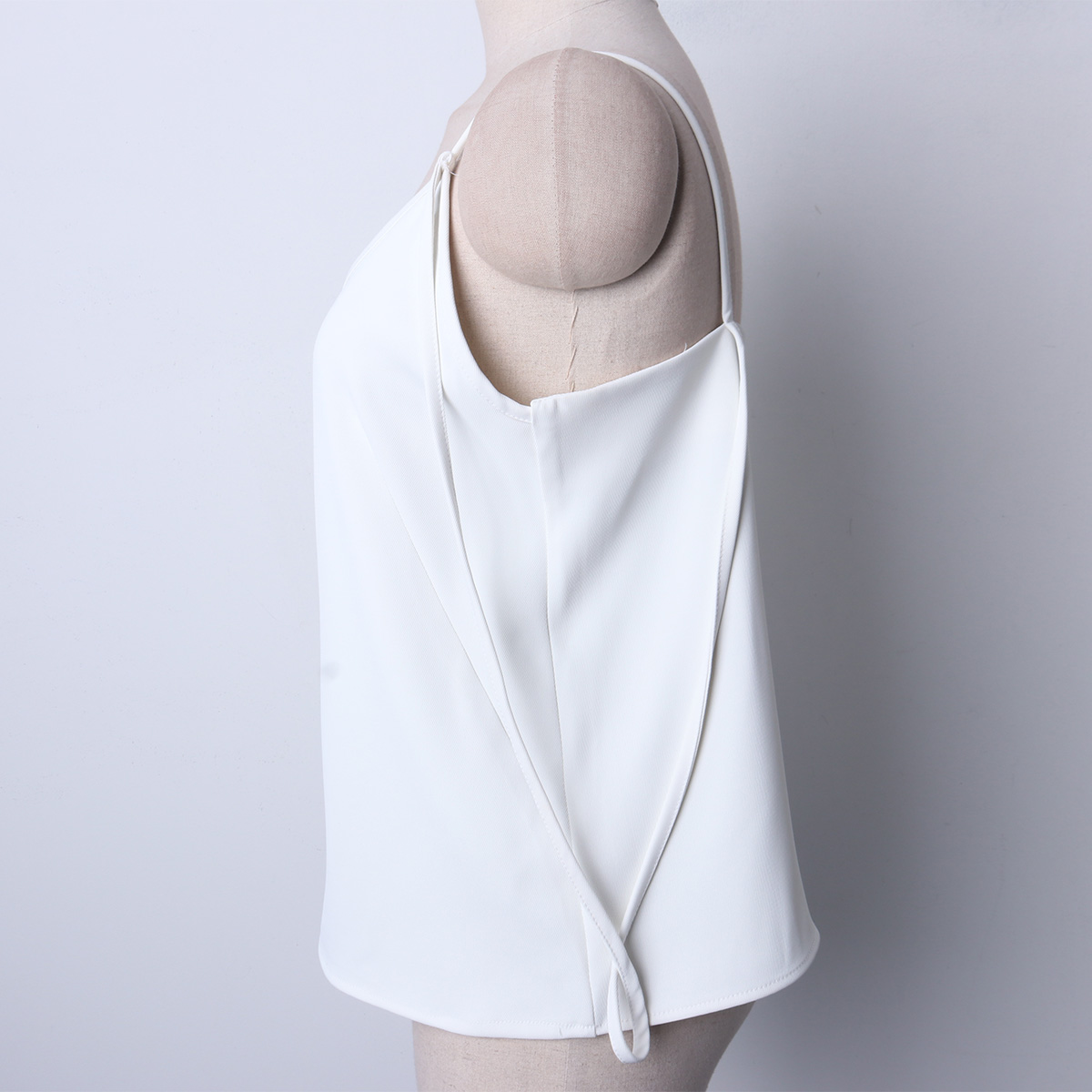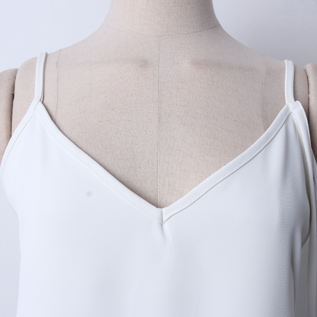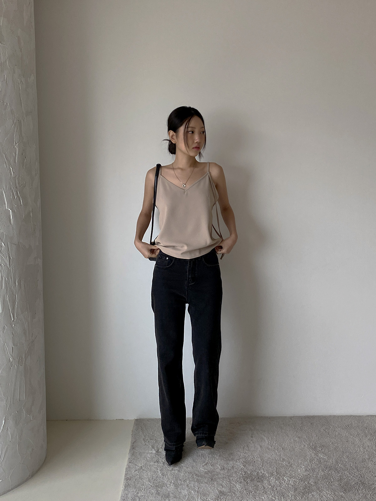 부드럽고 찰랑거리는 소재감으로 착용감이 우수하고 스트랩 포인트가 들어가있어 자유롭게 활용 가능하며 유니크한 끈나시
