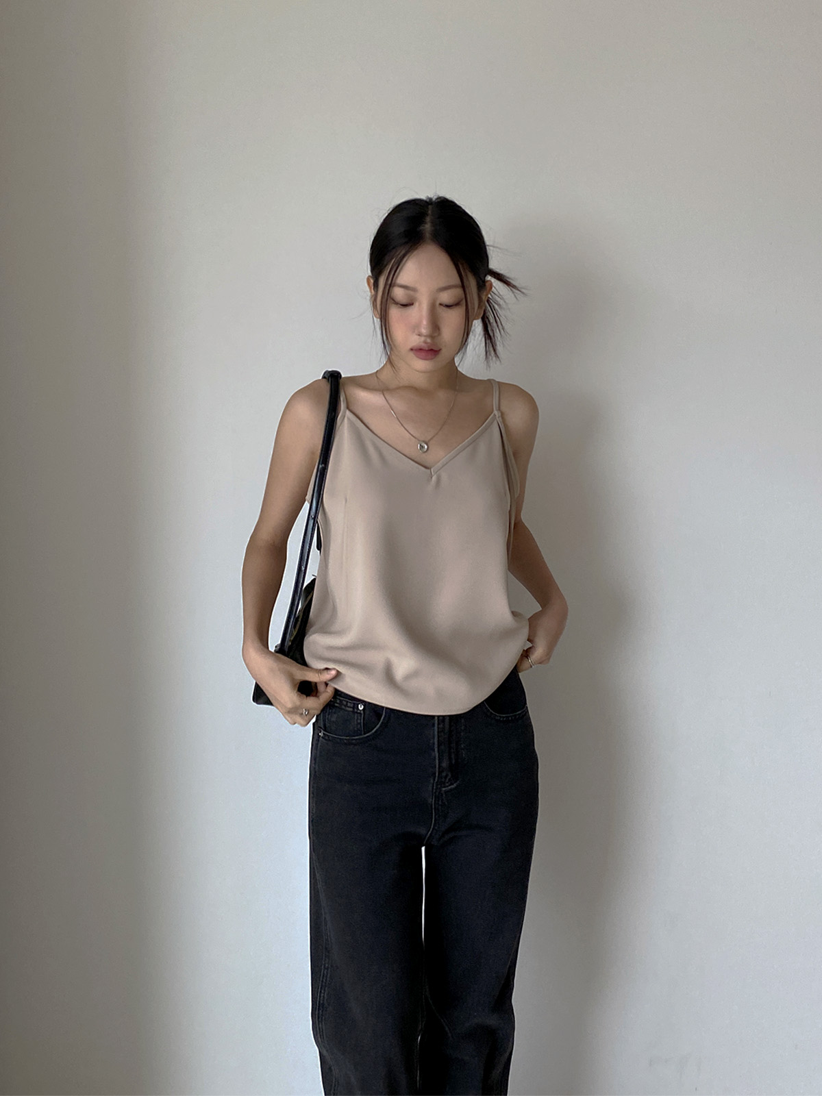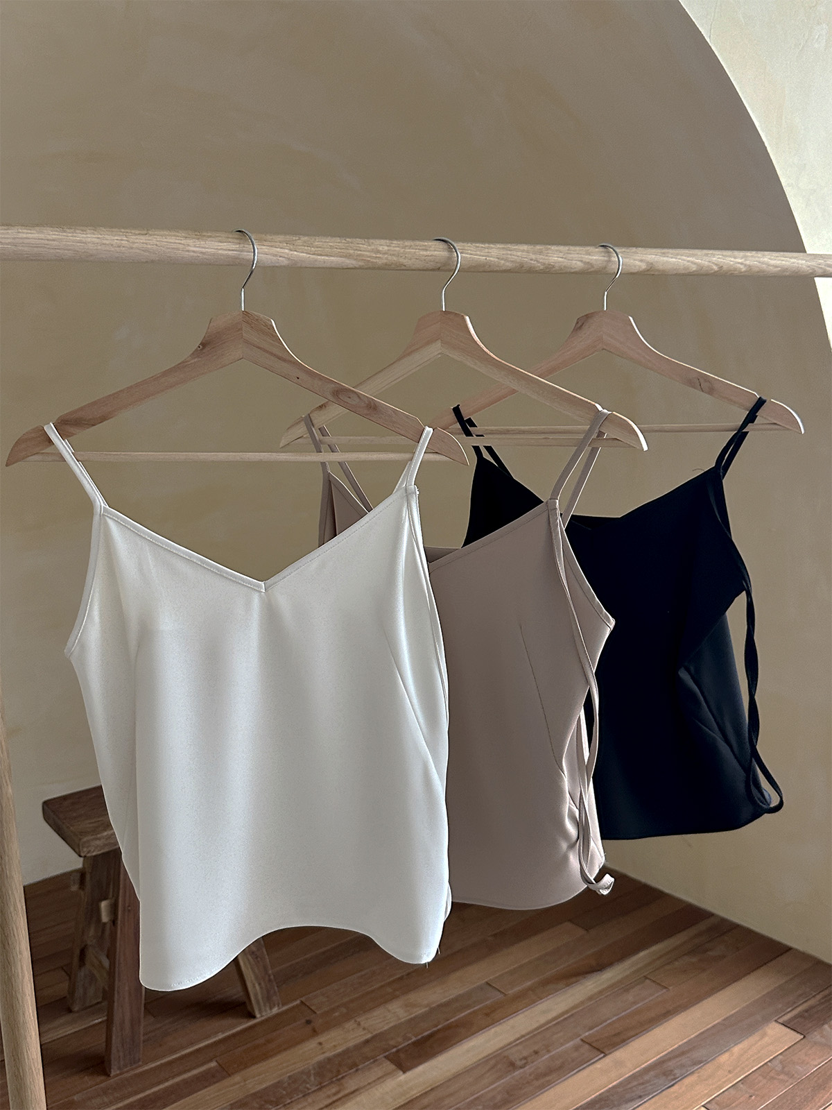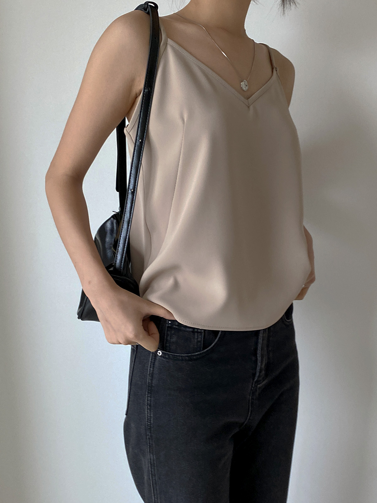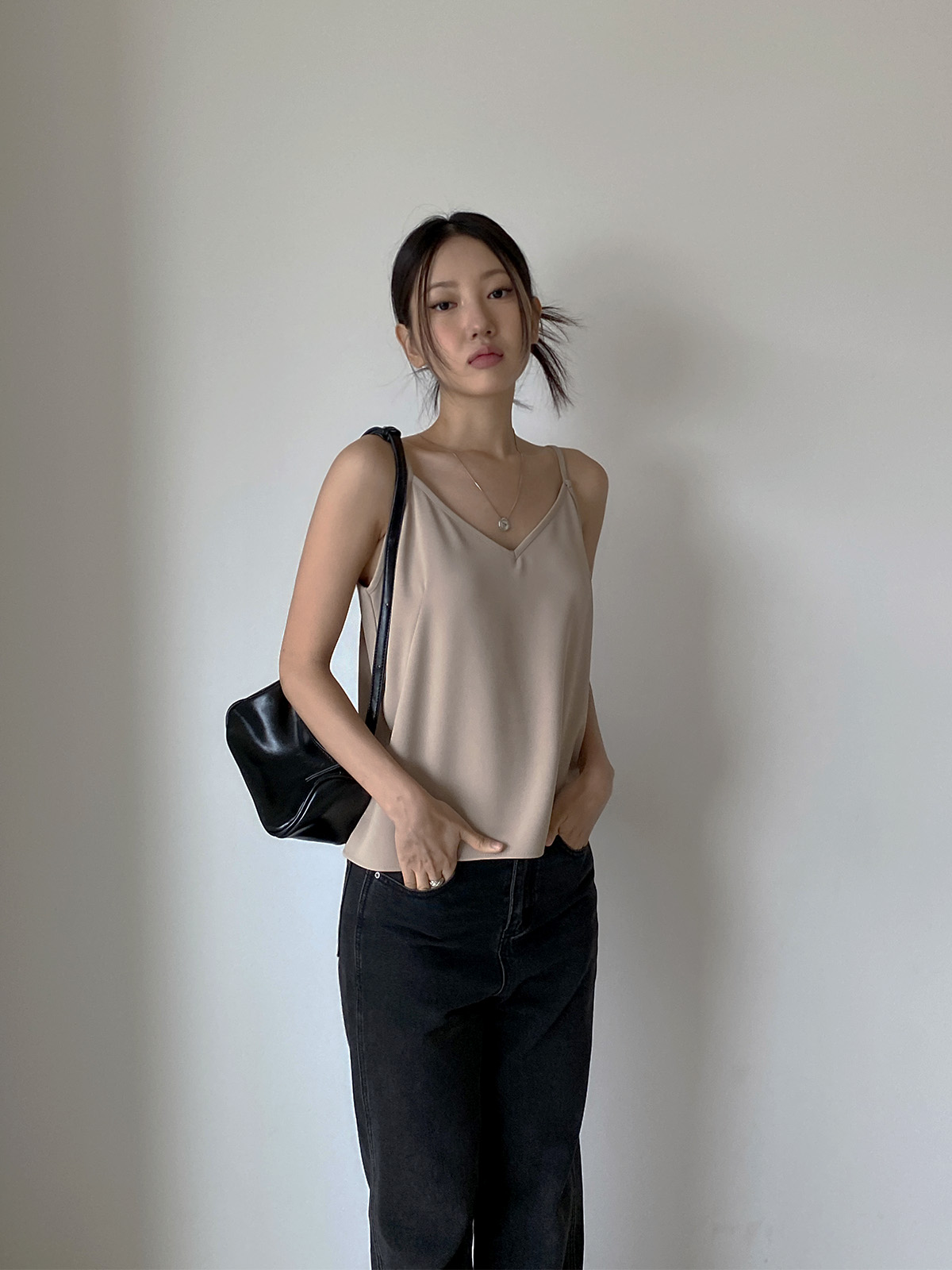 부드럽고 찰랑거리는 소재감으로 착용감이 우수하고 스트랩 포인트가 들어가있어