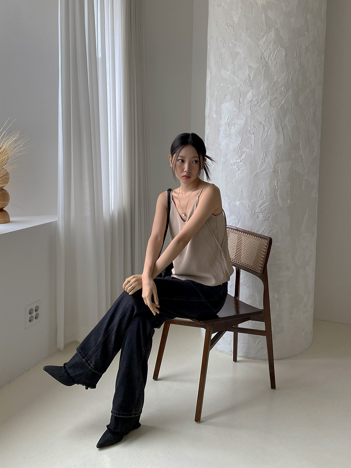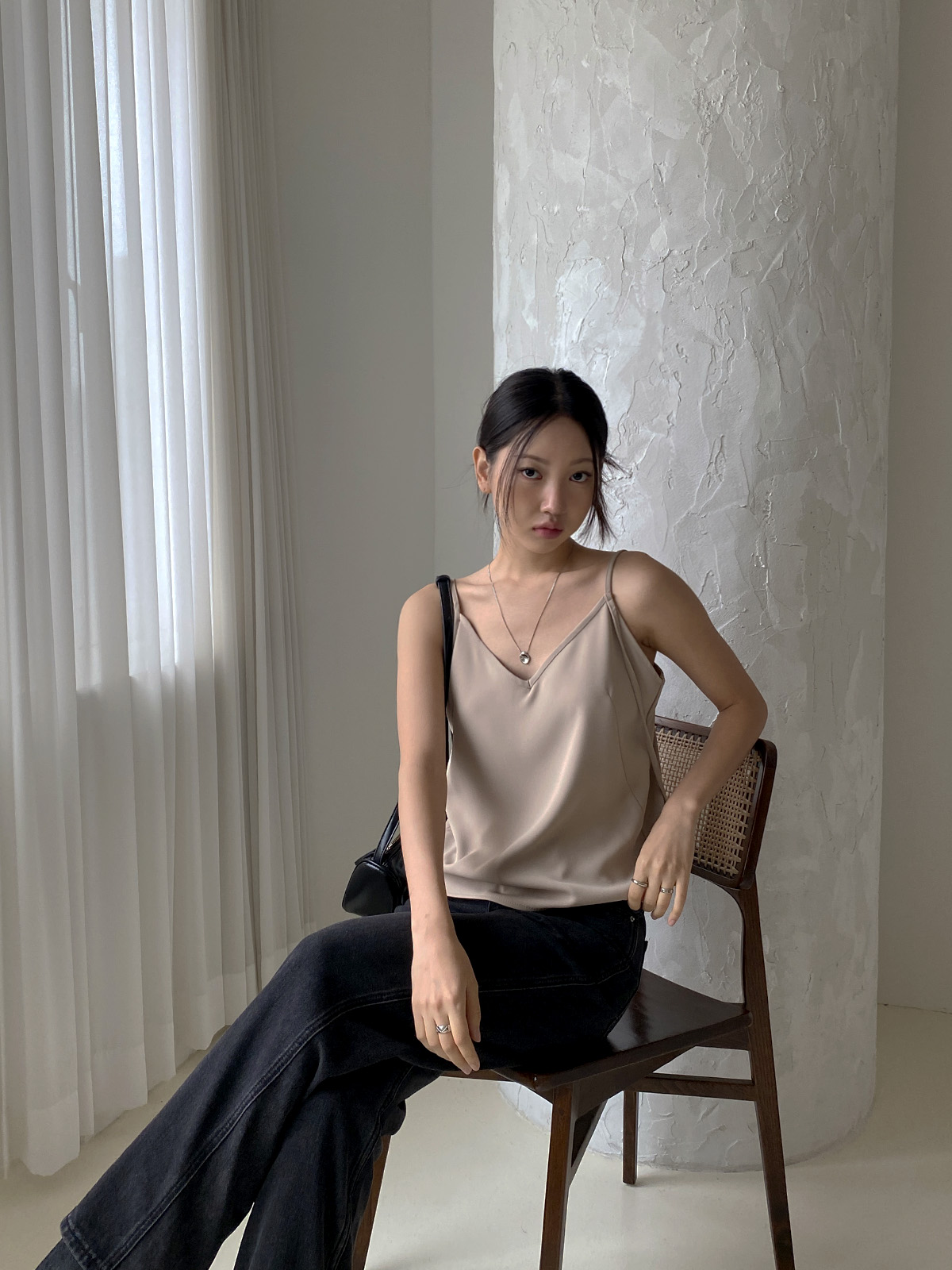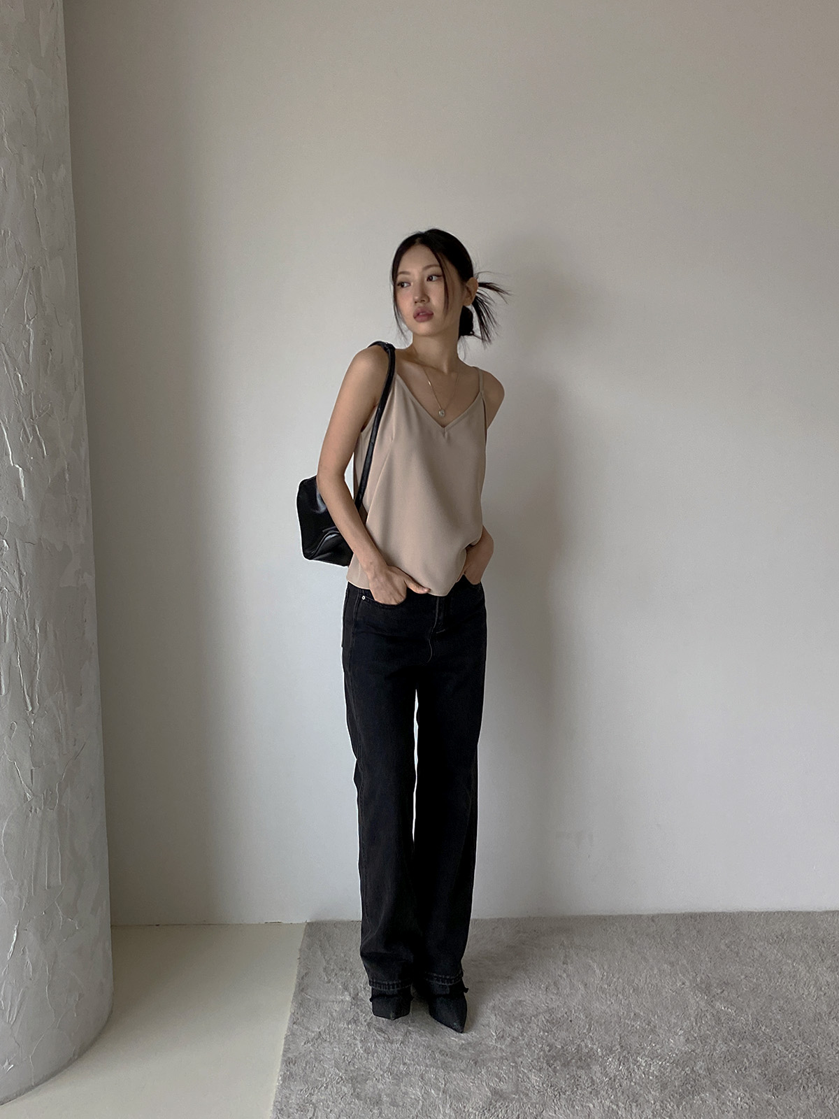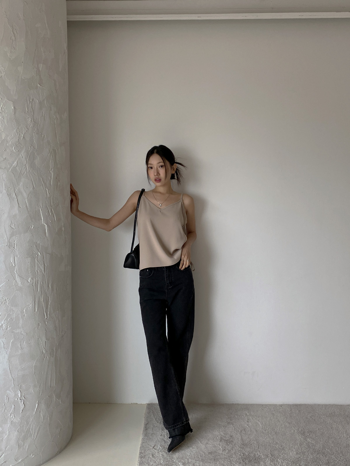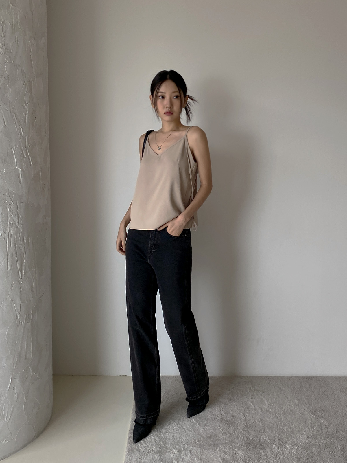 부드럽고 찰랑거리는 소재감으로 착용감이 우수하고 스트랩 포인트가 들어가있어