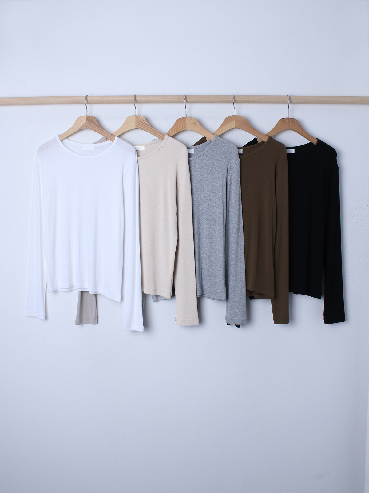 스탠다드한 디자인으로 깔끔하게 떨어지는 실루엣이 매력적인 골지 긴팔티