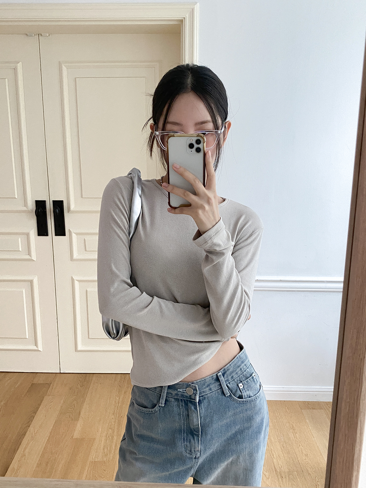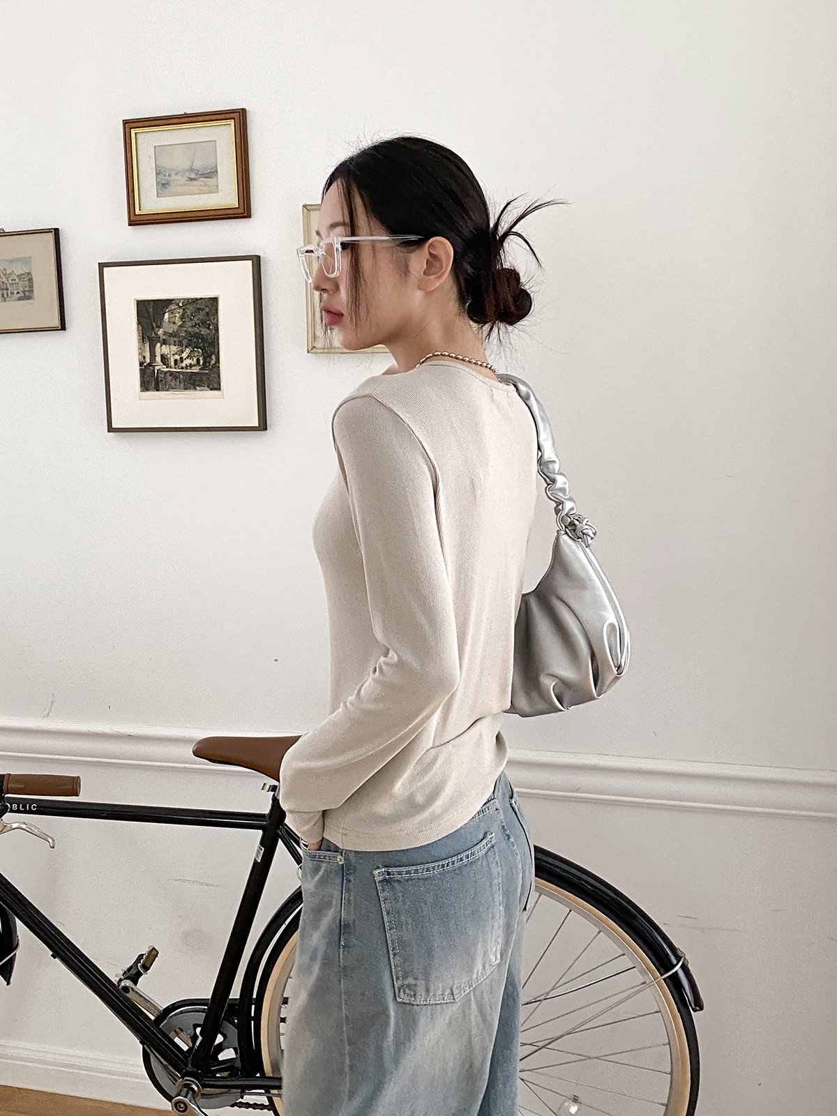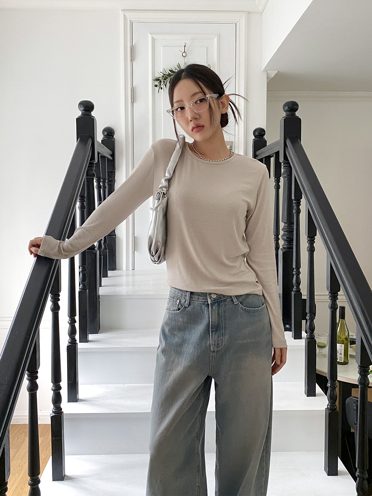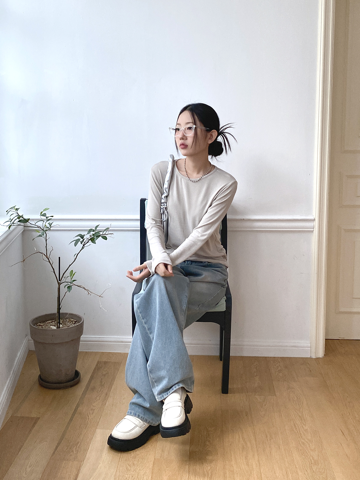 스탠다드한 디자인으로 깔끔하게 떨어지는 실루엣이 매력적인 골지 긴팔티에요!