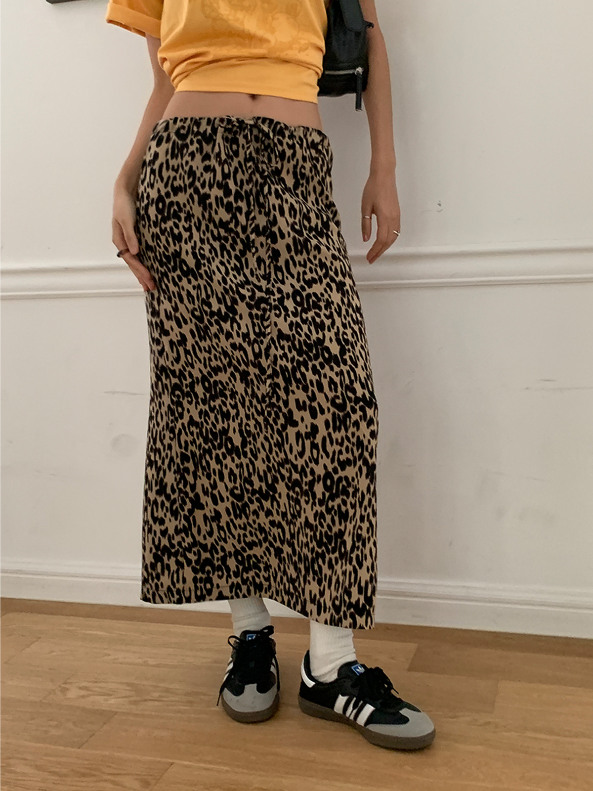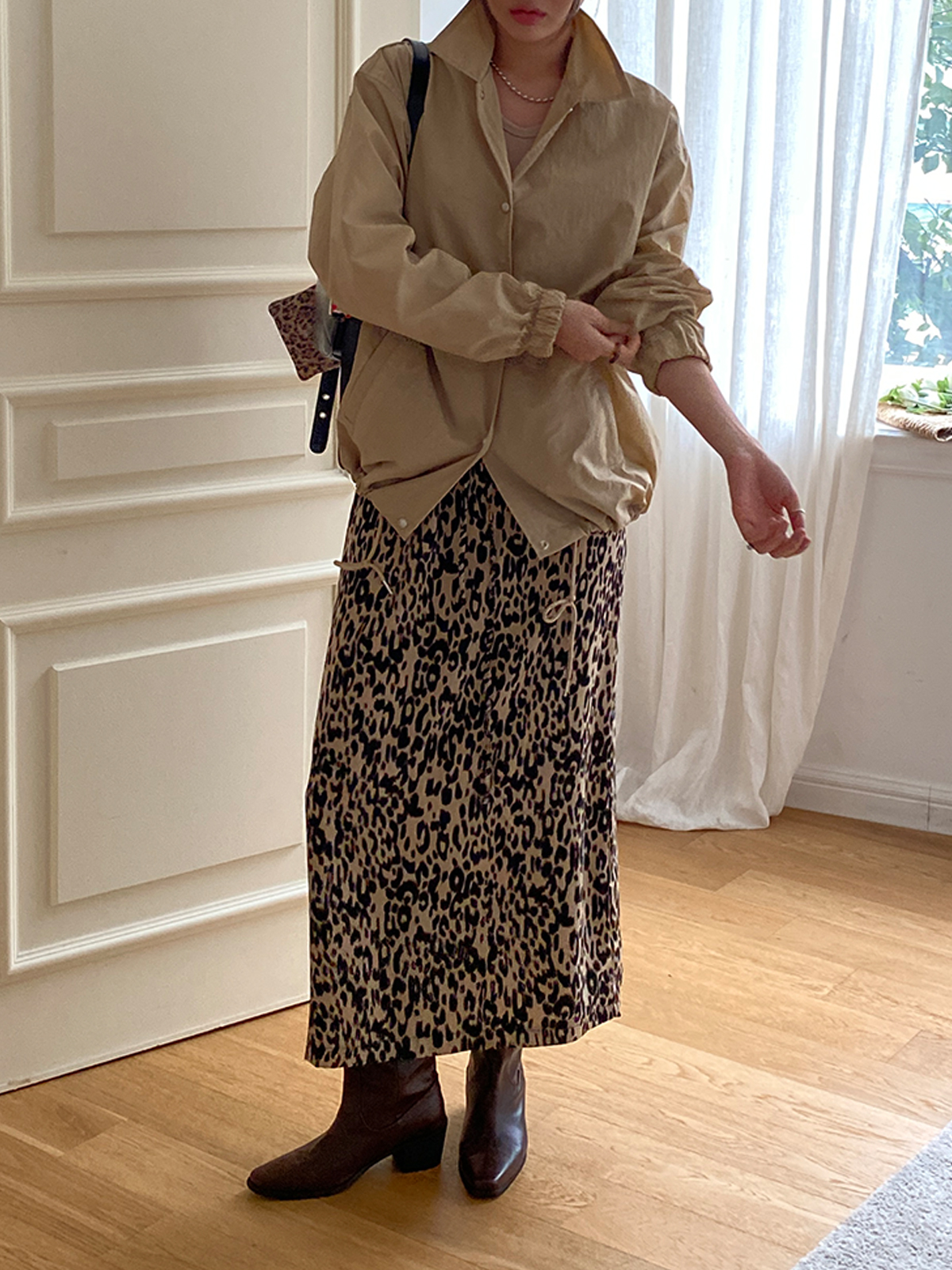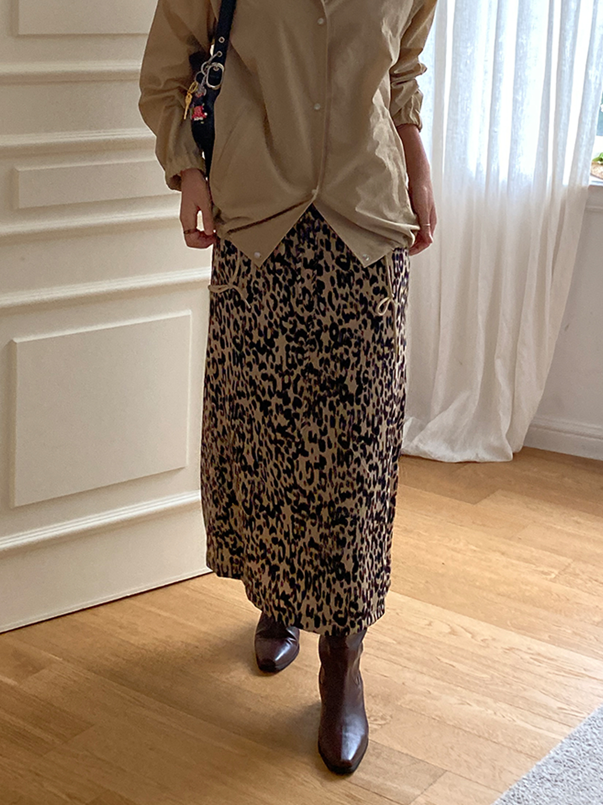 분위기 있는 컬러릐 레오파드 패턴이 매력적인 쉬폰 롱스커트