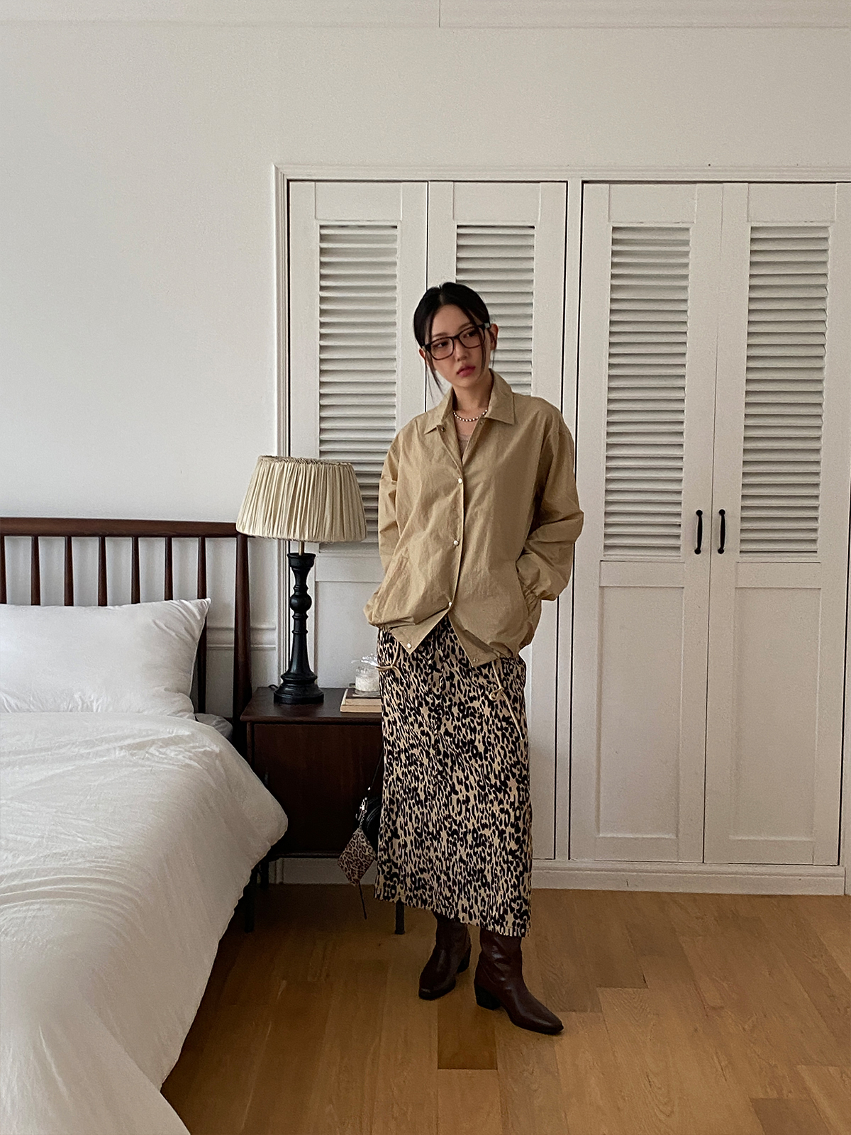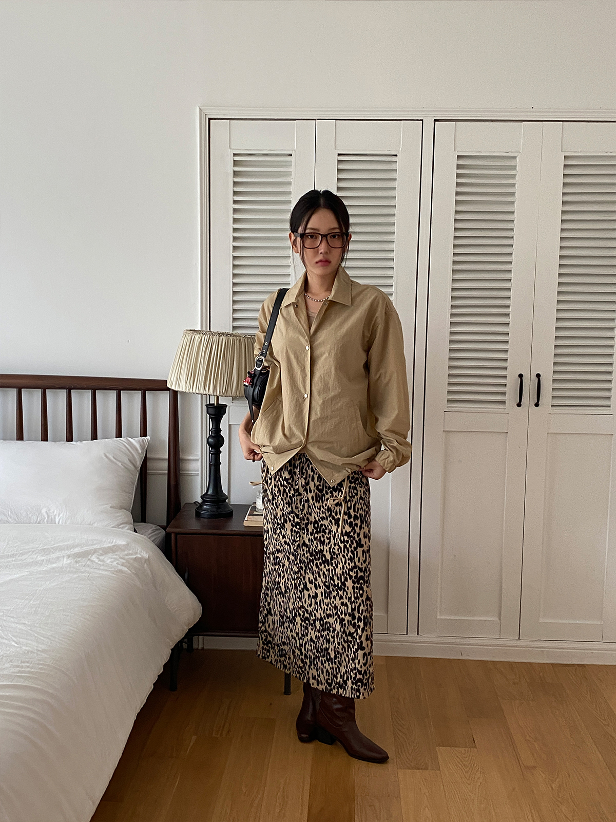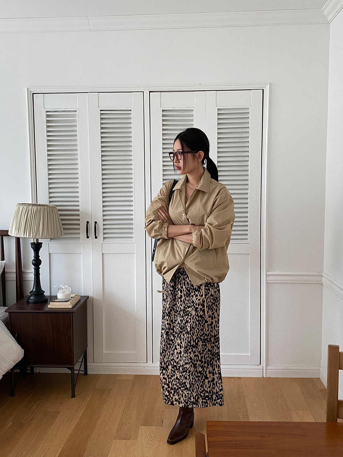 분위기 있는 컬러릐 레오파드 패턴이 매력적인 쉬폰 롱스커트
