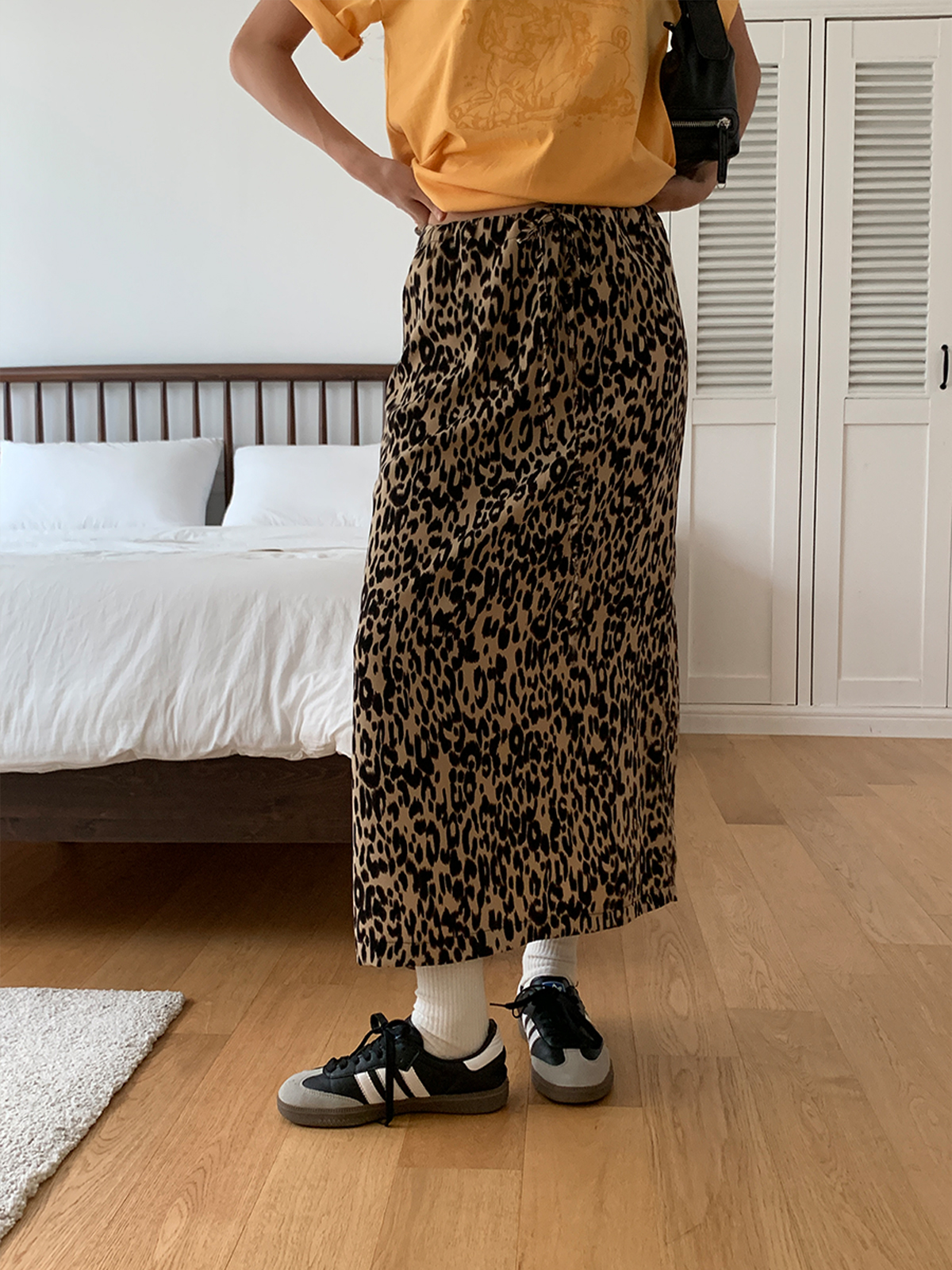 분위기 있는 컬러릐 레오파드 패턴이 매력적인 쉬폰 롱스커트에요!